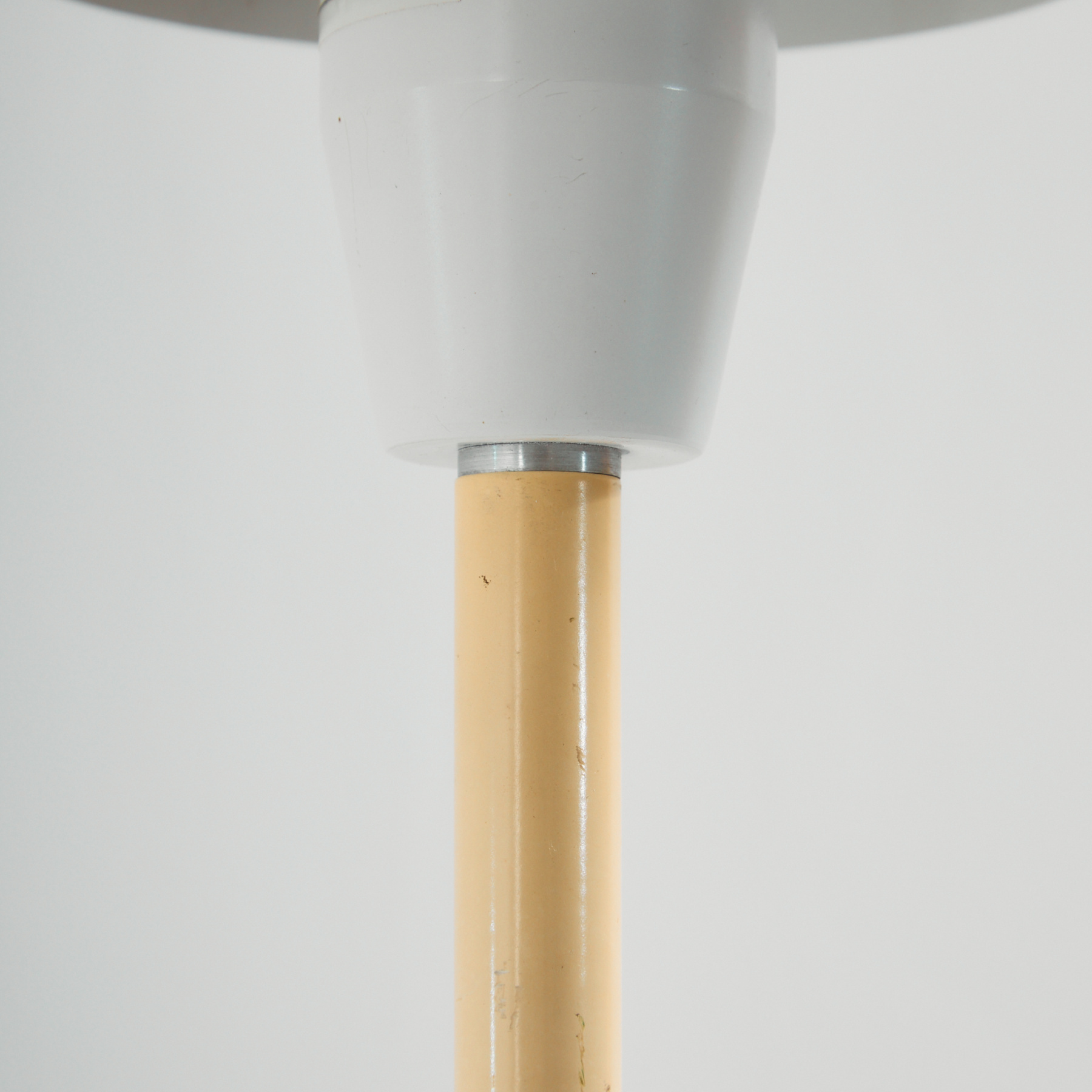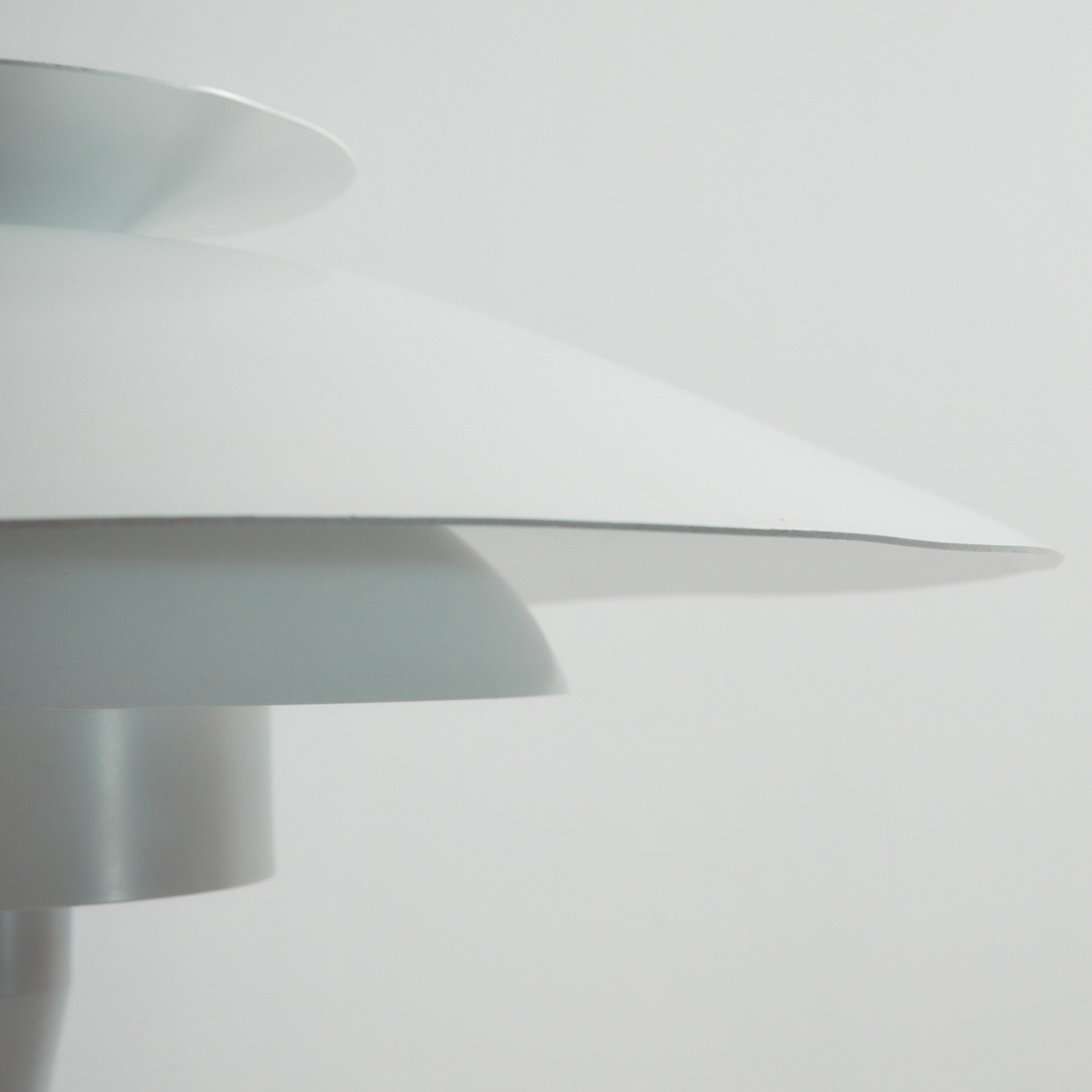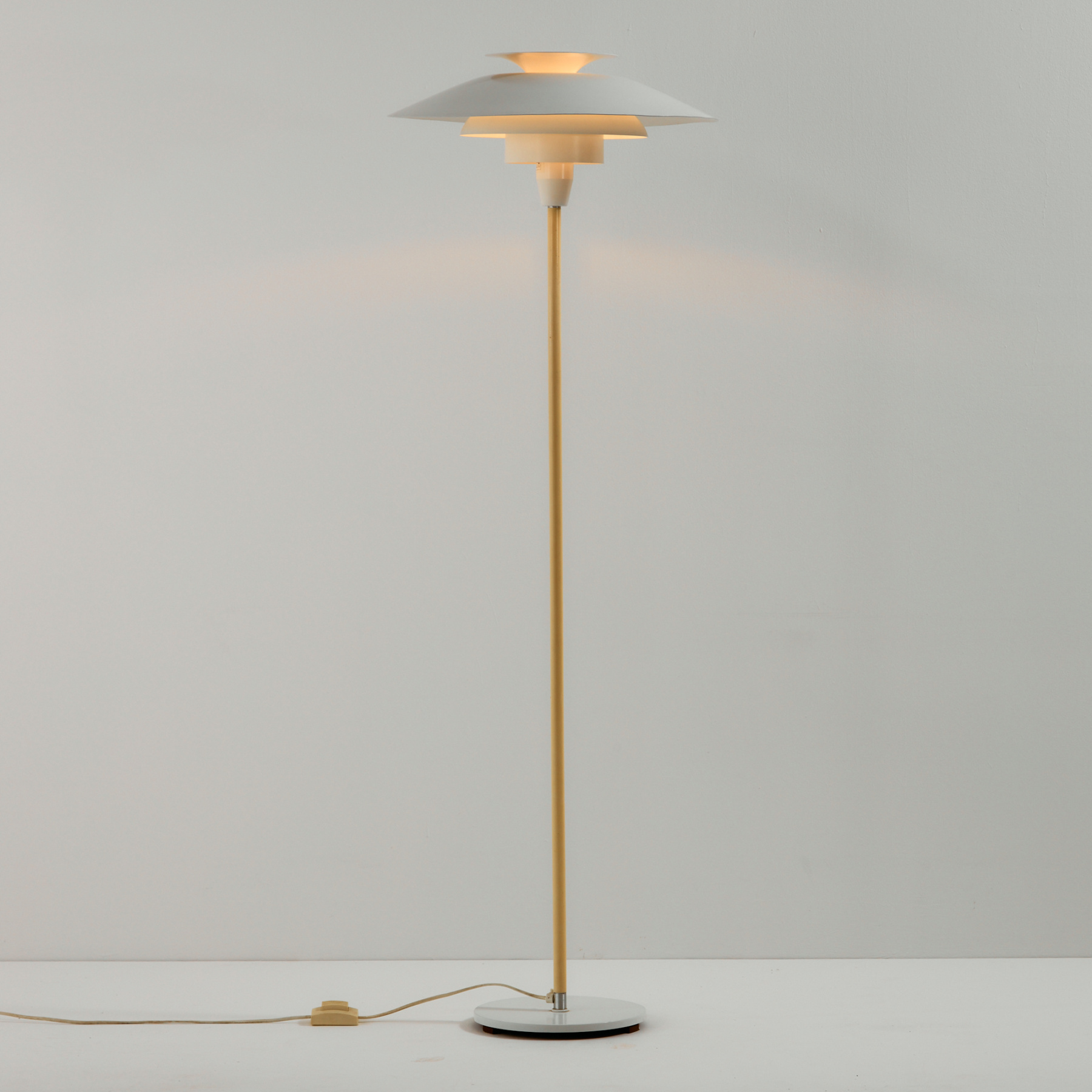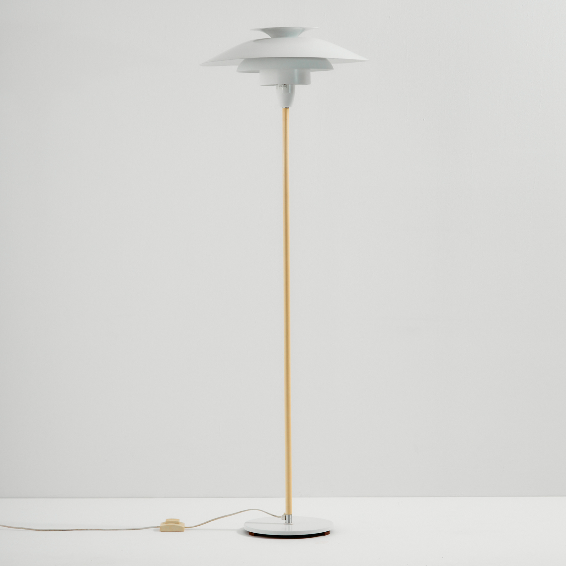 Danish ‘Typ: 1044-G’ aluminium floor lamp from the 1980s produced by Frandsen. The surface of the lamp has scratches, stains and wear in places and the lamellas are dented.
