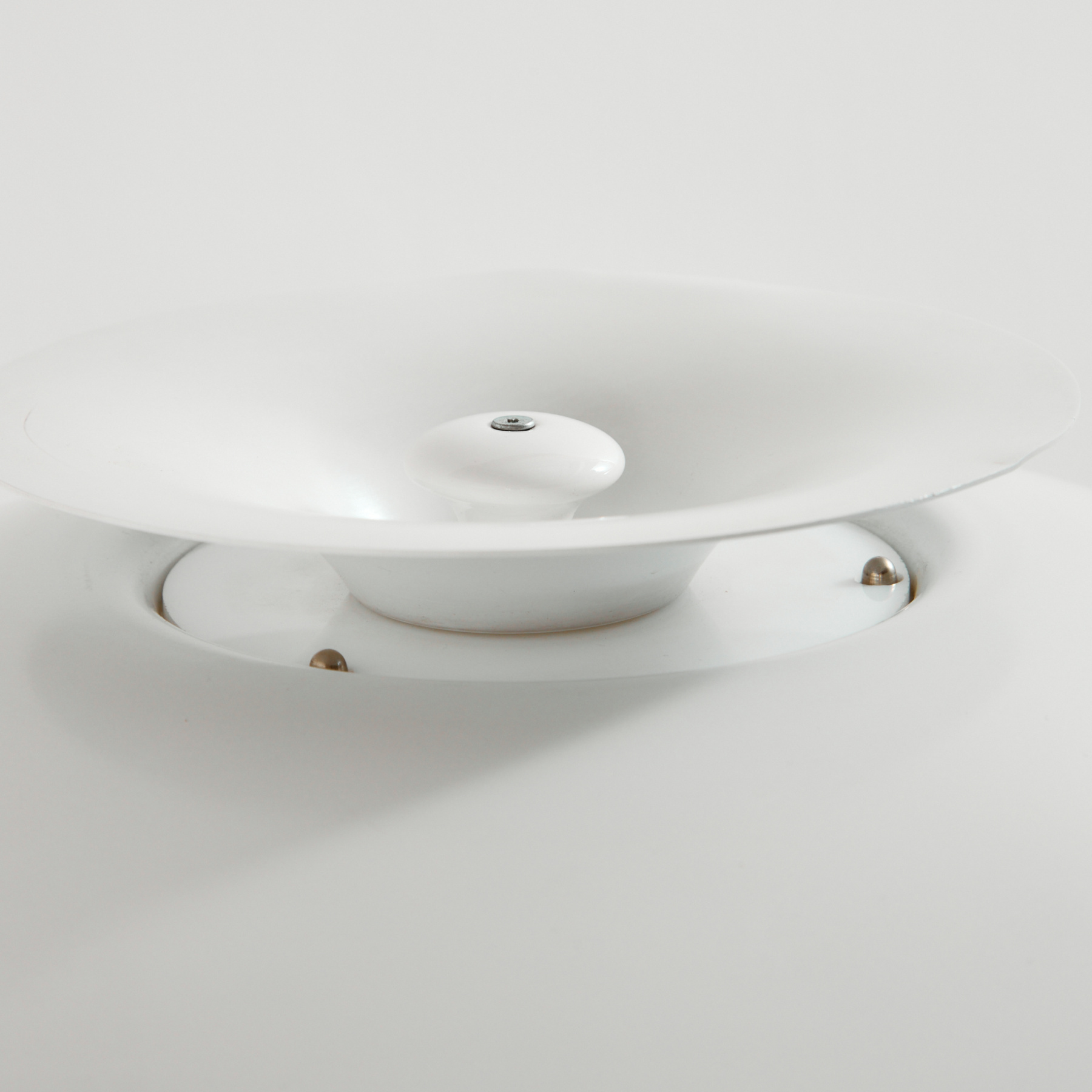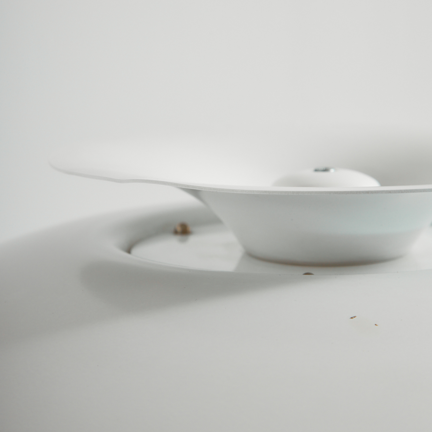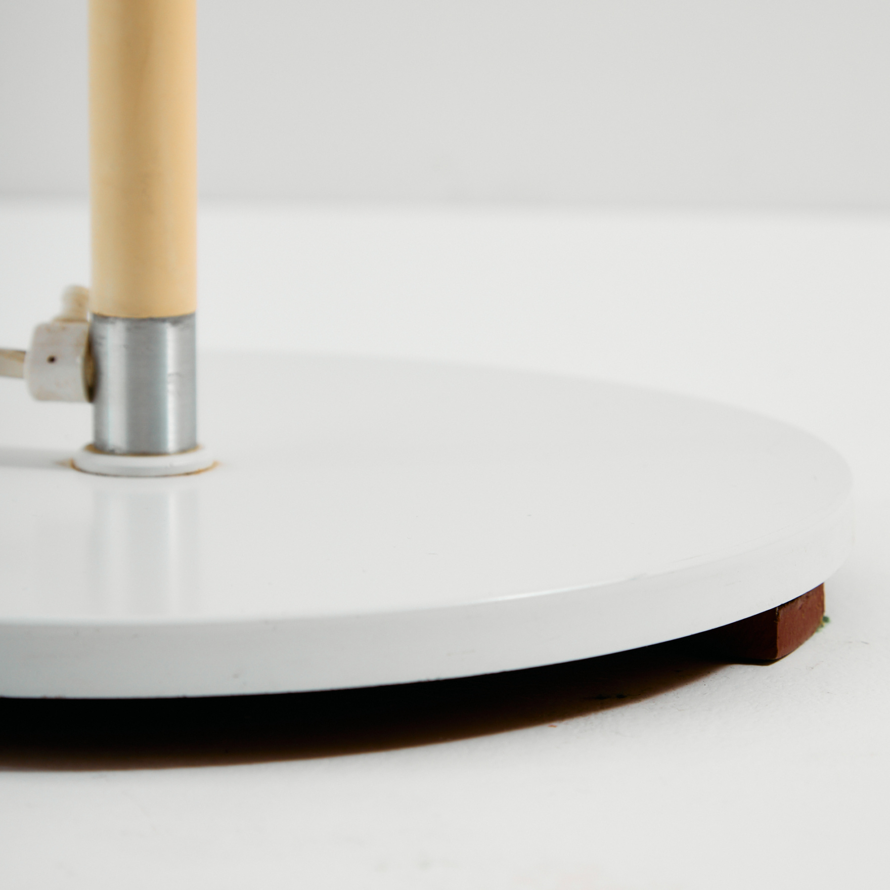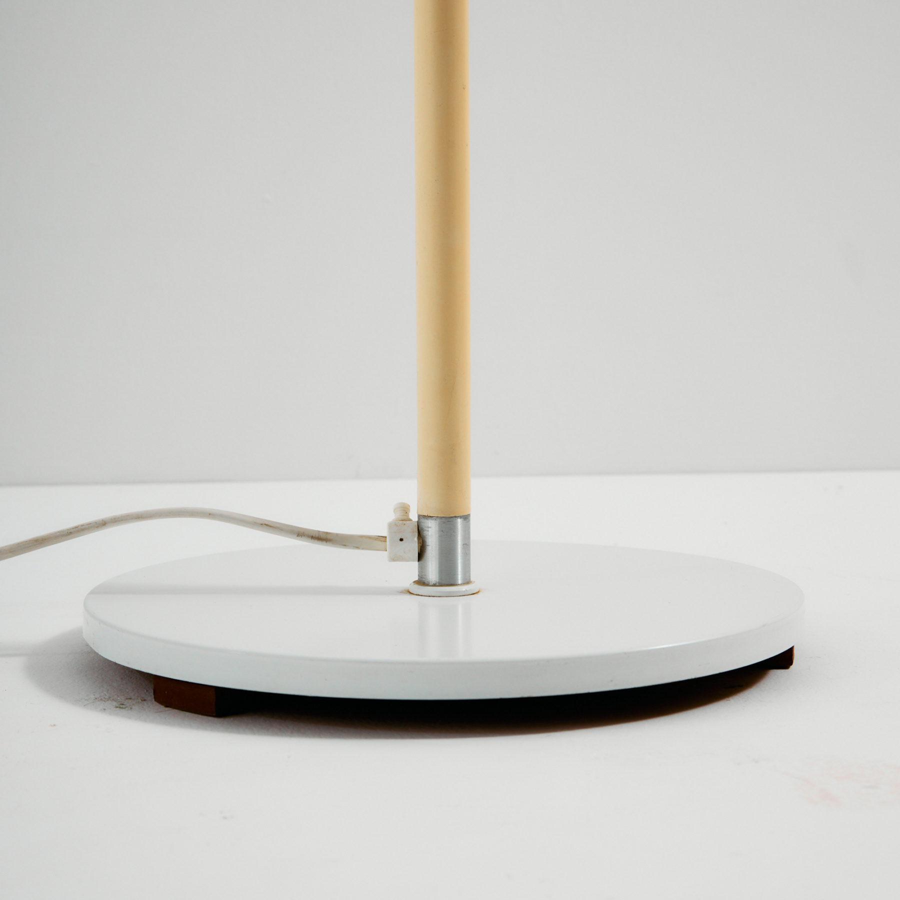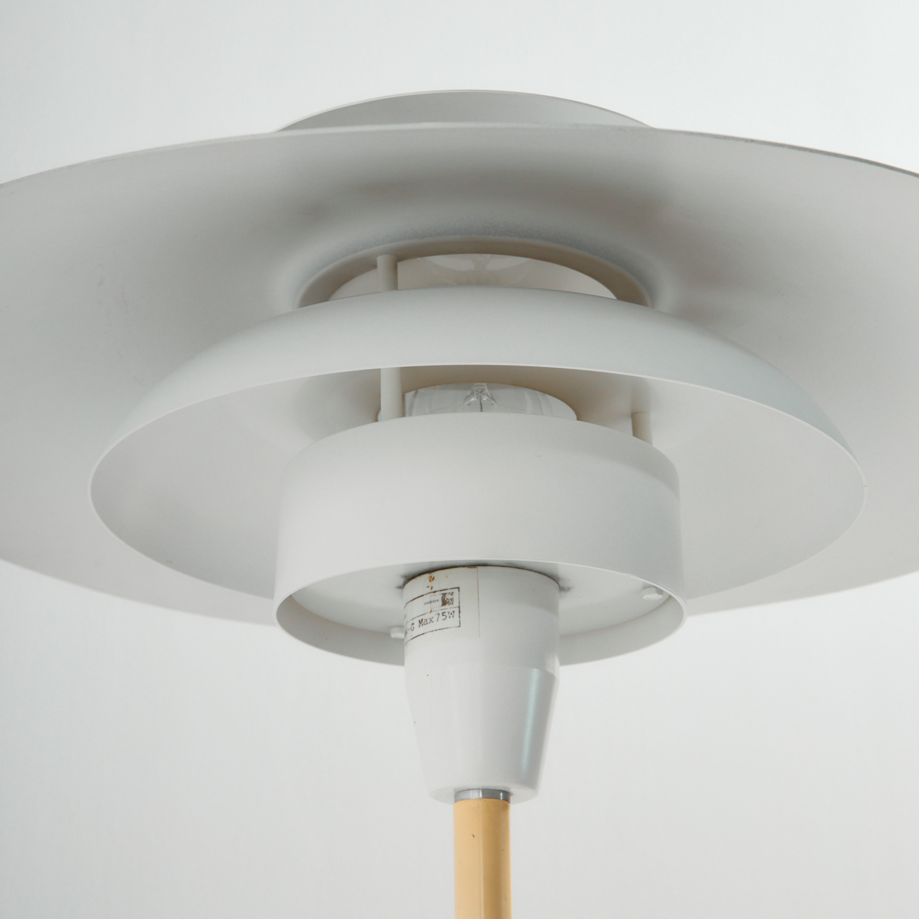 Danish ‘Typ: 1044-G’ aluminium floor lamp from the 1980s produced by Frandsen. The surface of the lamp has scratches, stains and wear in places and the lamellas are dented.
