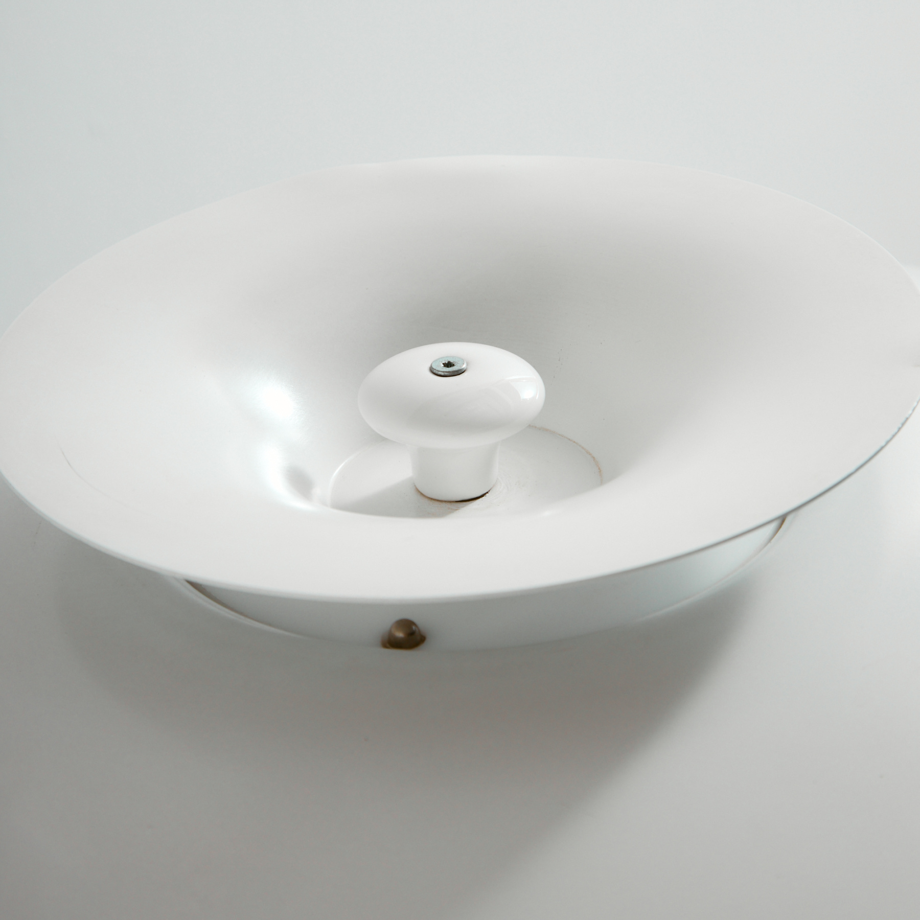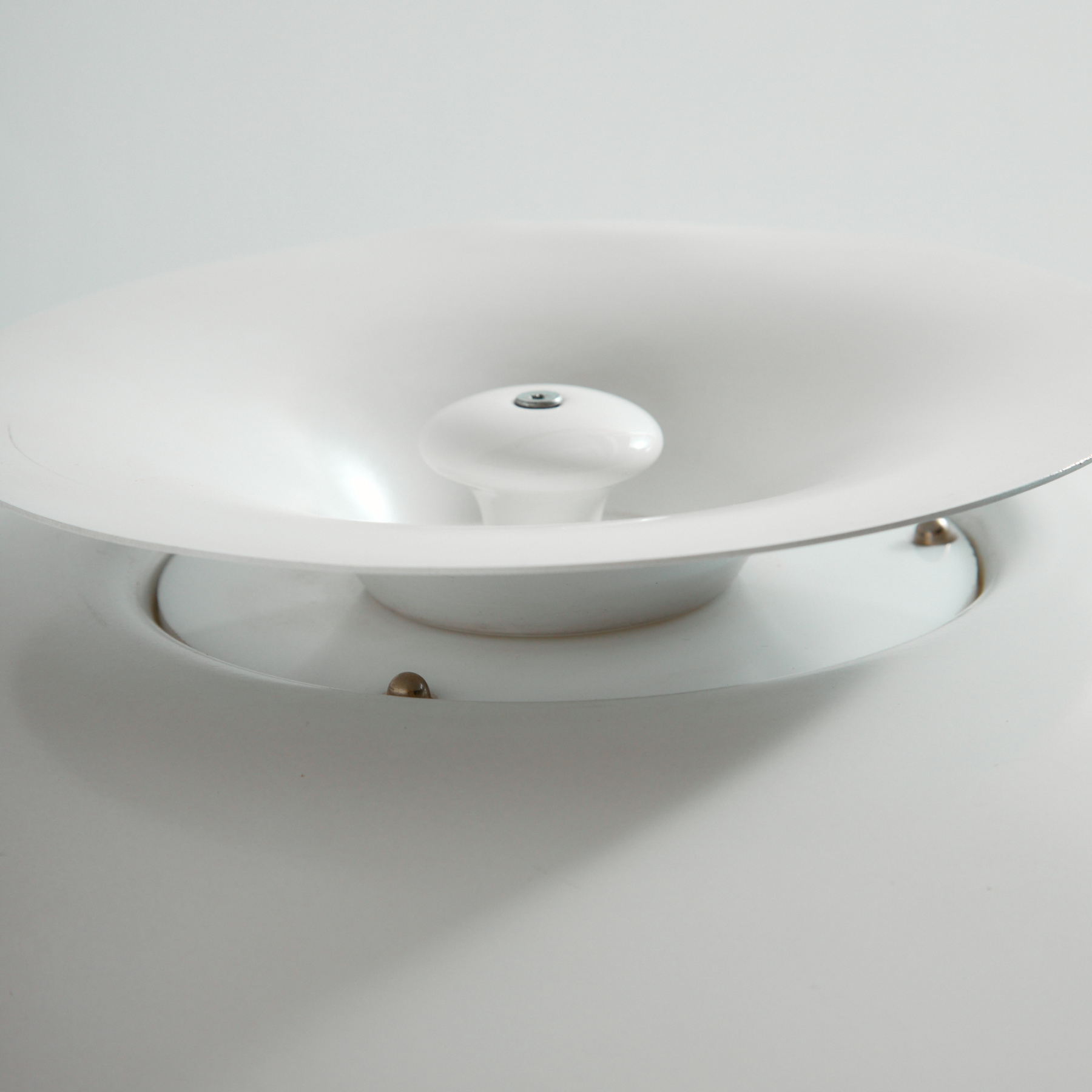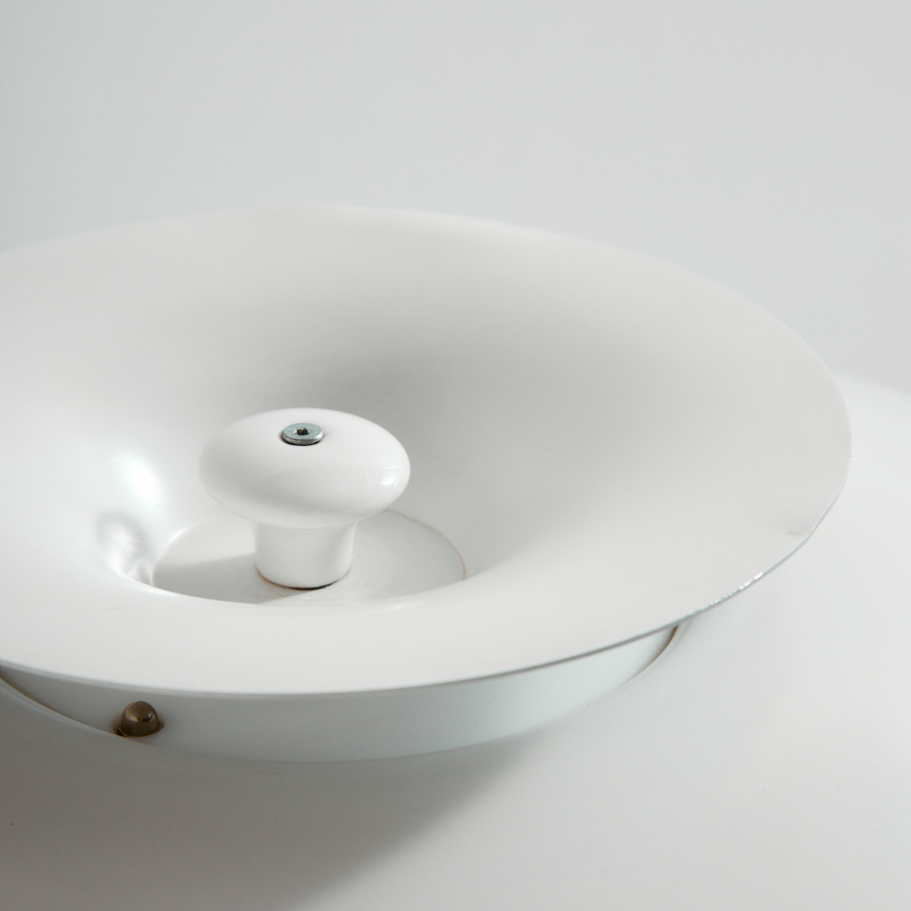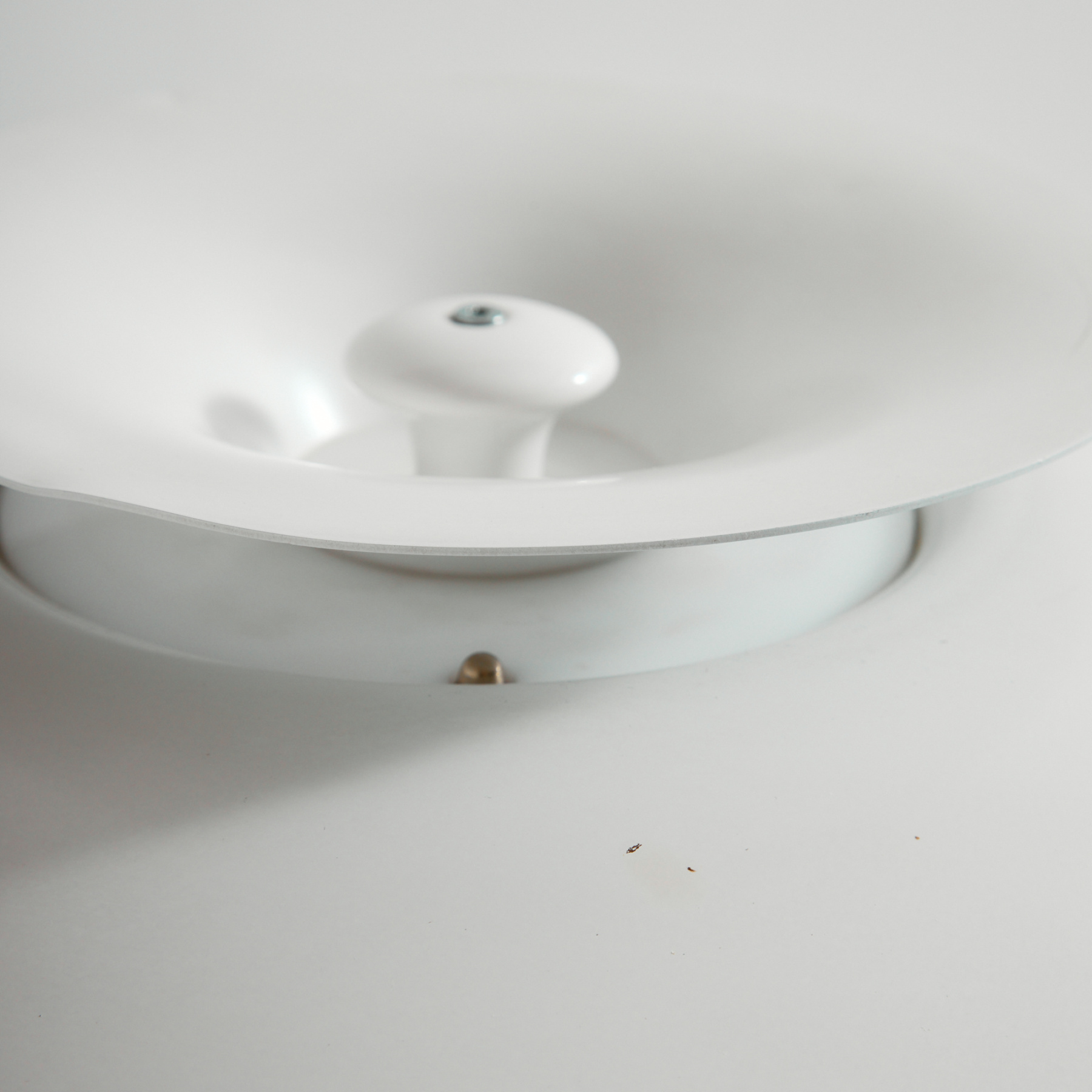 Danish ‘Typ: 1044-G’ aluminium floor lamp from the 1980s produced by Frandsen. The surface of the lamp has scratches, stains and wear in places and the lamellas are dented.