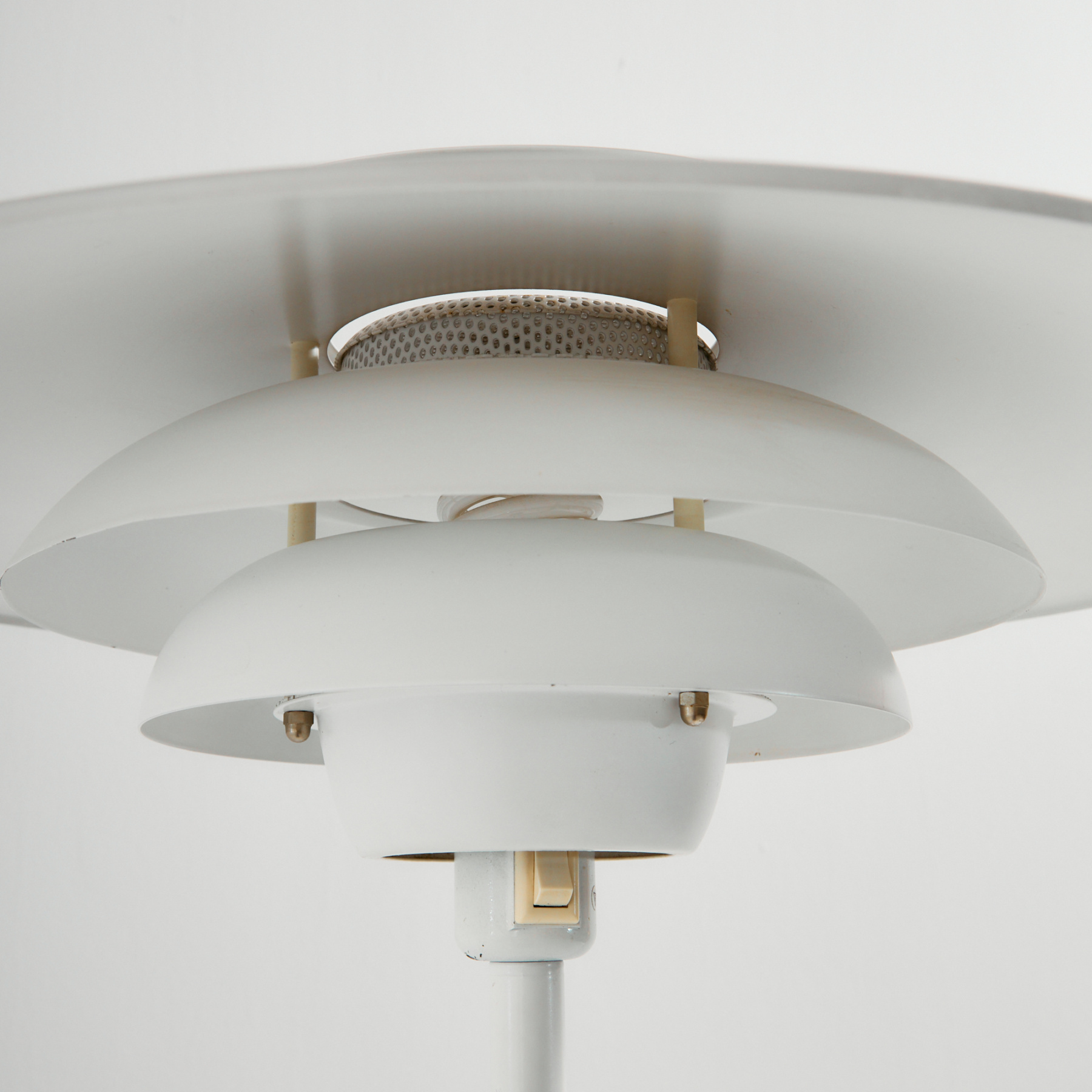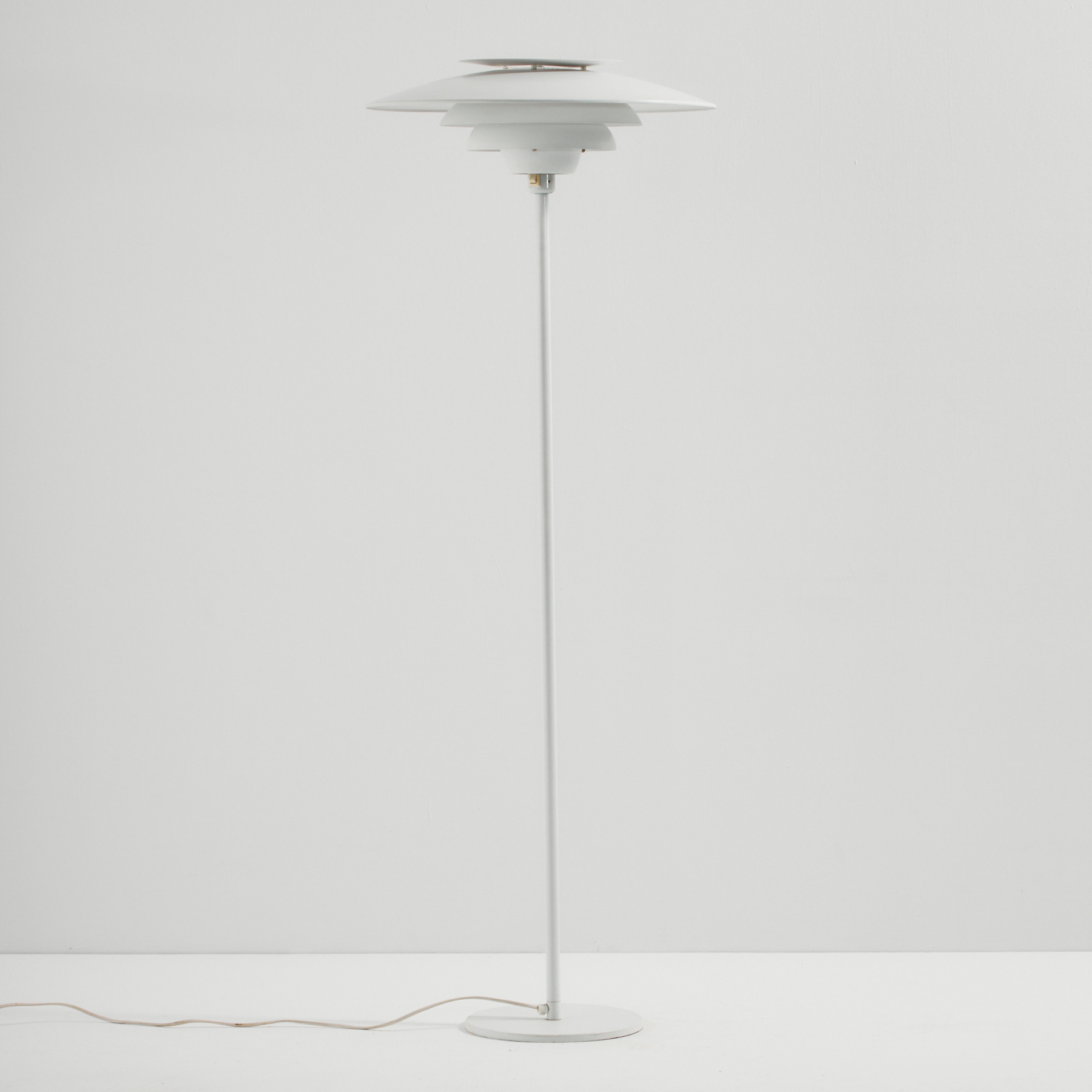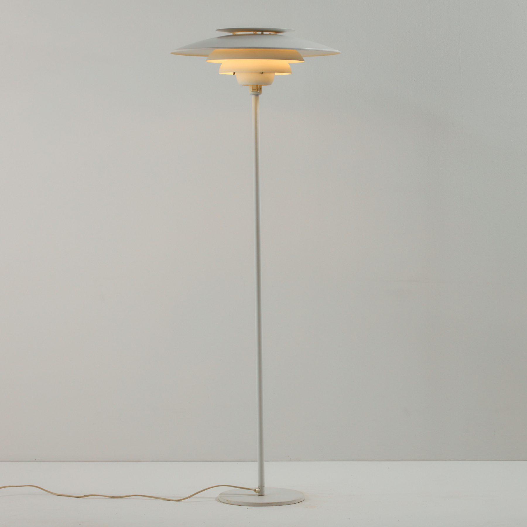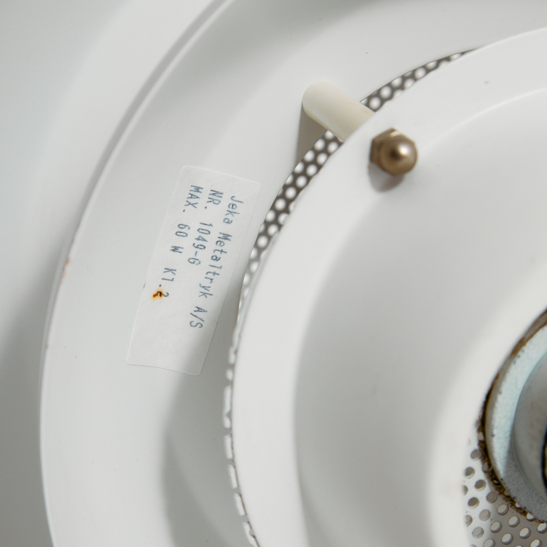 Danish ‘1049-G’ aluminium floor lamp from the 1970s produced byJeka Metaltryk. The surface of the lamp has scratches, rust and wear in places.