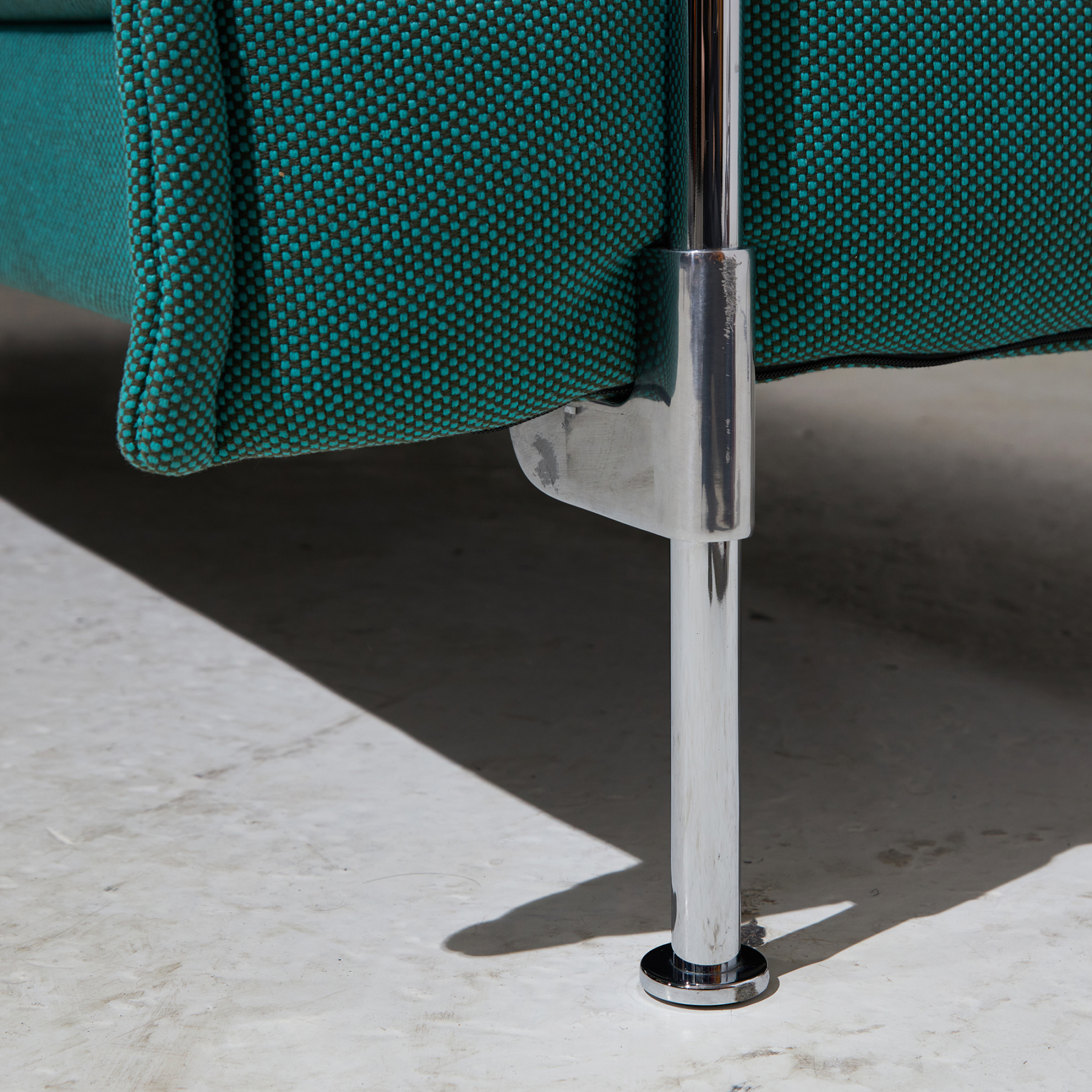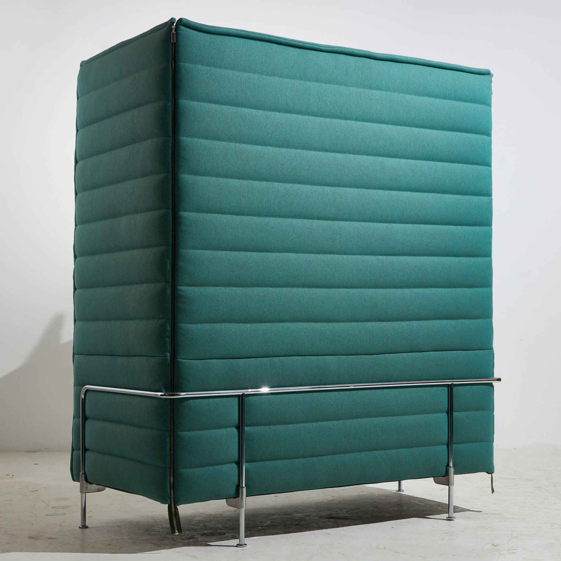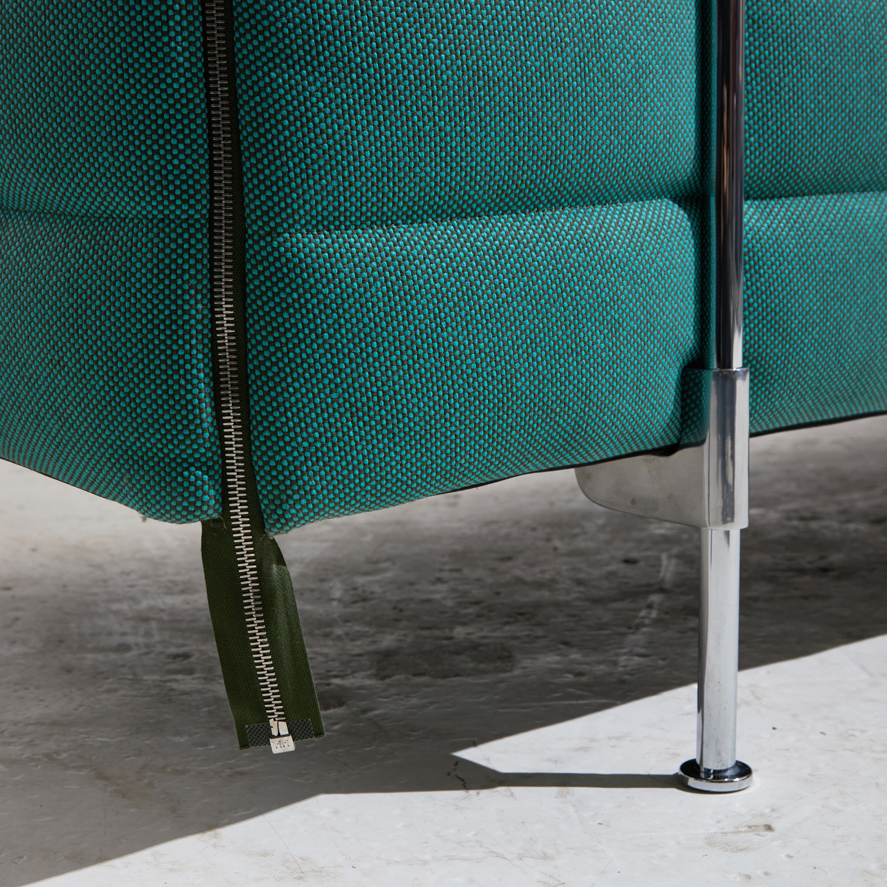 ‘Alcove Xtra High’ two-seater sofa with textile upholstery and chrome-plated tubular steel frame from the 2000s. Designed by Ronan & Erwan Bouroullec and produced by Vitra.The sofa is primarily designed for office environments, as its design allows it to create private space in a busy office environment. With some surface scratches on the steel parts in good vintage condition. The sofa can be used in both office and home environments.