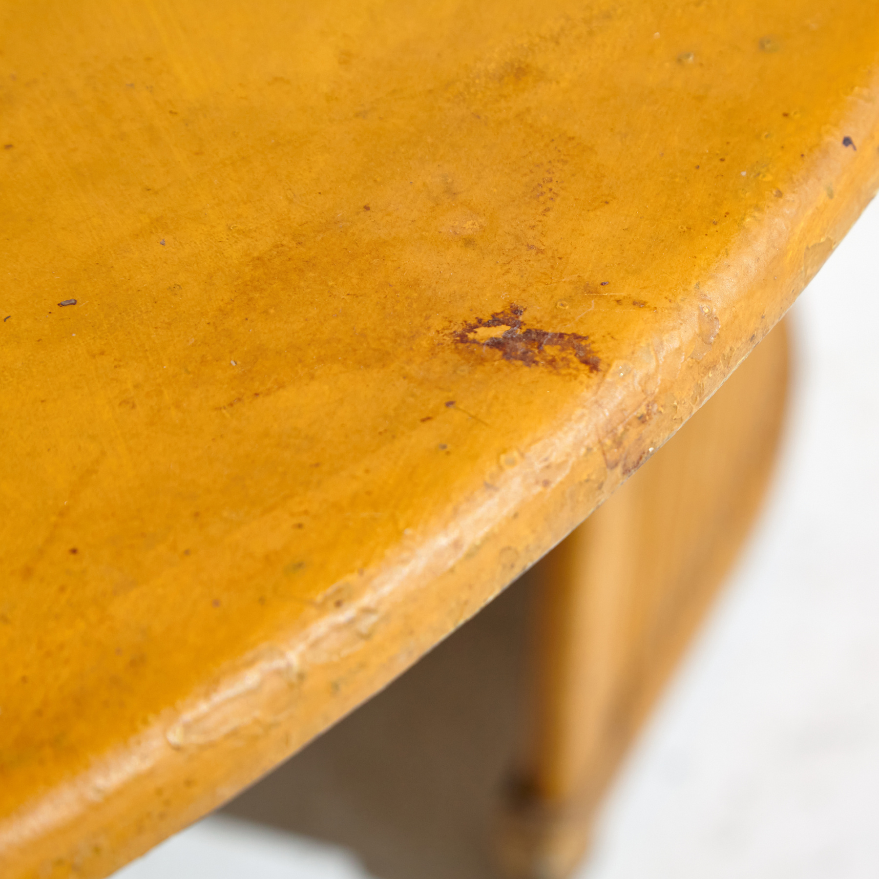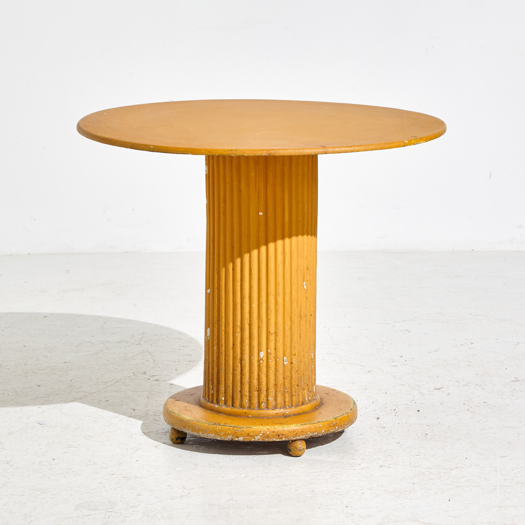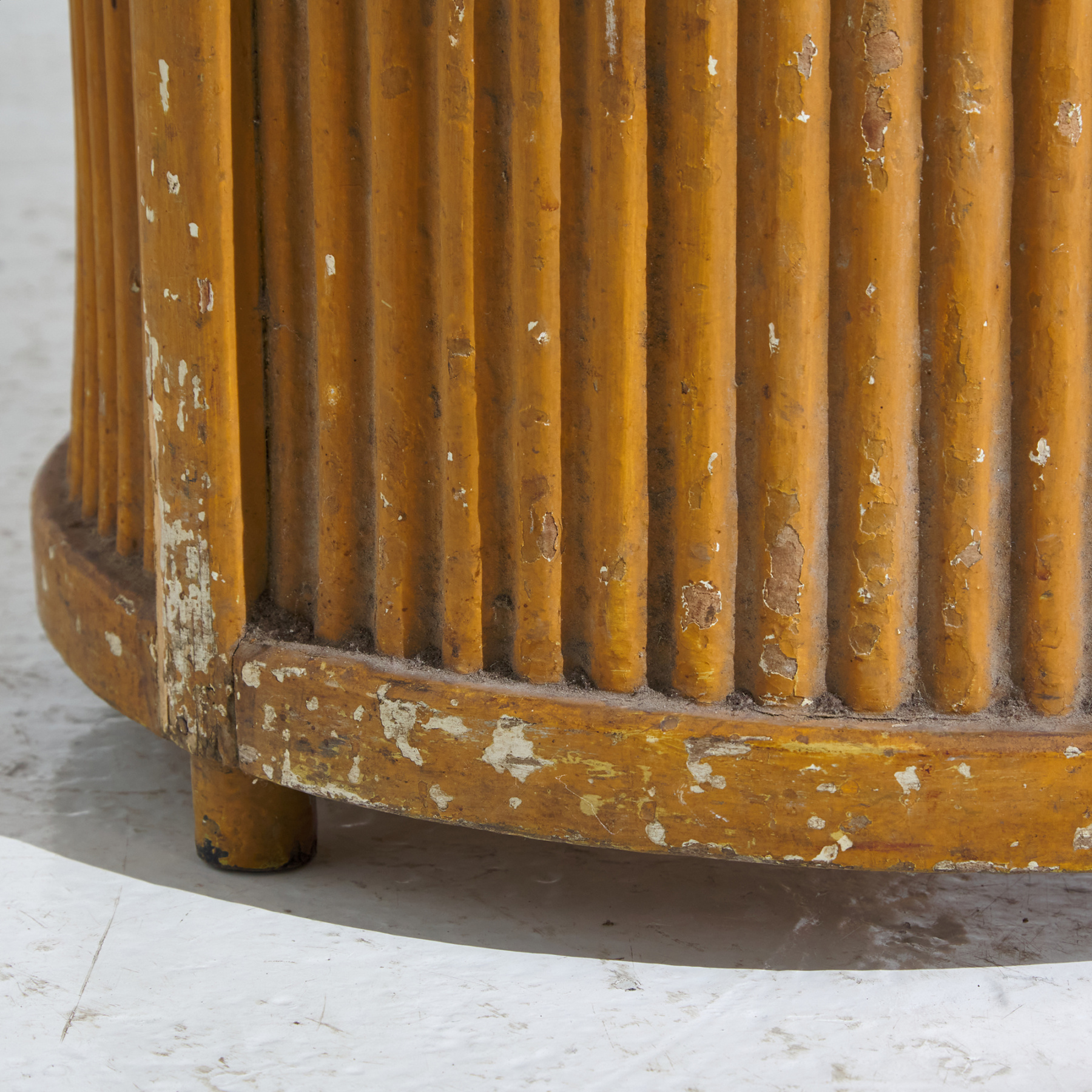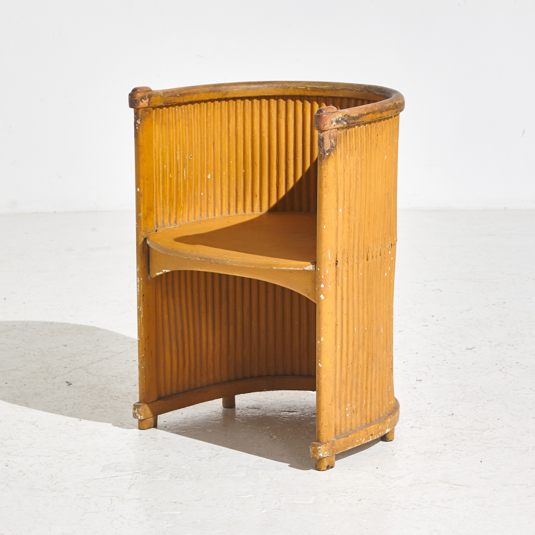 Art Nouveau set from the 1910s, designed by Hans Günther Reinstein. With several scratches, surface damage and paint wear on the beech and corrugated fiberboard parts. In vintage condition with some signs of use. Dimensions: Table: 85x75x85 cm /// Chair: 55x76x50 cm, Sh.: 44 cm