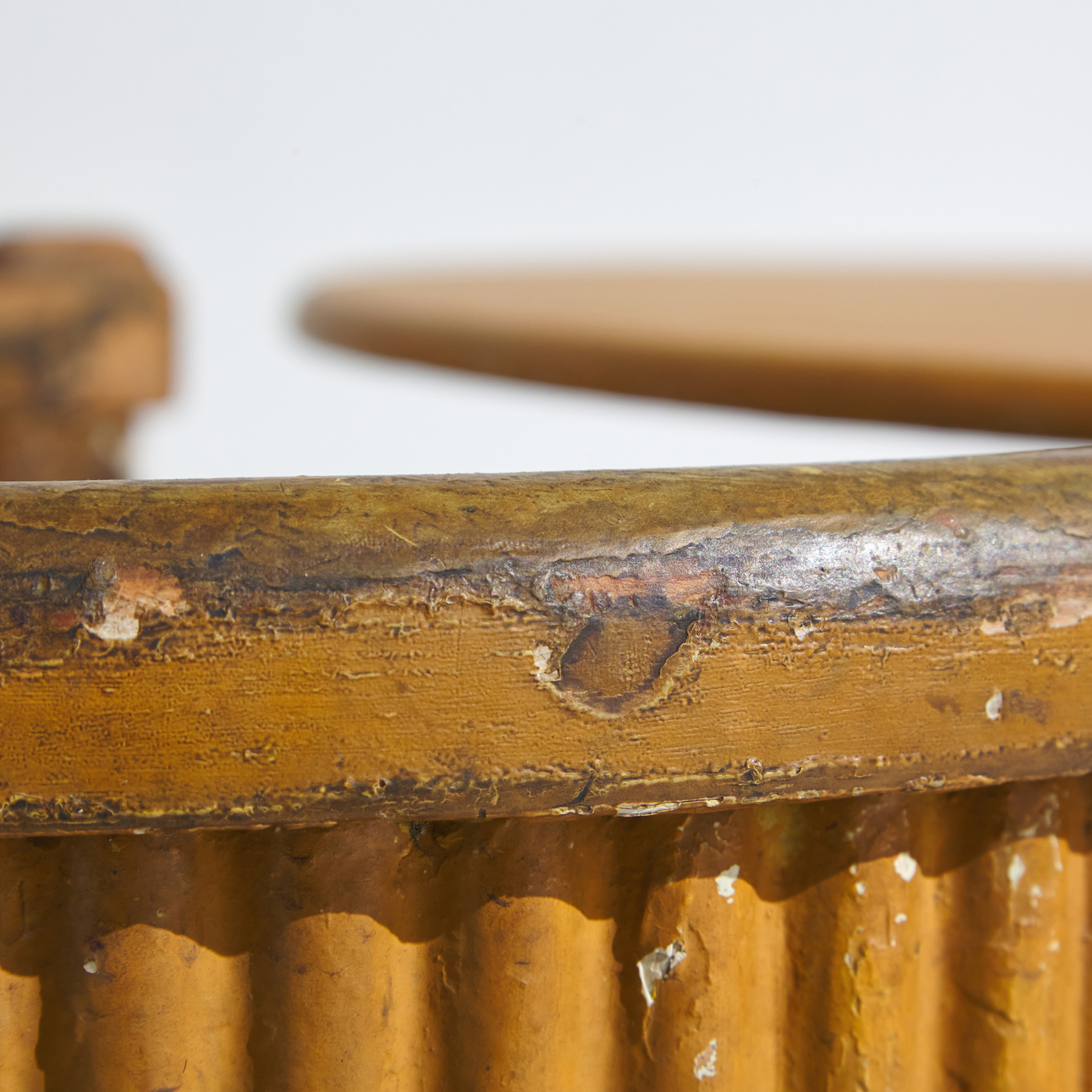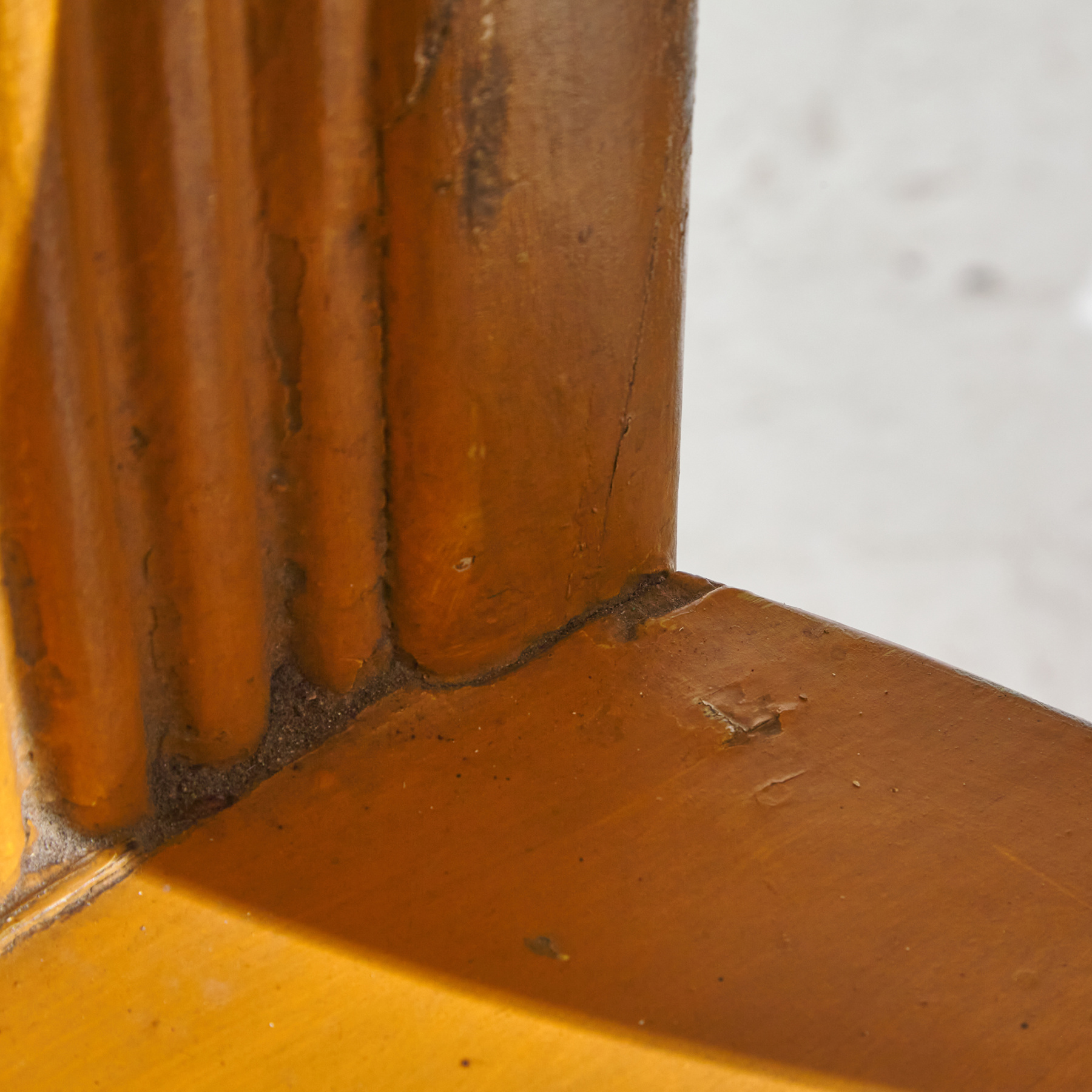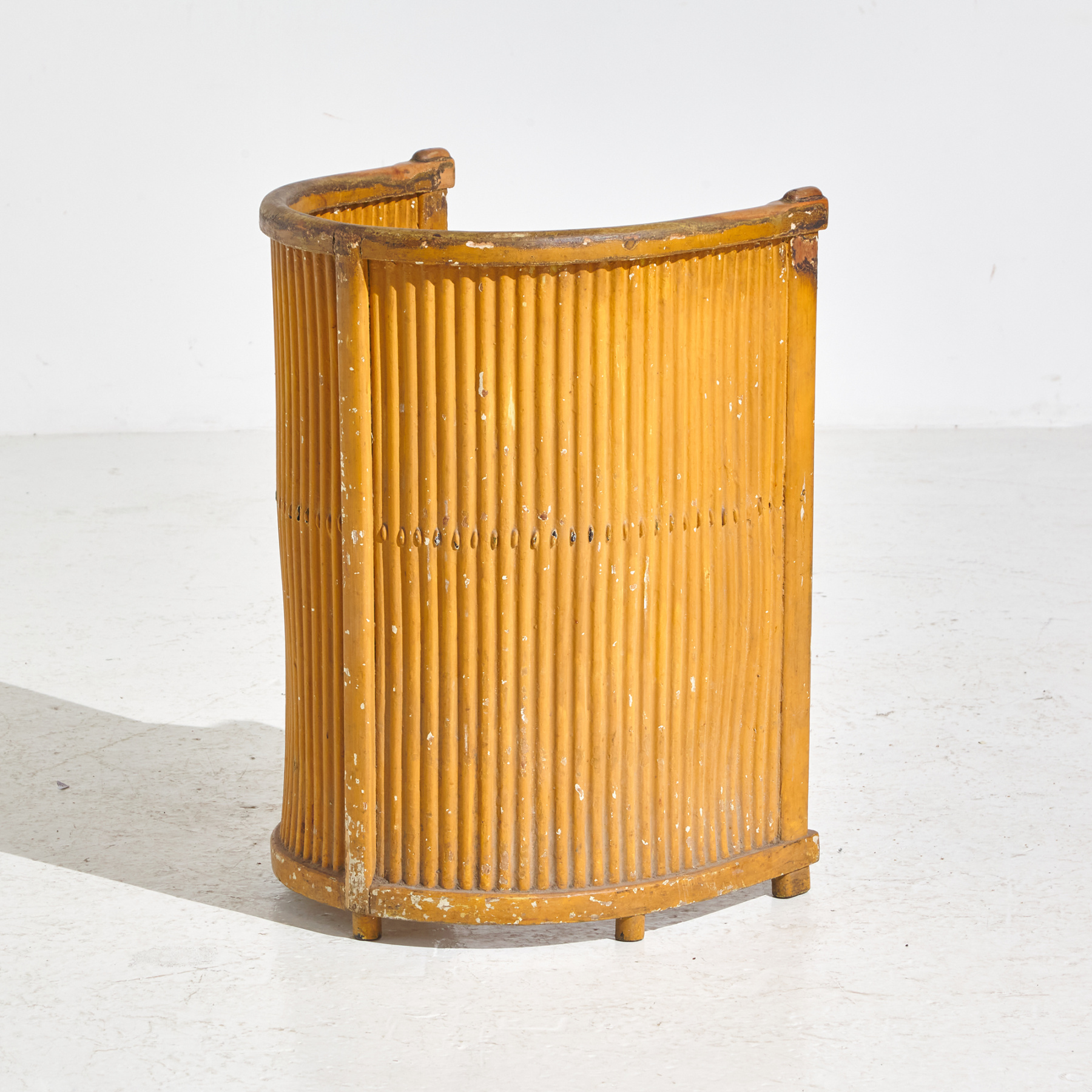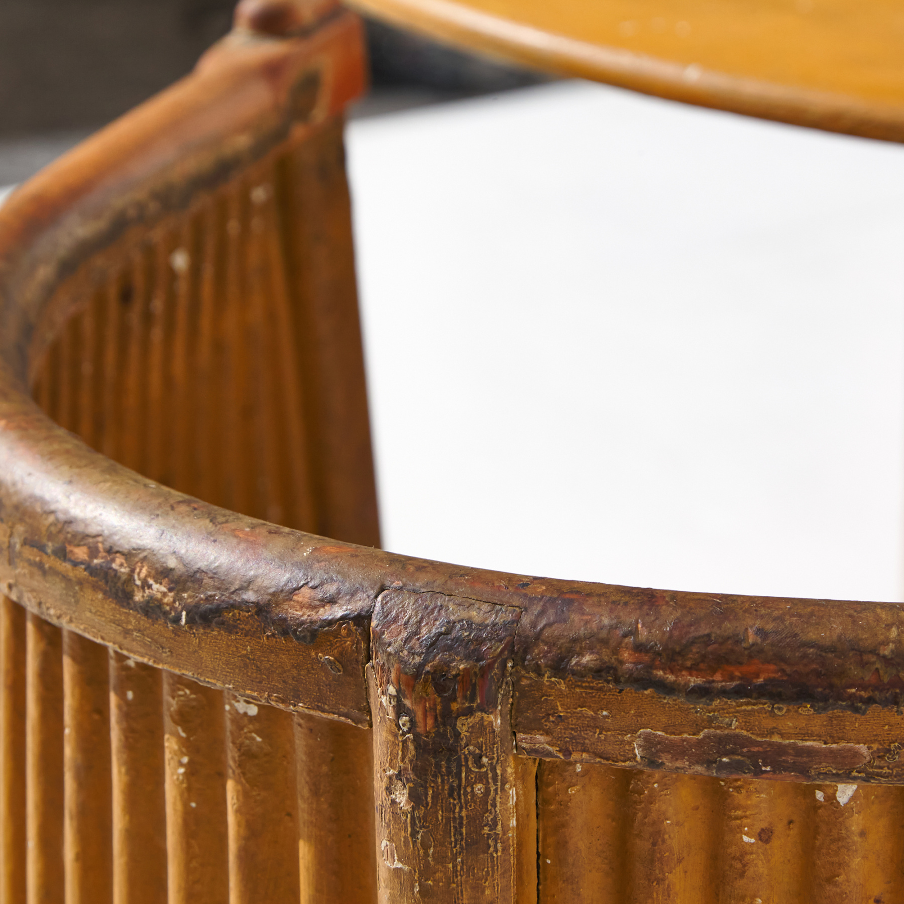 Art Nouveau set from the 1910s, designed by Hans Günther Reinstein. With several scratches, surface damage and paint wear on the beech and corrugated fiberboard parts. In vintage condition with some signs of use. Dimensions: Table: 85x75x85 cm /// Chair: 55x76x50 cm, Sh.: 44 cm