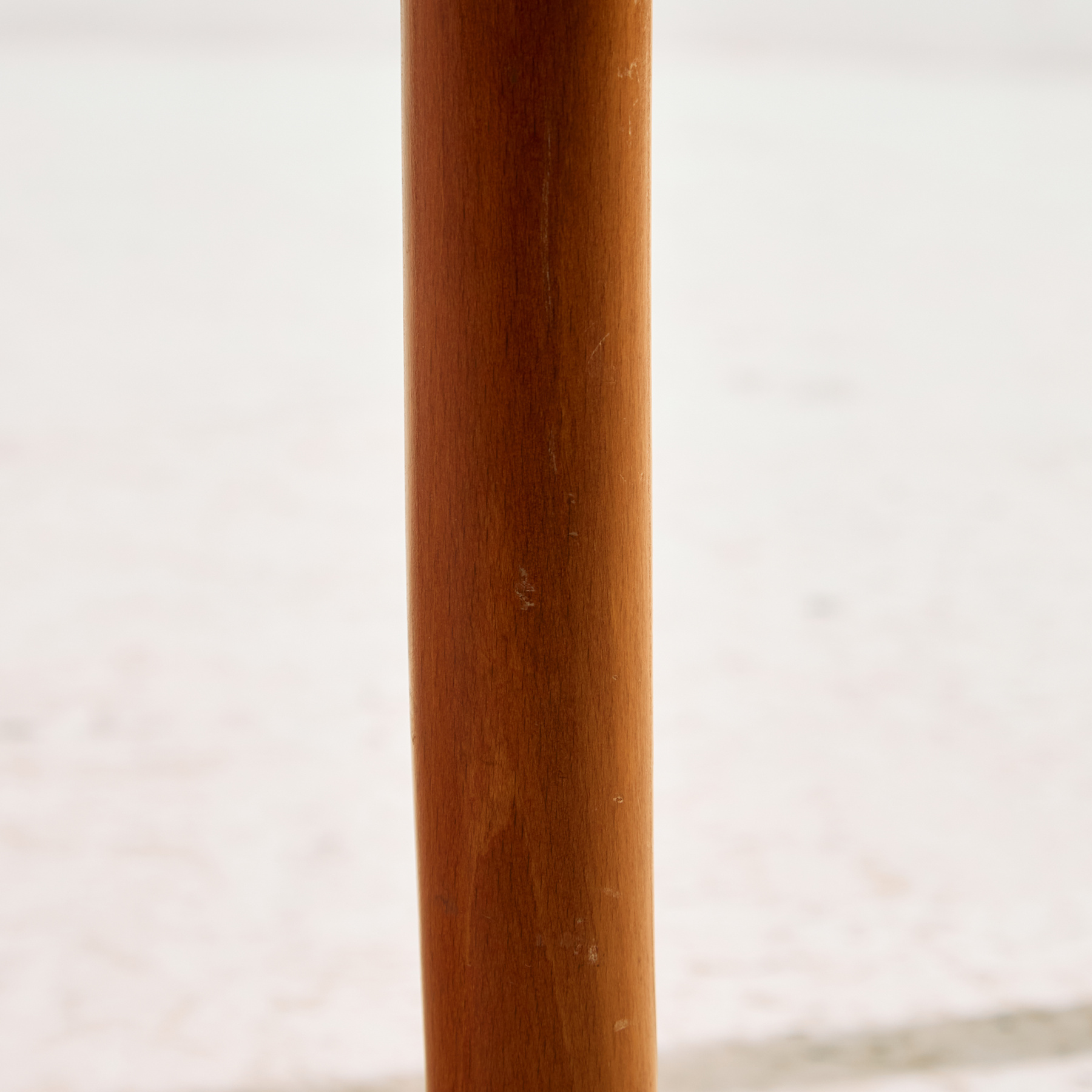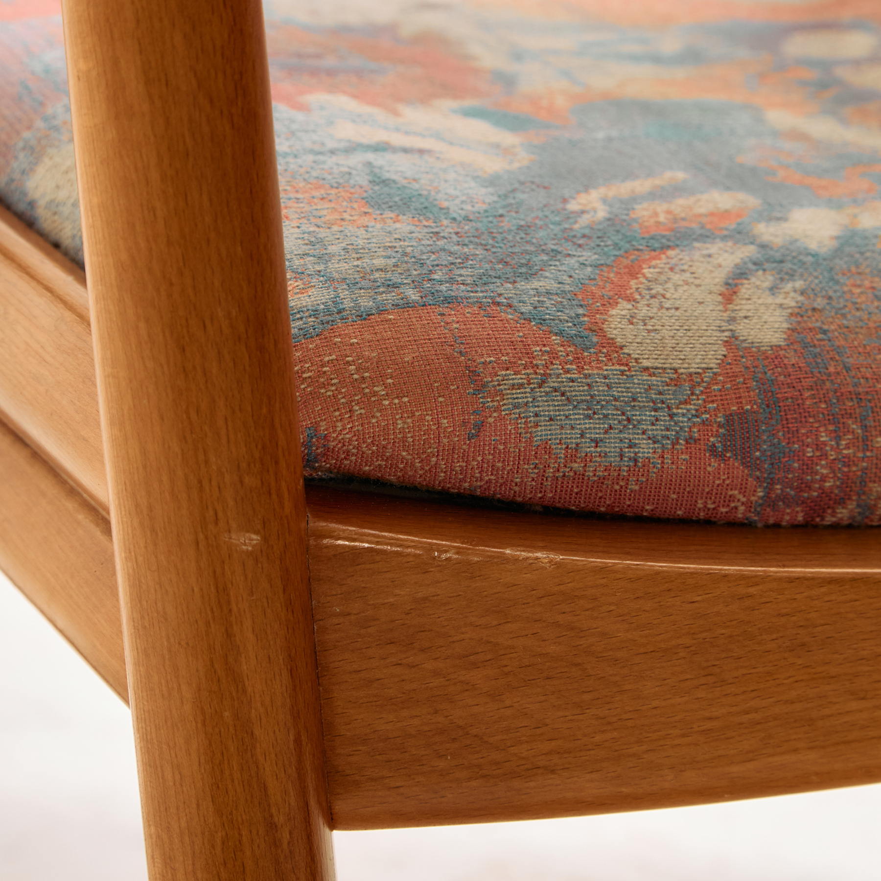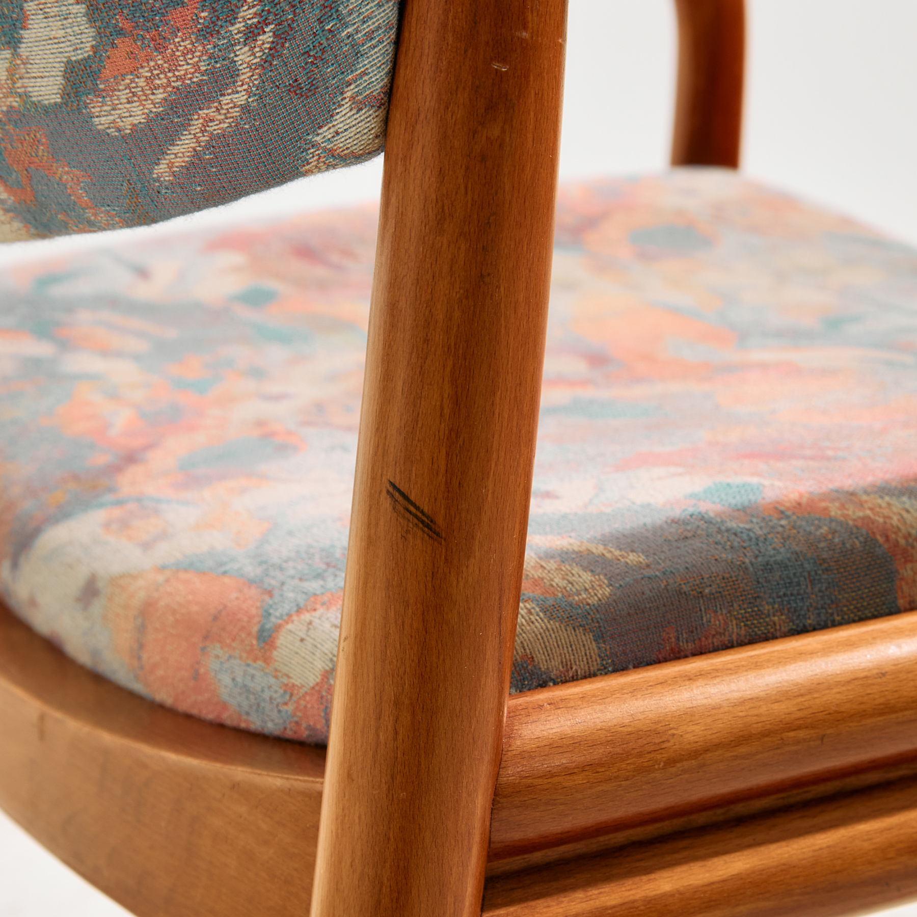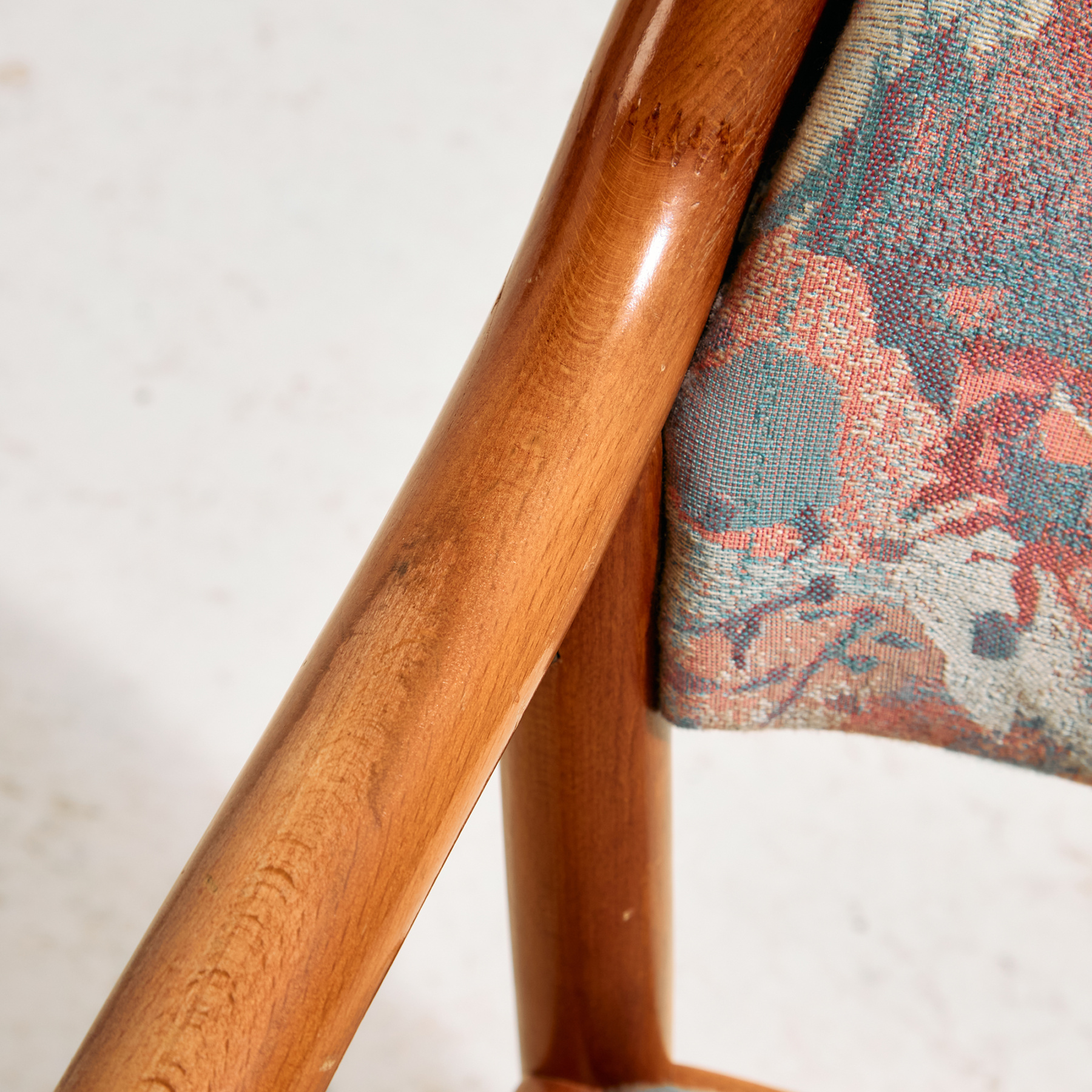 Beech armchair with bentwood frame and textile seat and backrest from the 1980s. With some surface scratches, stains and wear on the wooden and textile parts.