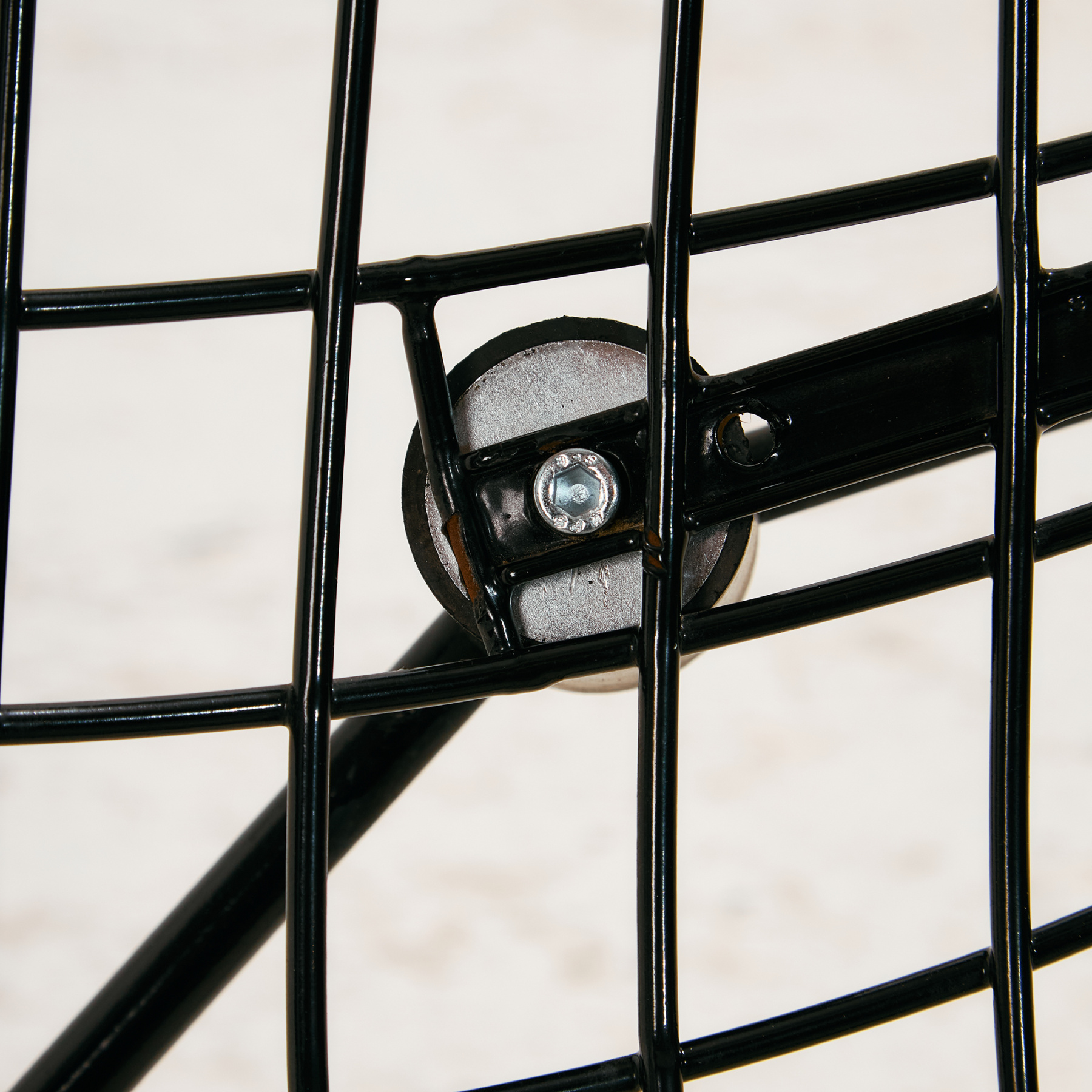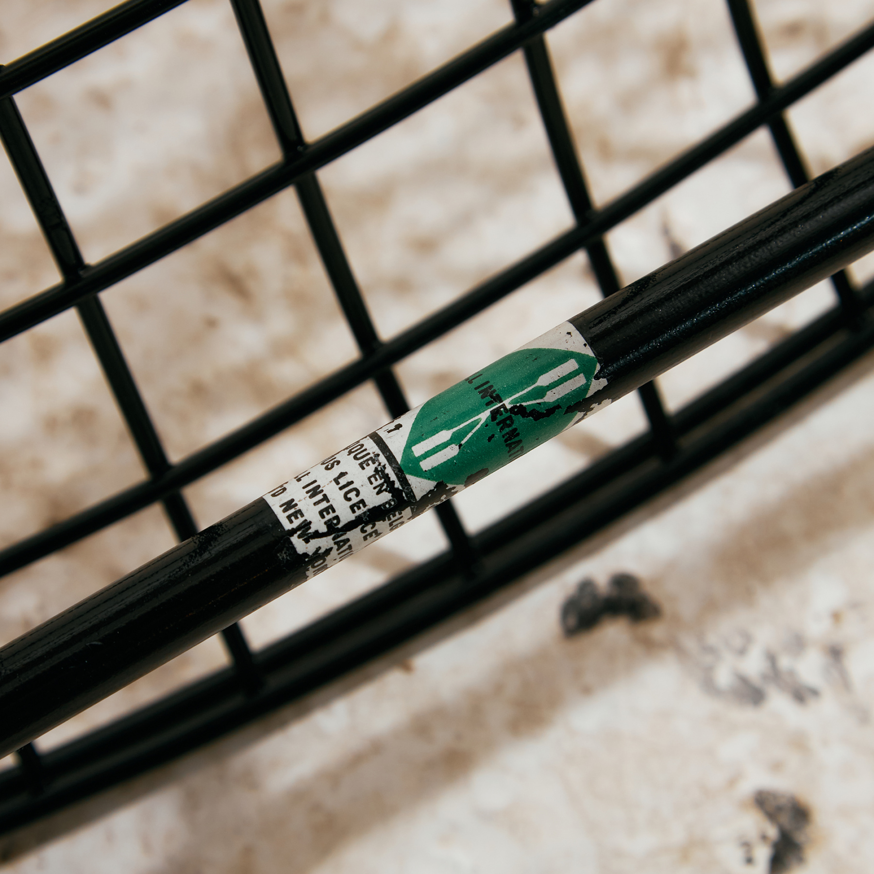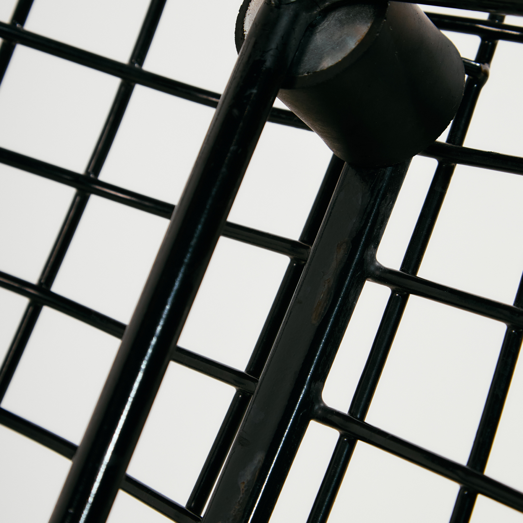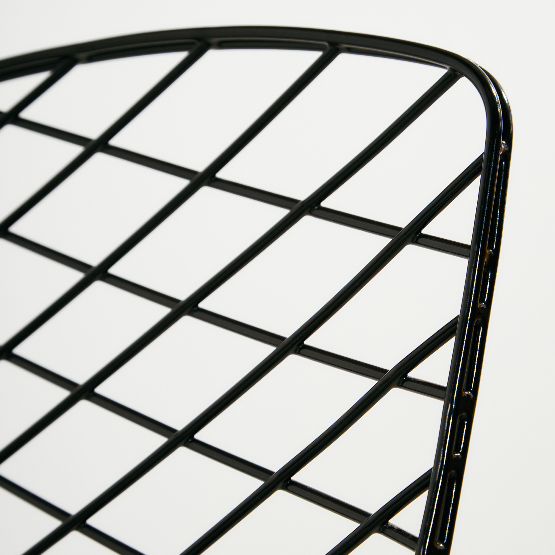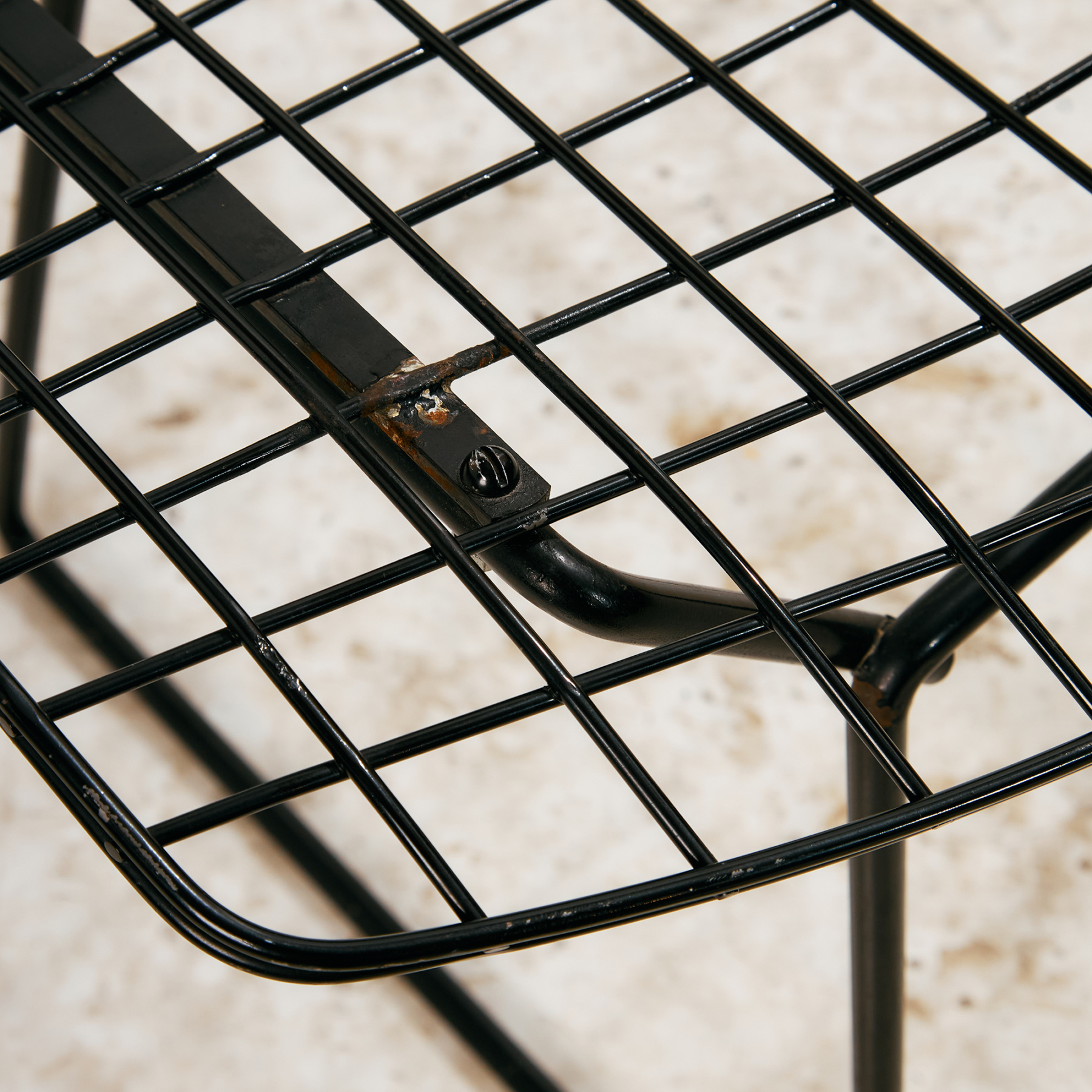 Harry Bertoia has created some of the most outstanding pieces of the 20th century. He has combined different media within the boundaries of fine art and design, revealing an interplay between two and three-dimensional works. In addition to function, he explored the relationship between space and form. In 1952, he designed his ‘Bird’ chair for Knoll, a sculptural work of vinyl-coated bent and welded steel rod construction. The chair’s trademark also indicates that it is an early edition, which is further confirmed by its details. The steel structure has several surface scratches, stains and rust. Dimensions: Chair: 96x102x80 cm, Sh.: 35 cm /// Ottoman: 59×34,5×41,5 cm