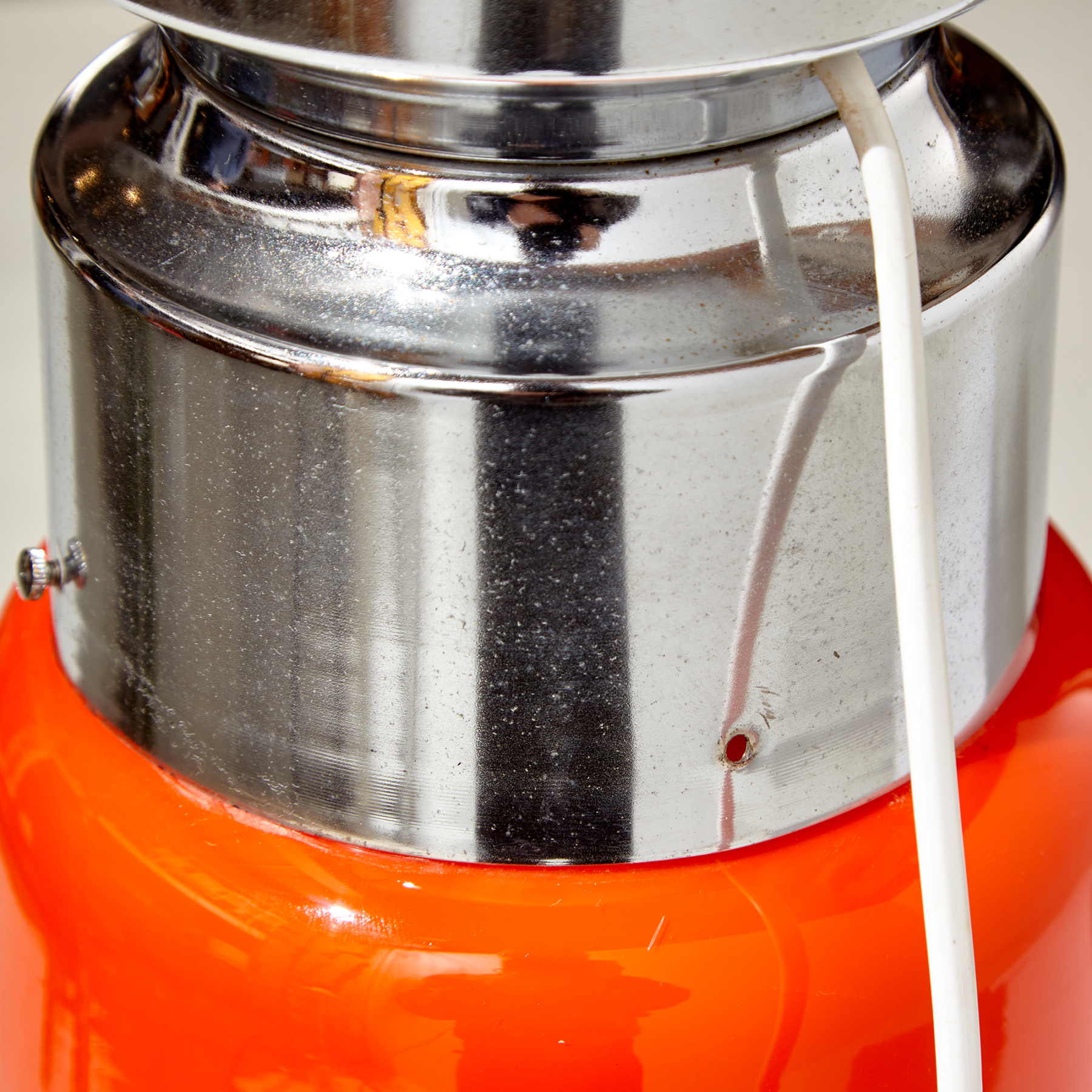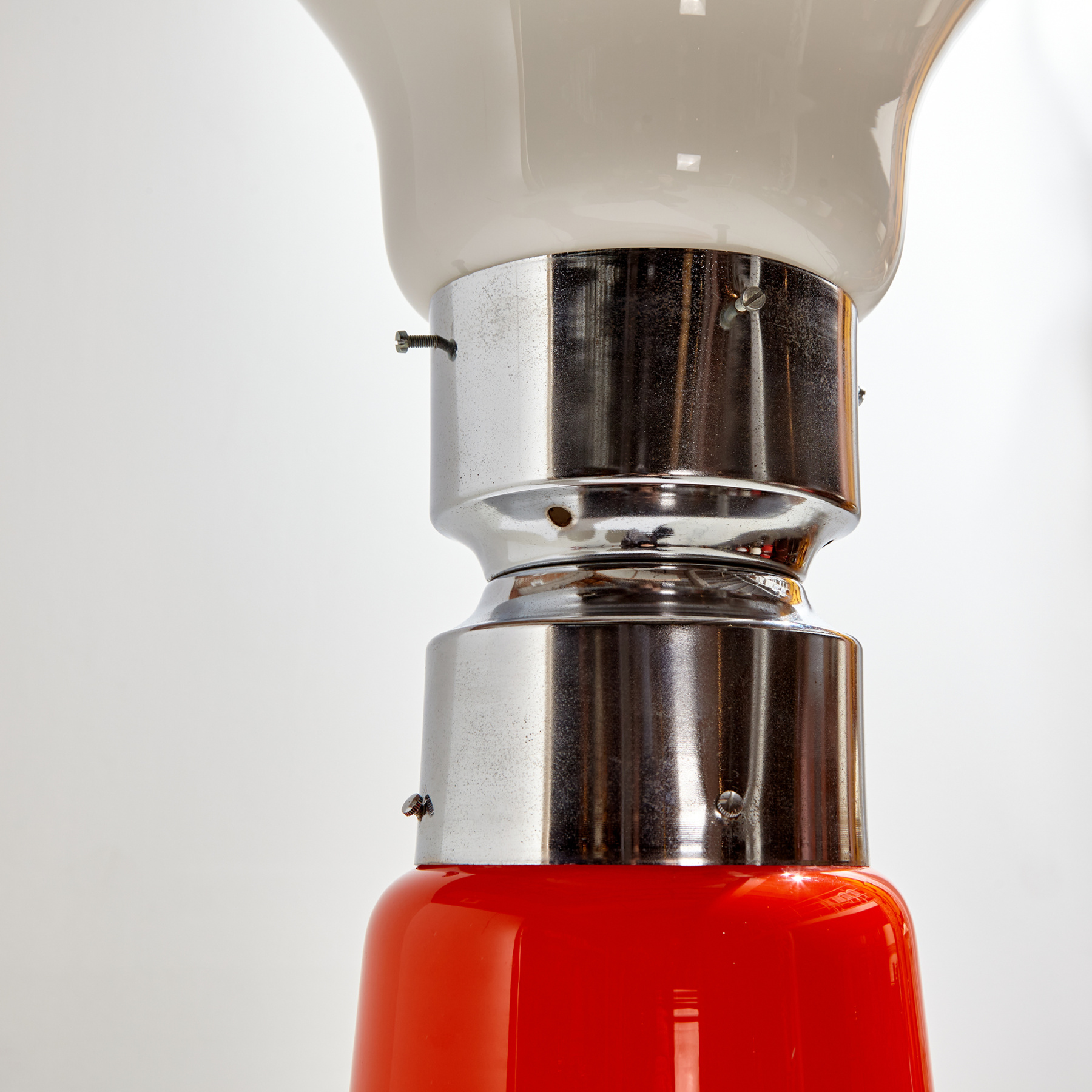 Iconic ‘Birillo’ Murano glass floor lamp from the 1960s designed by Carlo Nason for Mazzega. With some scratches and wear on the glass and chrome parts. The chrome surface of the lamp is oxidised.