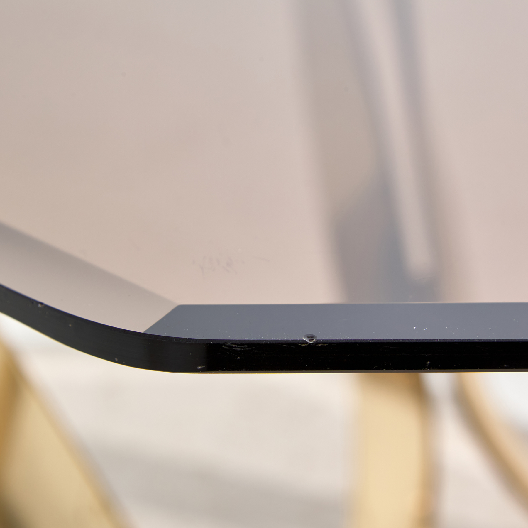Solid brass coffee table with octagon smoked glass top from the 1970s designed by Roger Sprunger for Dunbar. With some surface scratches and wear on the brass and glass parts. In vintage condition with some signs of use. The brass surface of the table is oxidised.