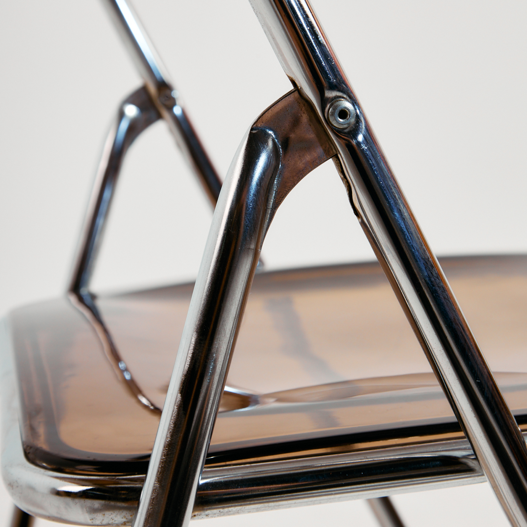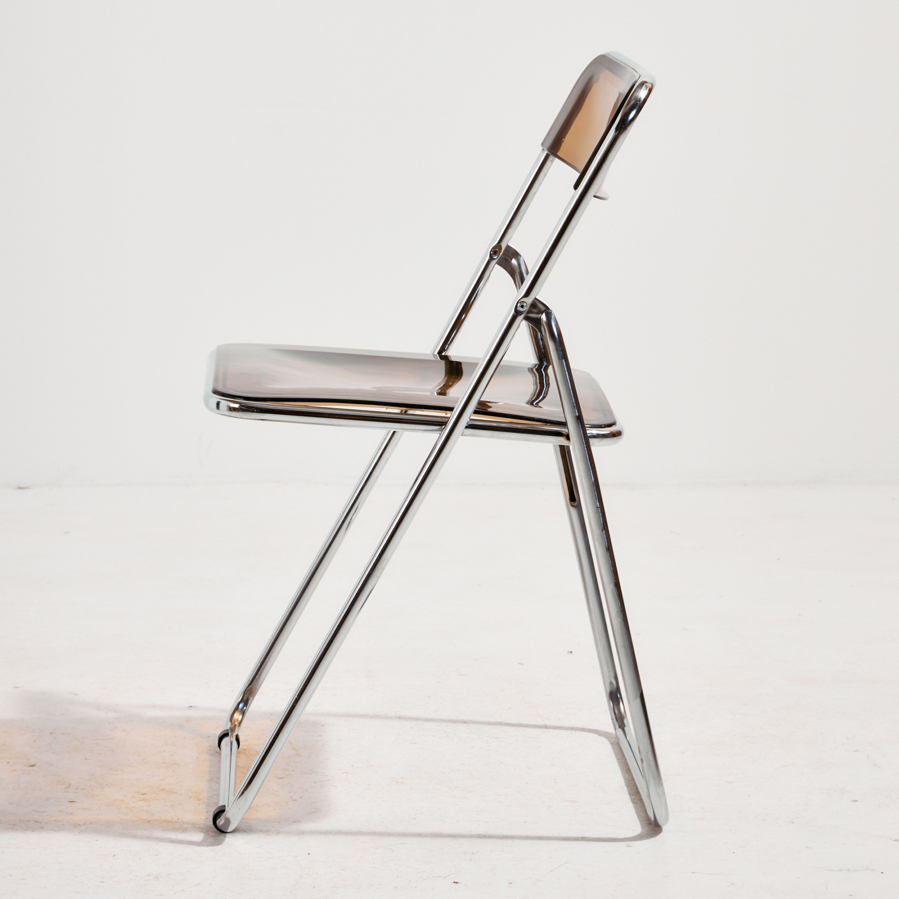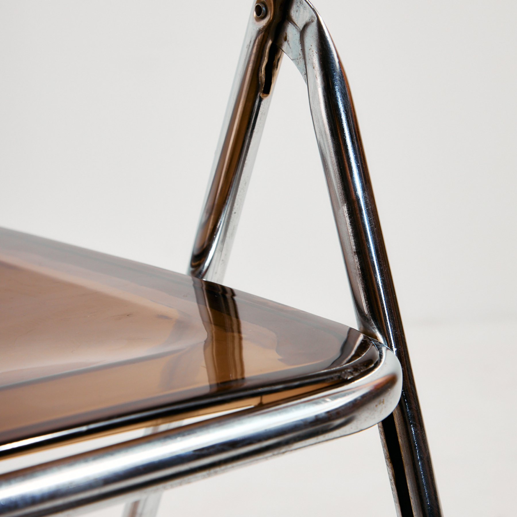 Folding chair from the 1980s, which can be a great choice for space saving as well as function. The chair’s structure is made of metal, the seat and backrest are made of plastic. The surface of the chair has scratches, stains and wear, with missing bases.