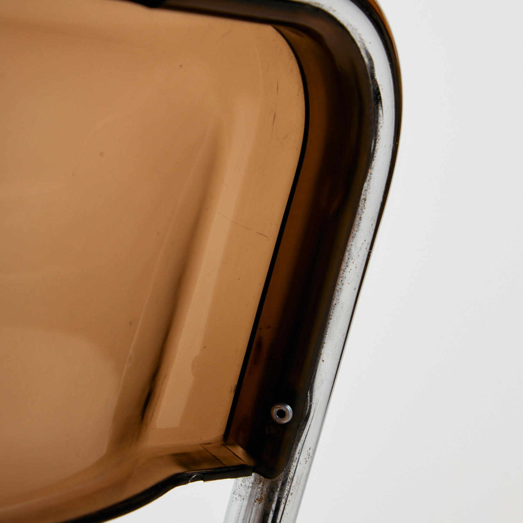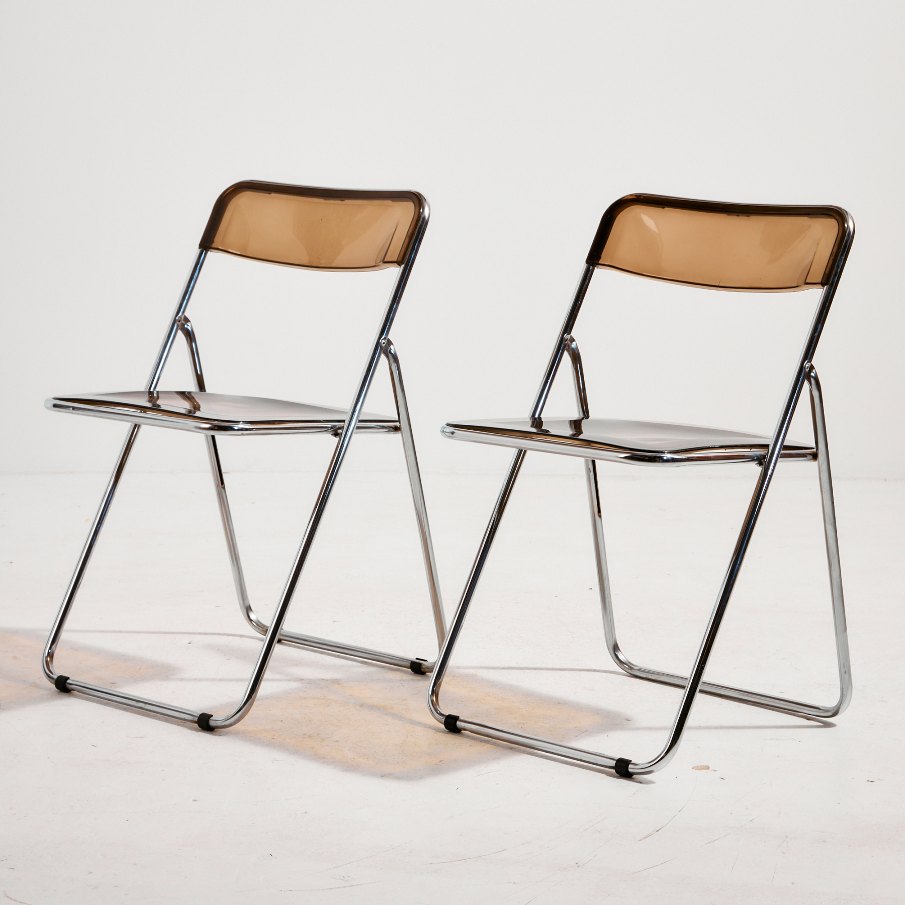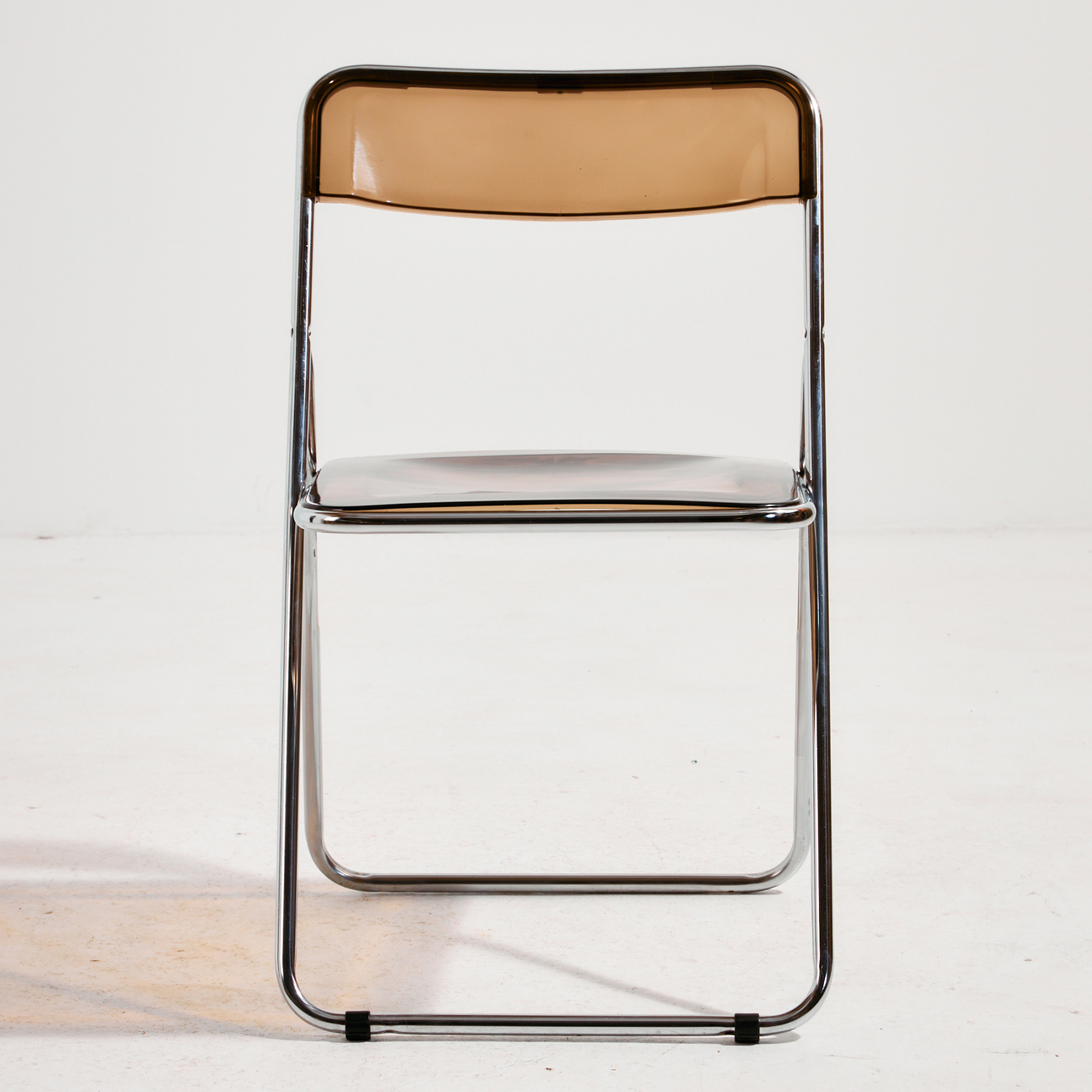 Folding chair from the 1980s, which can be a great choice for space saving as well as function. The chair’s structure is made of metal, the seat and backrest are made of plastic. The surface of the chair has scratches, stains and wear, with missing bases.