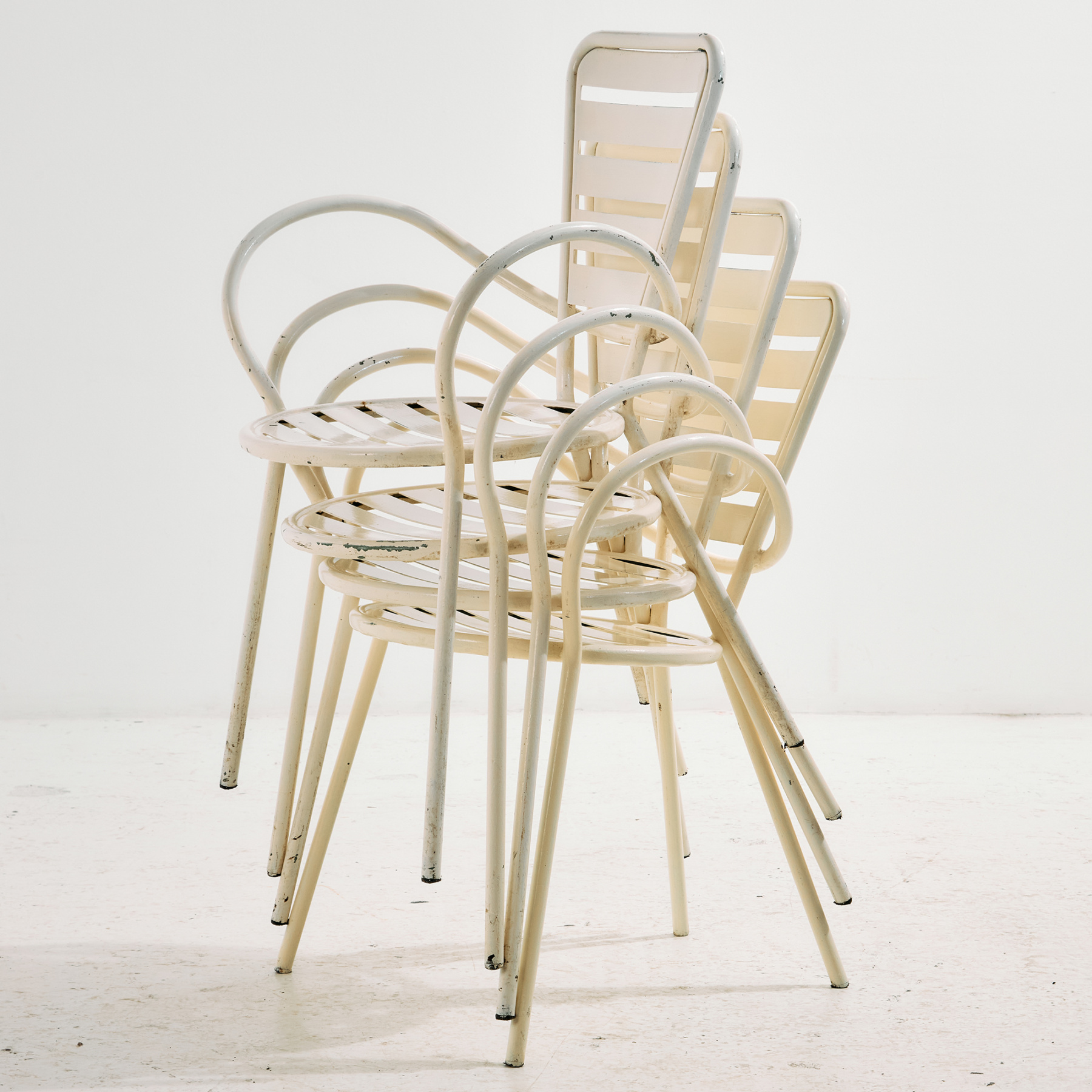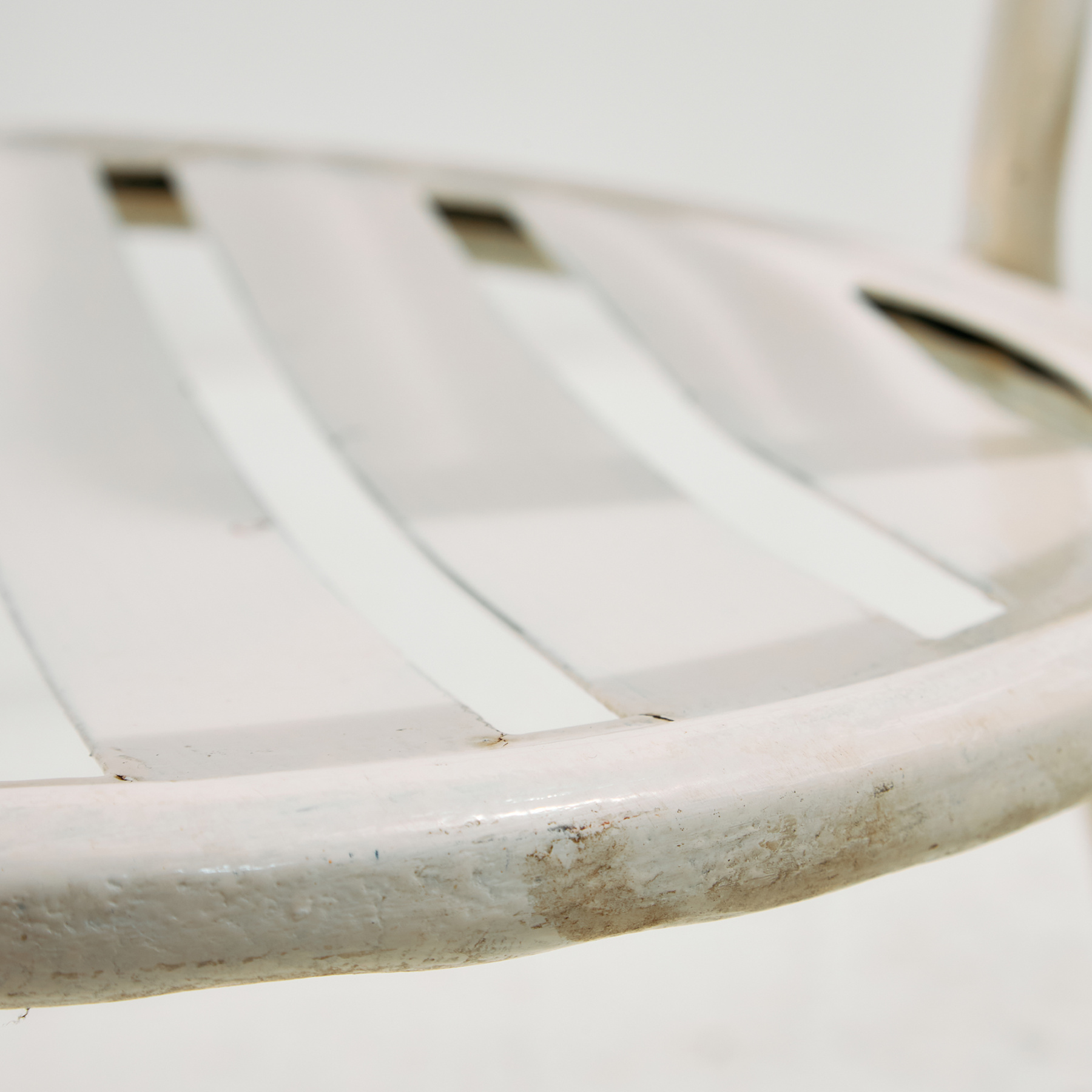 The ‘Gazelle’ armchair designed by Jonathan Crinion in 1986, was originally produced by AREA, and was taken over by Keilhauer in the 2000s. The chair is comfortable, stable and stackable, making it a popular choice for both outdoor and indoor units to this day. With some surface scratches, stains and wear on the steel parts.