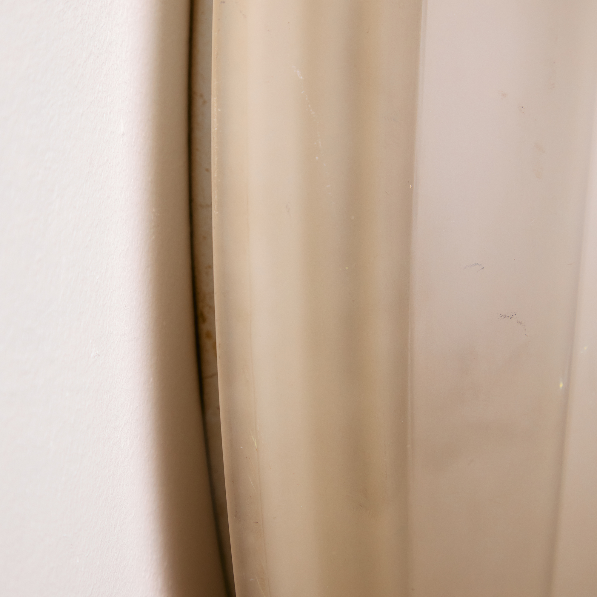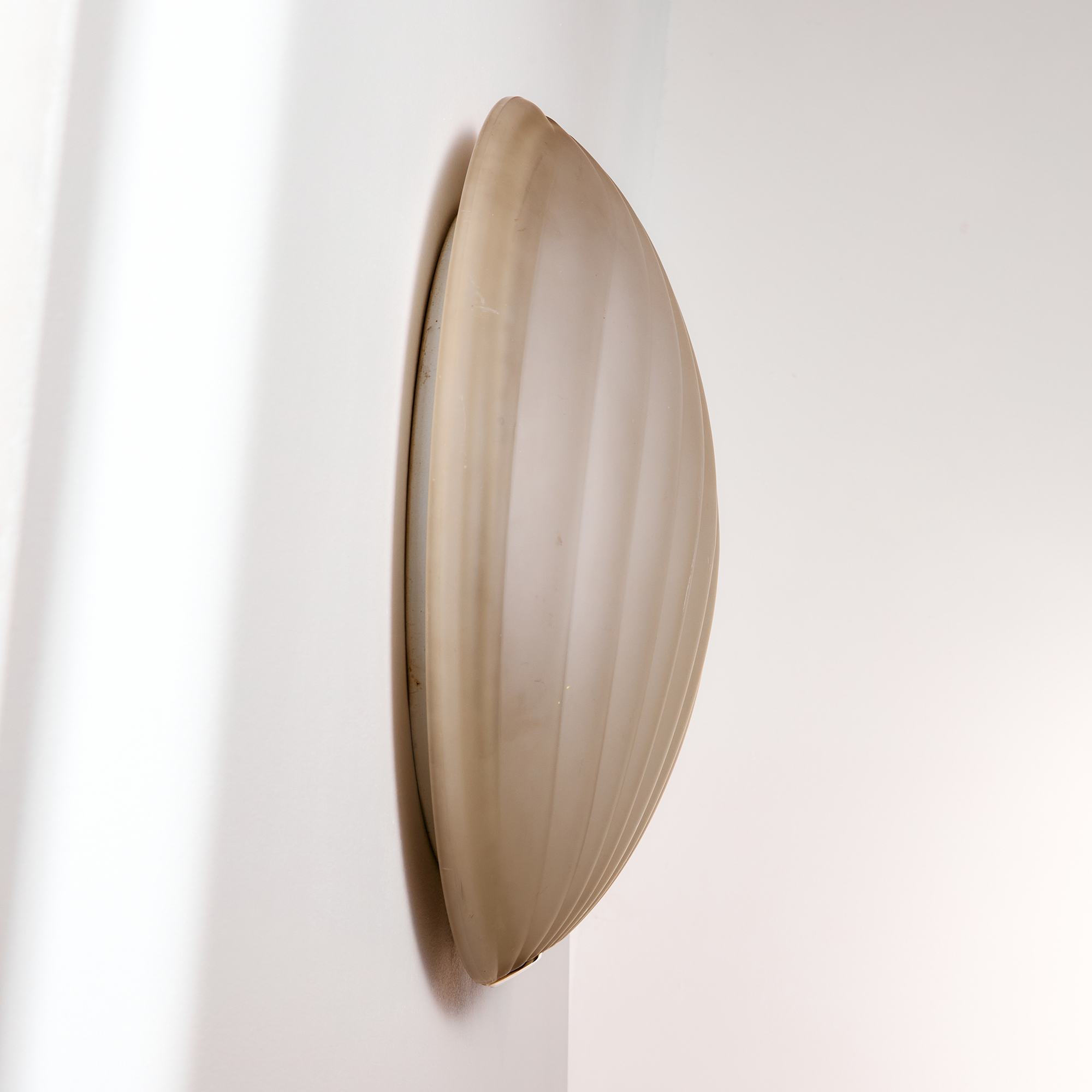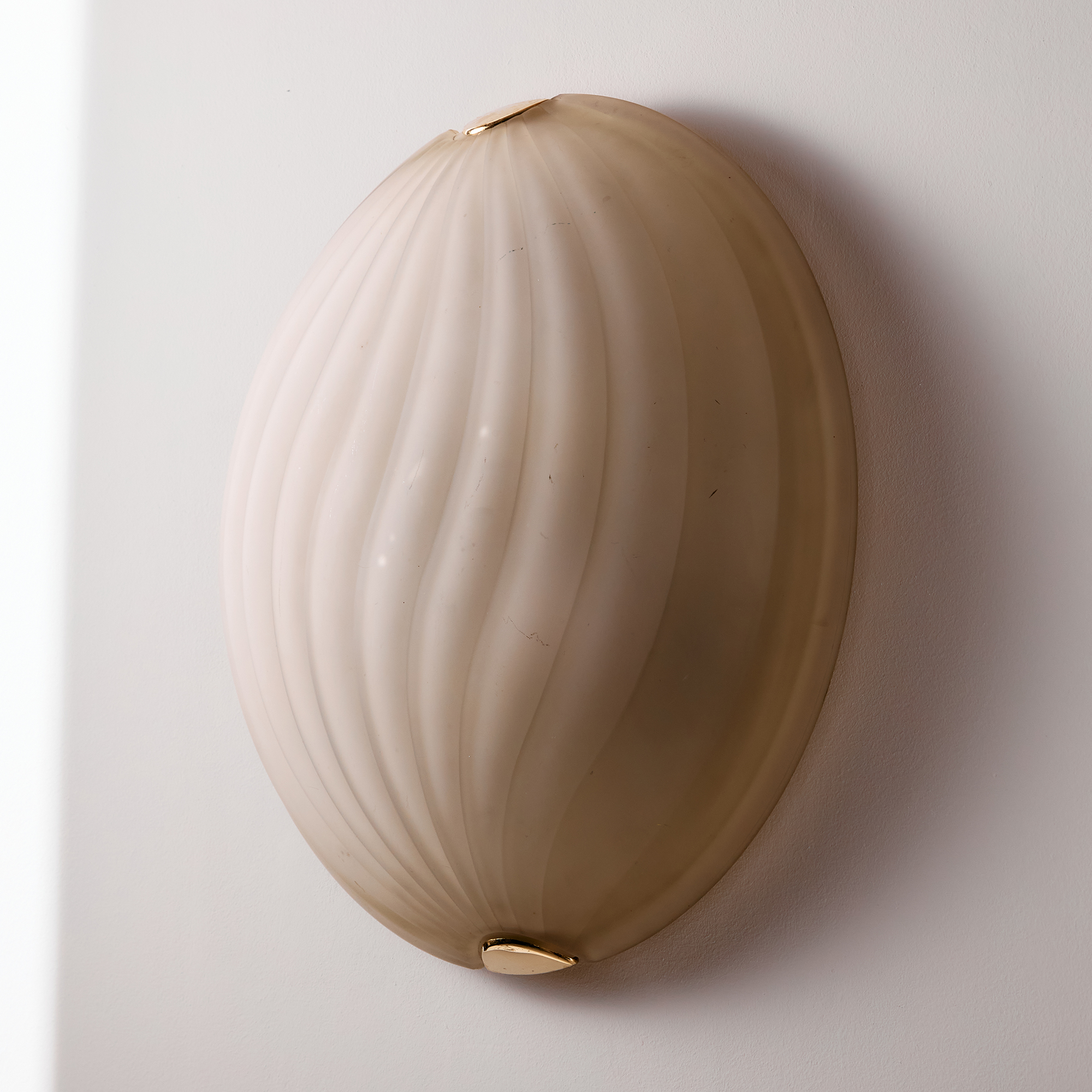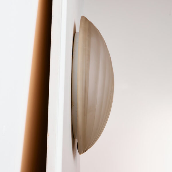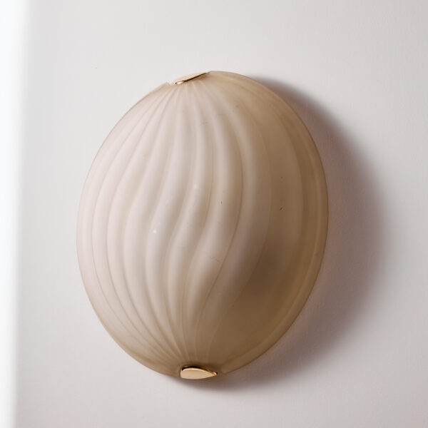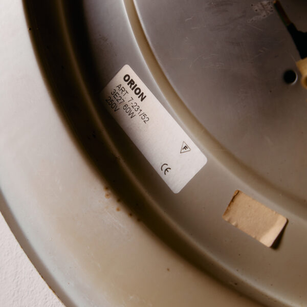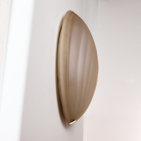 Orion wall lamp with organic shapes from the 1990s. Thanks to its glass lampshade, it gives off a cosy glow, making it a truly outstanding feature in any space. Surface scratches and wear on the glass and metal parts.