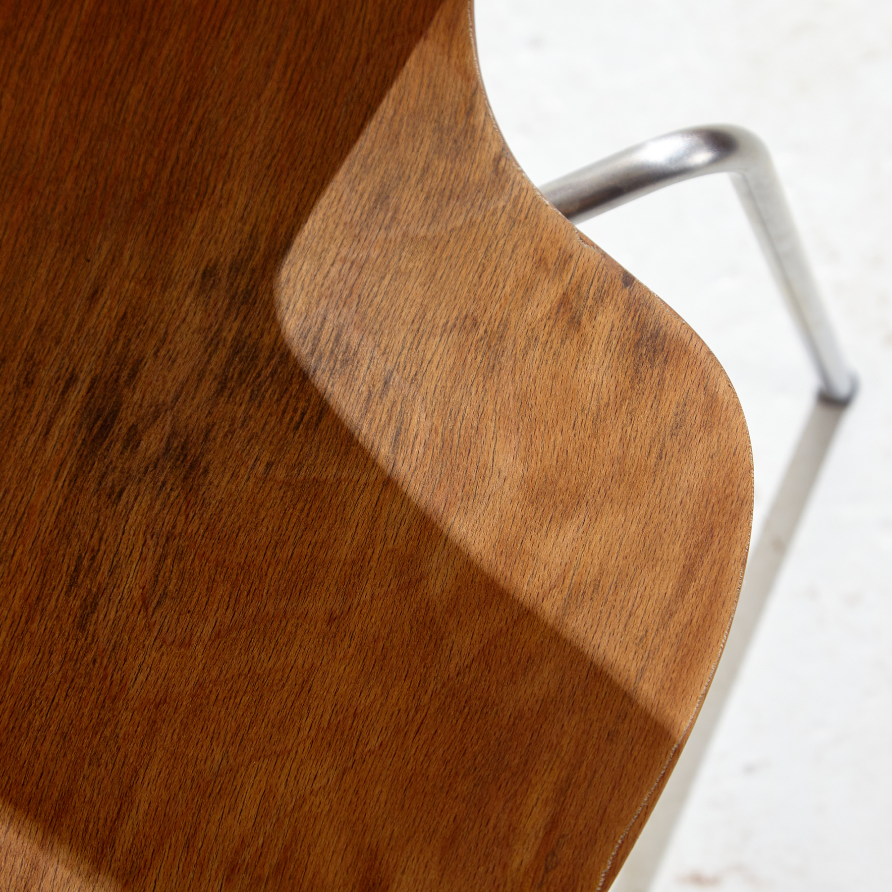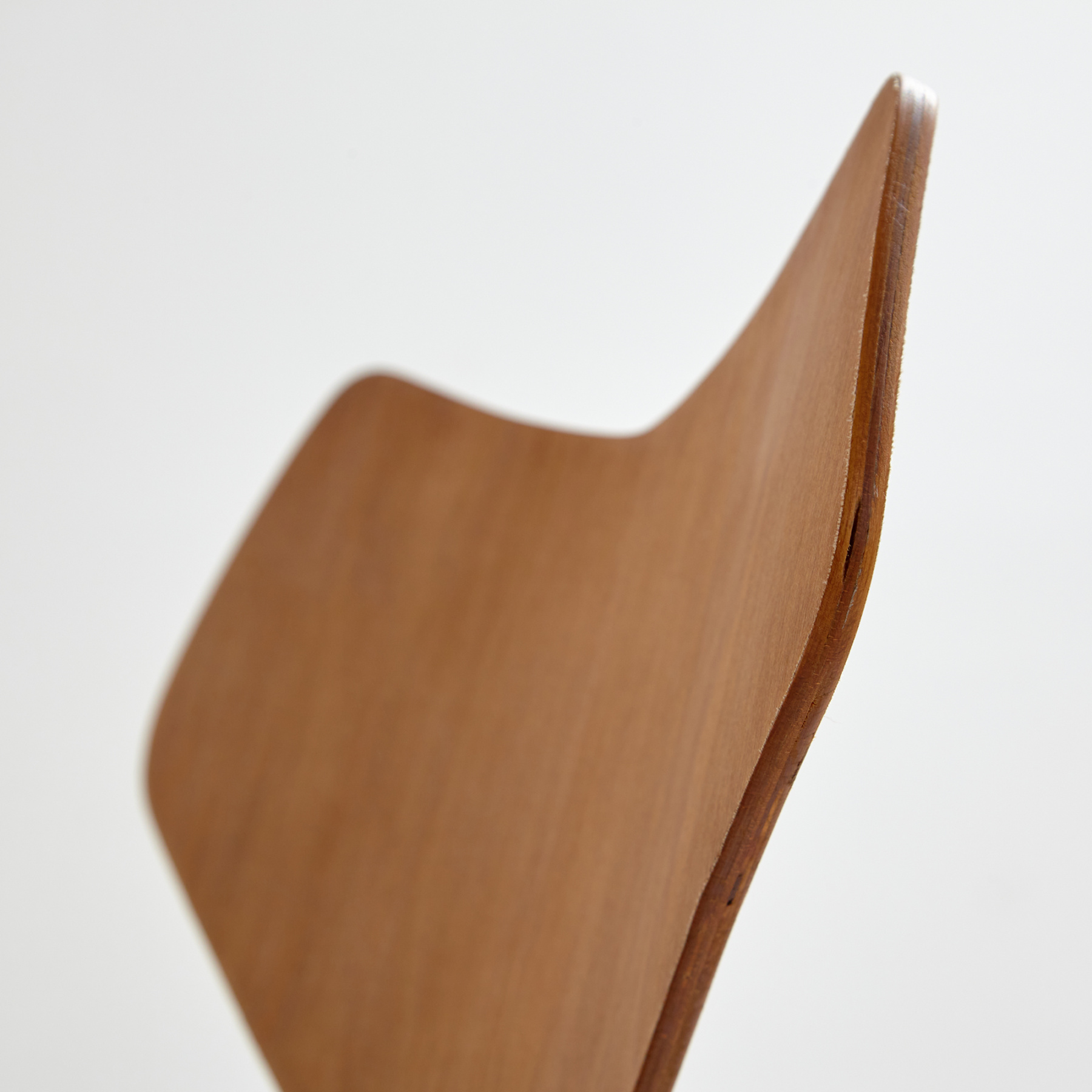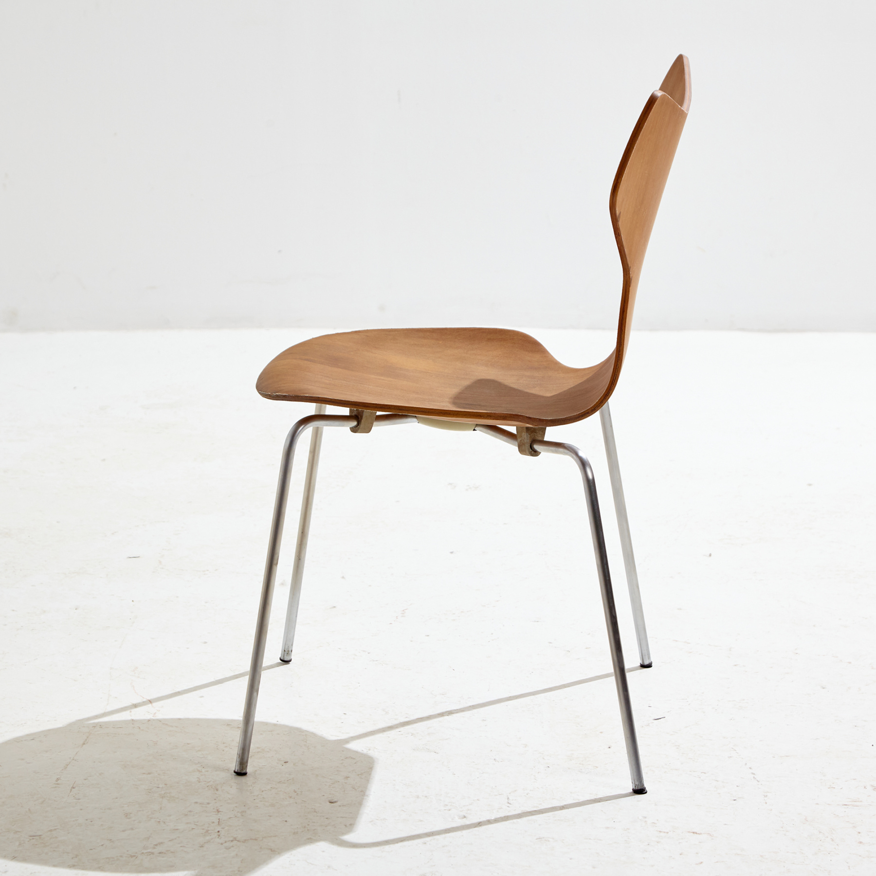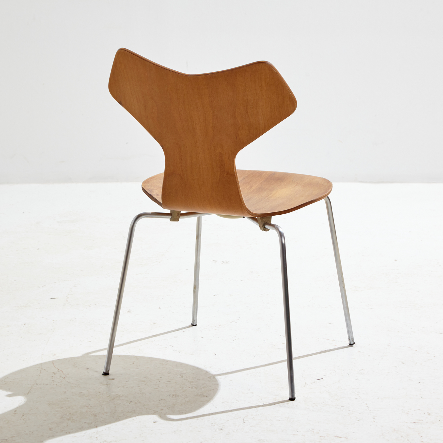 Iconic Grand Prix 3130 chair from the 1970s, designed by Arne Jacobsen and produced by Fritz Hansen. Beech plywood seat and backrest on steel legs. The wooden parts and steel legs of the chair have been completely restored!