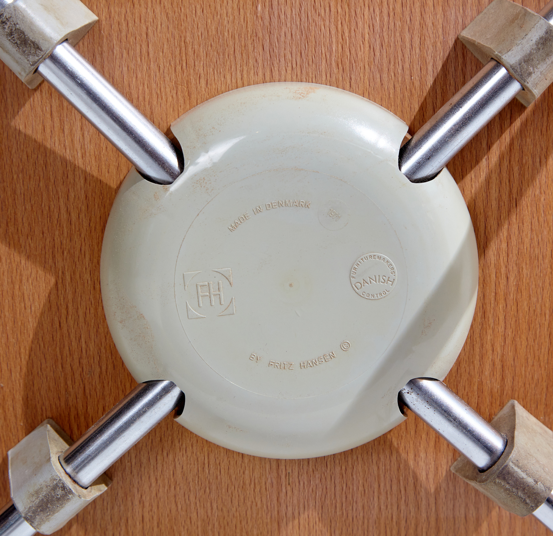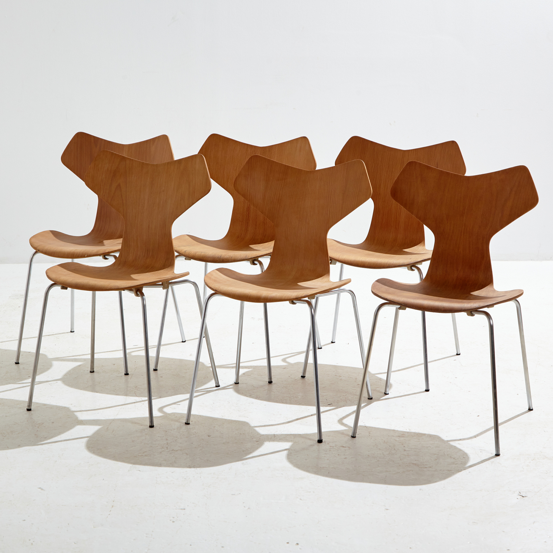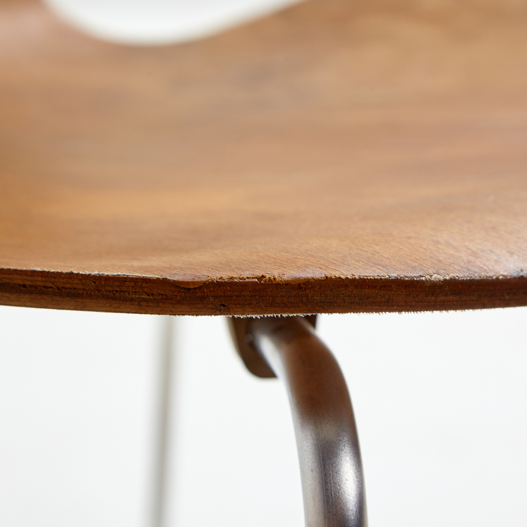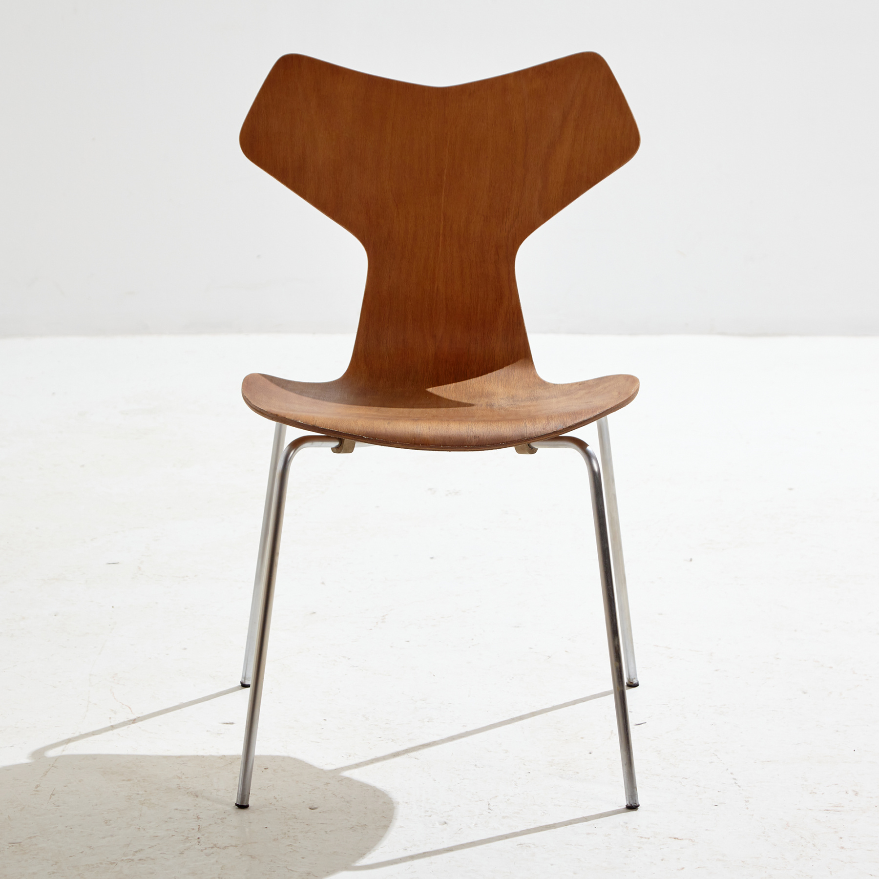 Iconic Grand Prix 3130 chair from the 1970s, designed by Arne Jacobsen and produced by Fritz Hansen. Beech plywood seat and backrest on steel legs. The wooden parts and steel legs of the chair have been completely restored!
