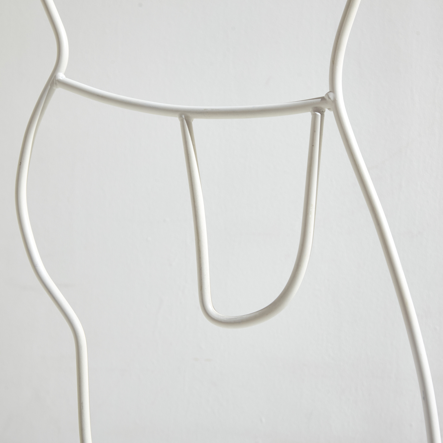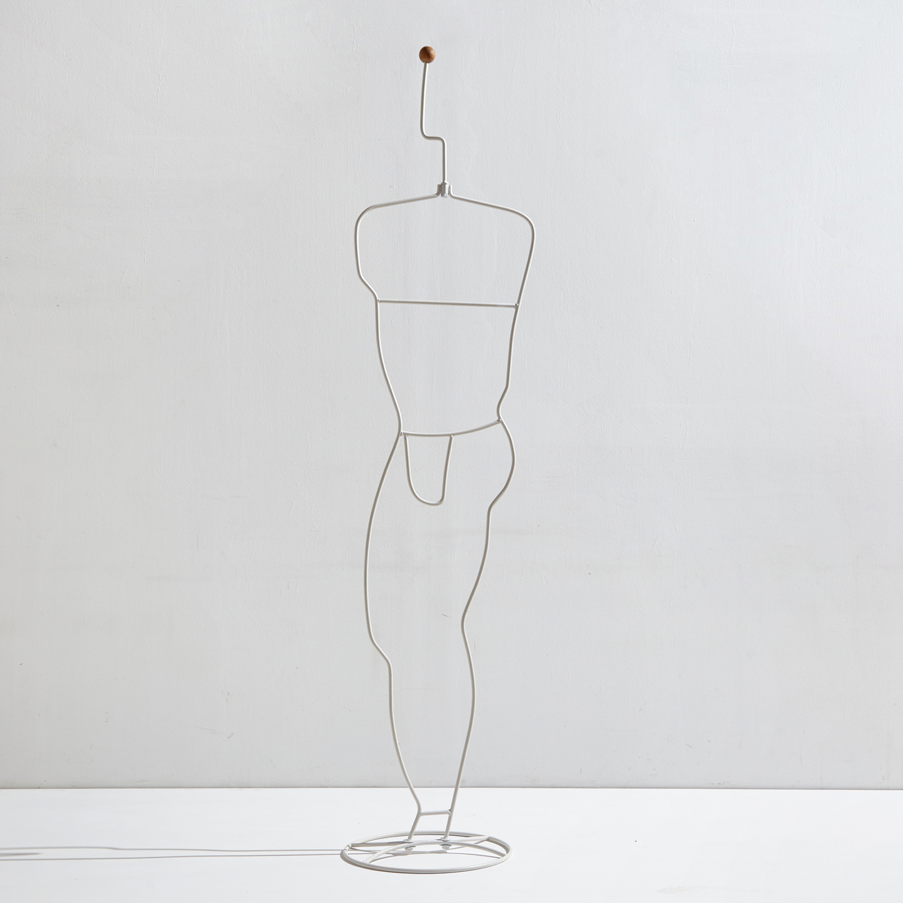 ‘Häpen’ steel wire valet stand, designed by Ehlén Johansson and produced by IKEA in the 1980s. With small surface scratches, wear and rust on the steel body.