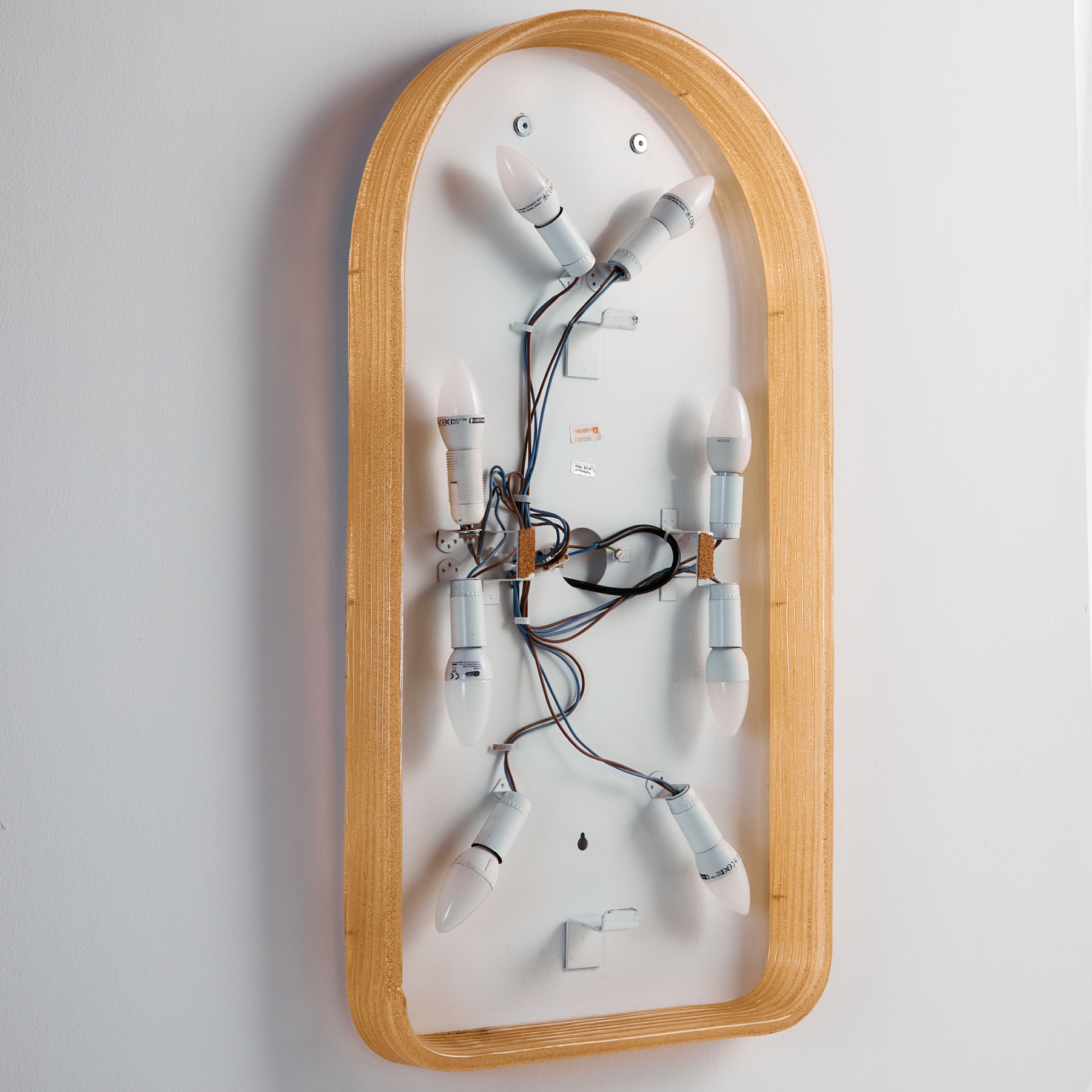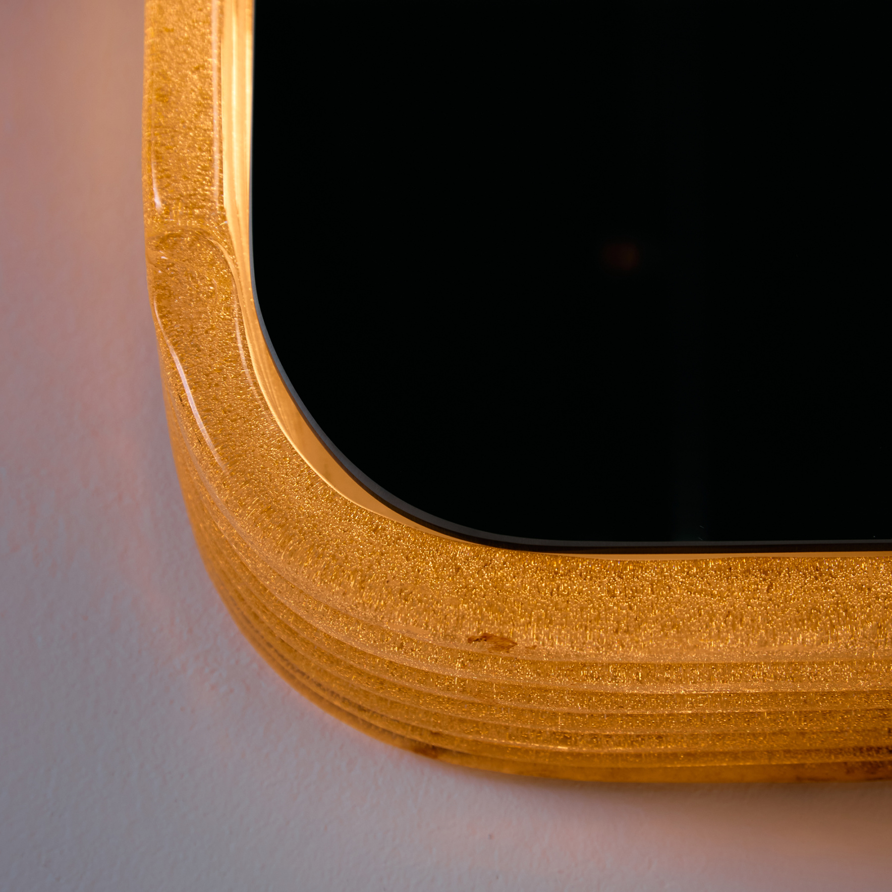 German Hillebrand mirror with plastic frame from the 1960s. The mirror has an illuminated frame and eight sockets inside. In addition to its charming light, it can be an exciting element of any space. With some surface scratches and wear, but in good vintage condition. There is a small dot-like flaw on the mirror.