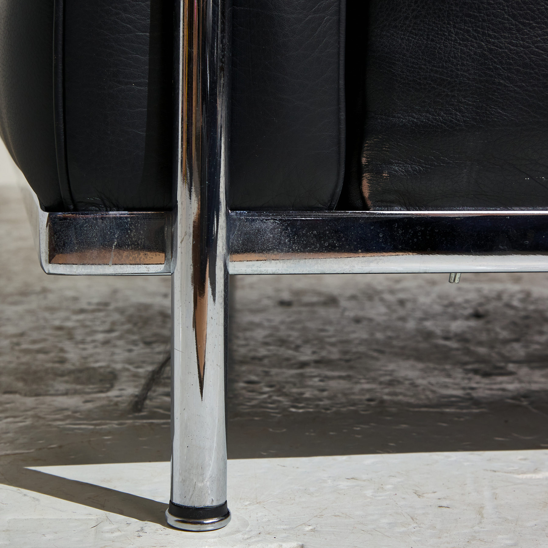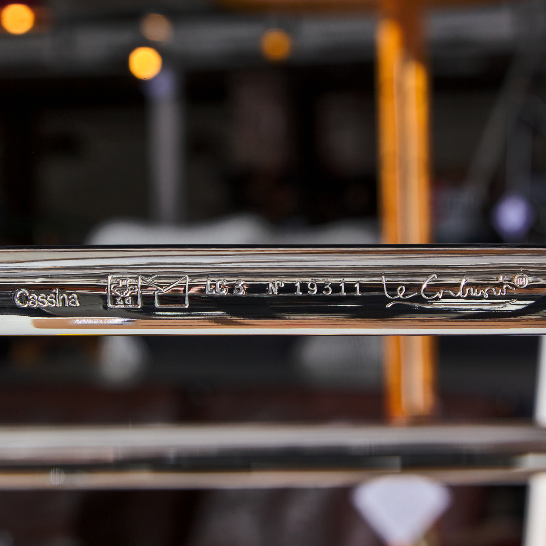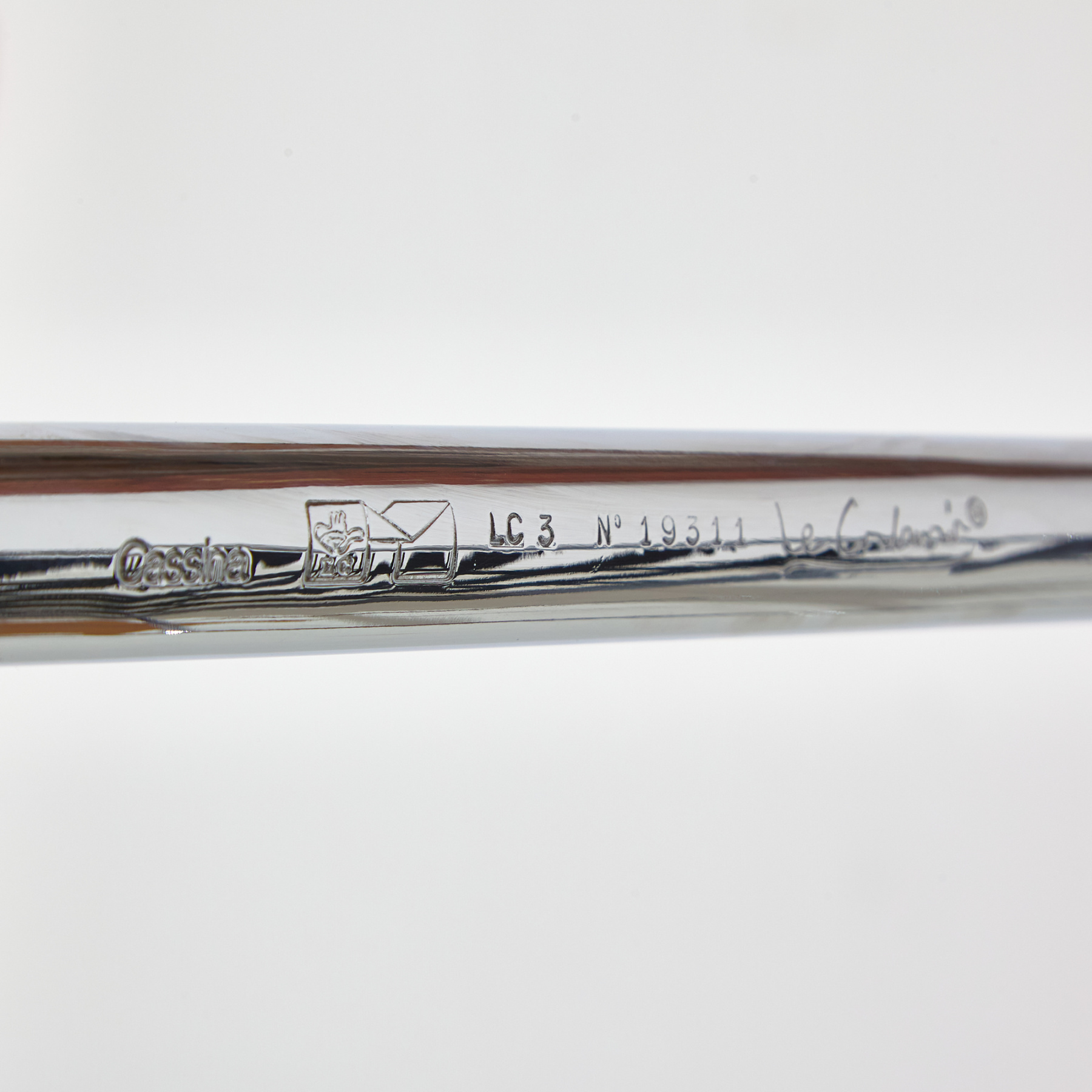 Iconic ‘LC3’ leather armchair from the 2000s, produced by Cassina. With several surface scratches and wear on the leather and steel parts. The steel surface of the armchair is oxidised. In good vintage condition with some signs of use.