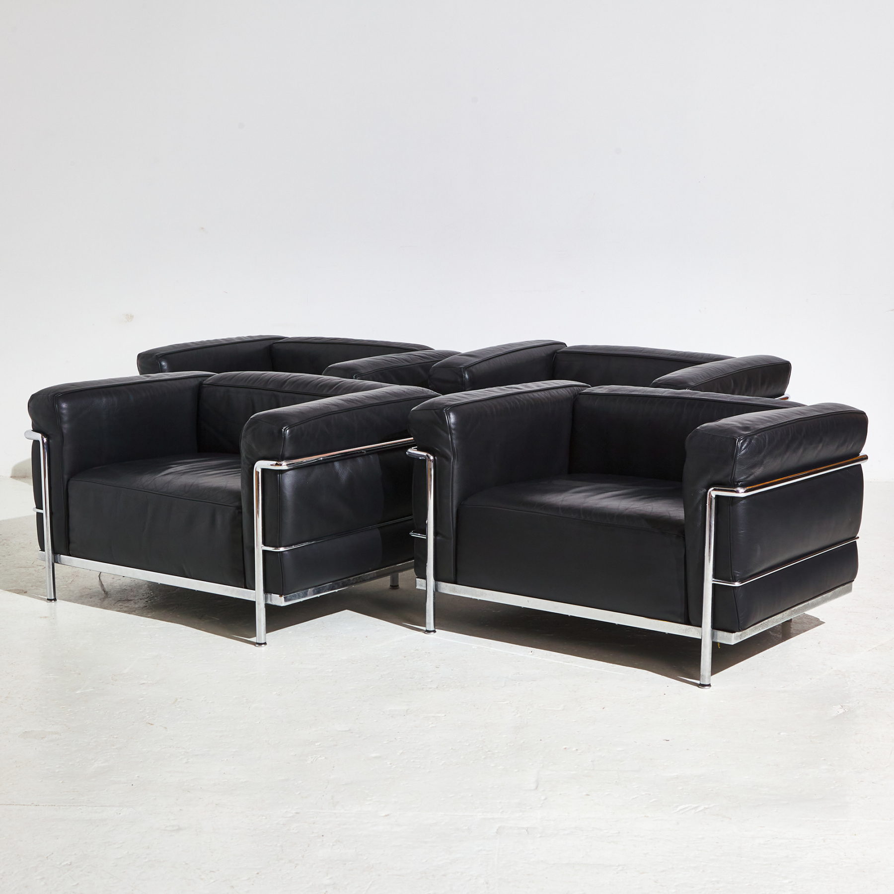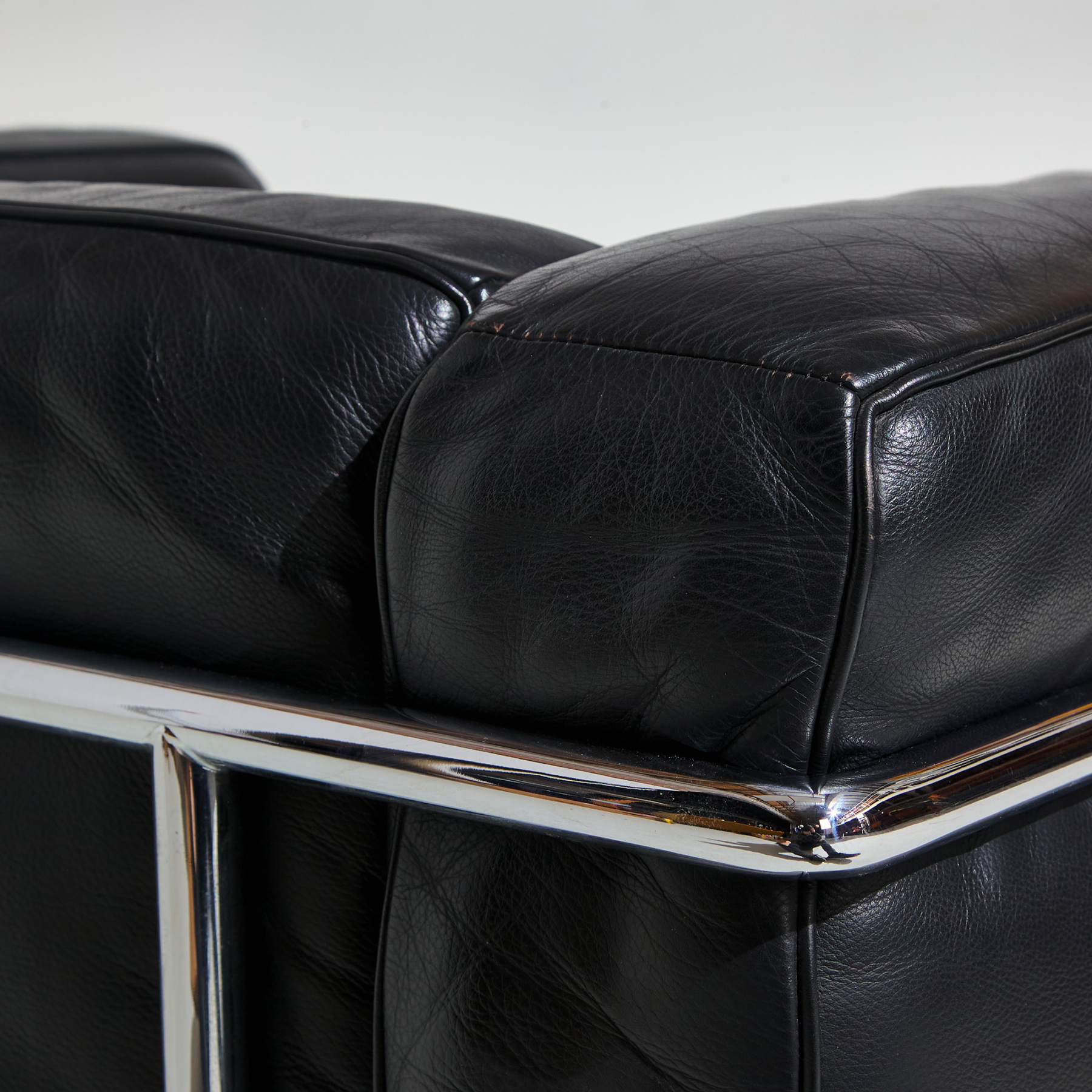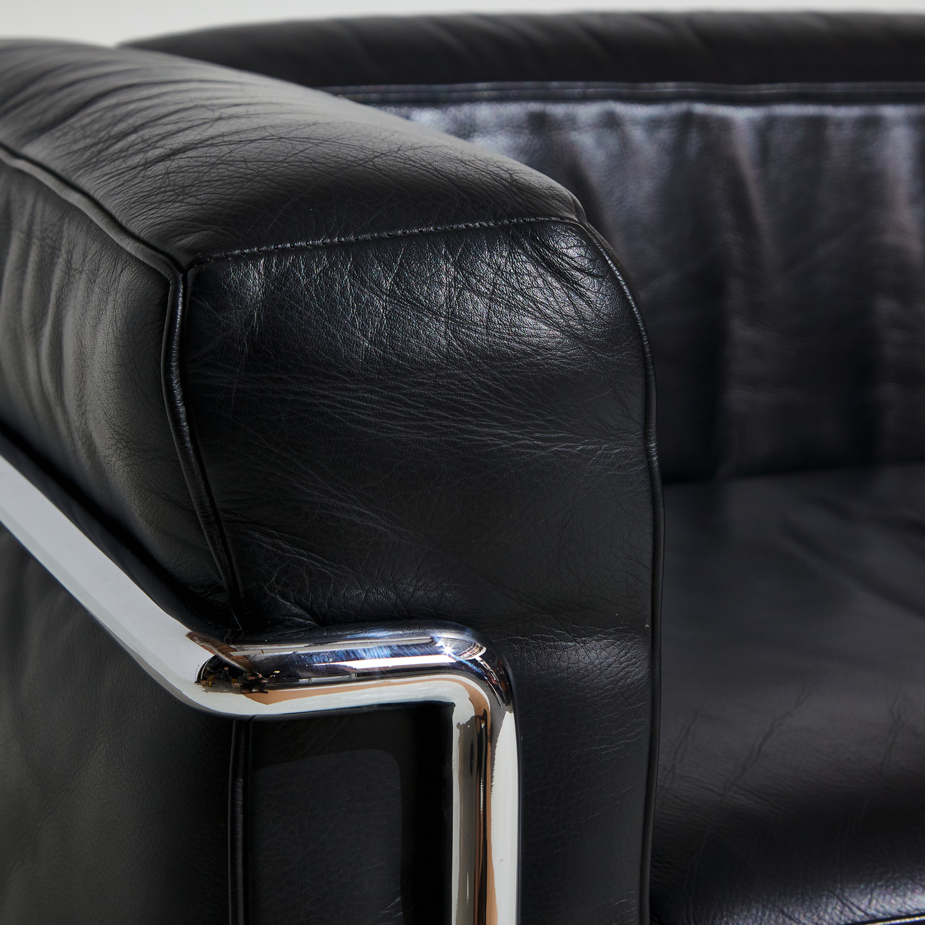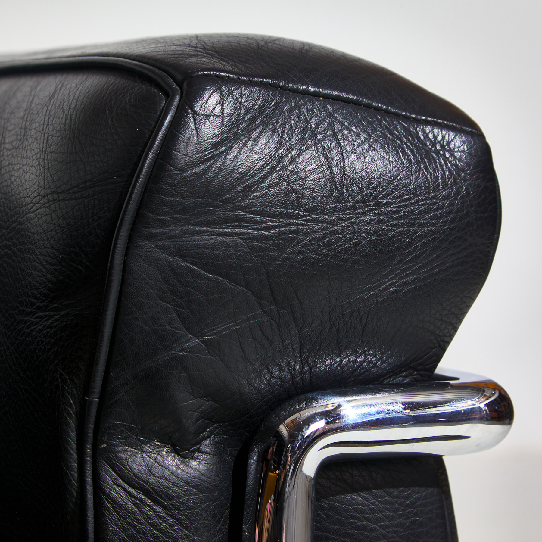 Iconic ‘LC3’ leather armchair from the 2000s, produced by Cassina. With several surface scratches and wear on the leather and steel parts. The steel surface of the armchair is oxidised. In good vintage condition with some signs of use.