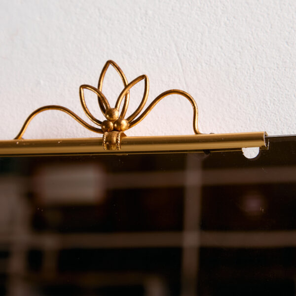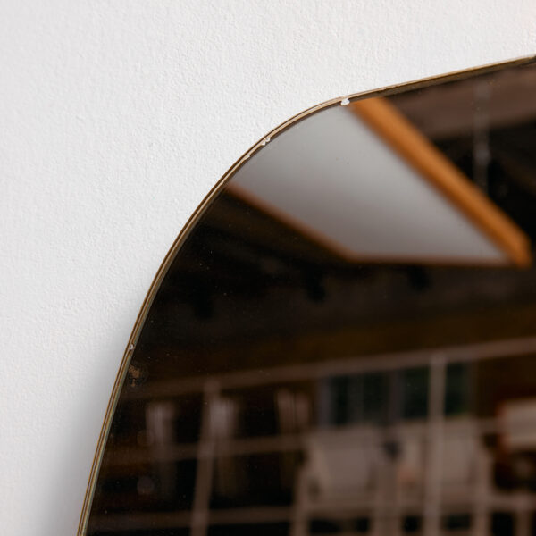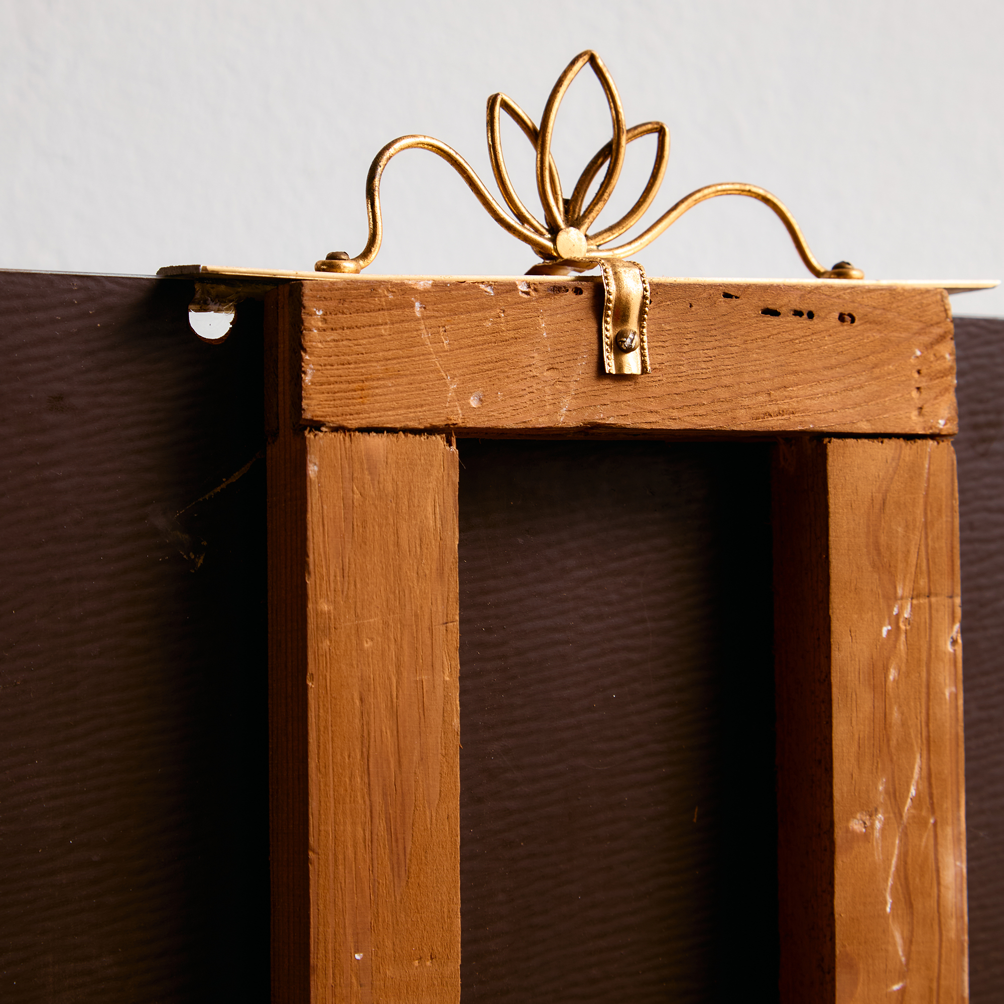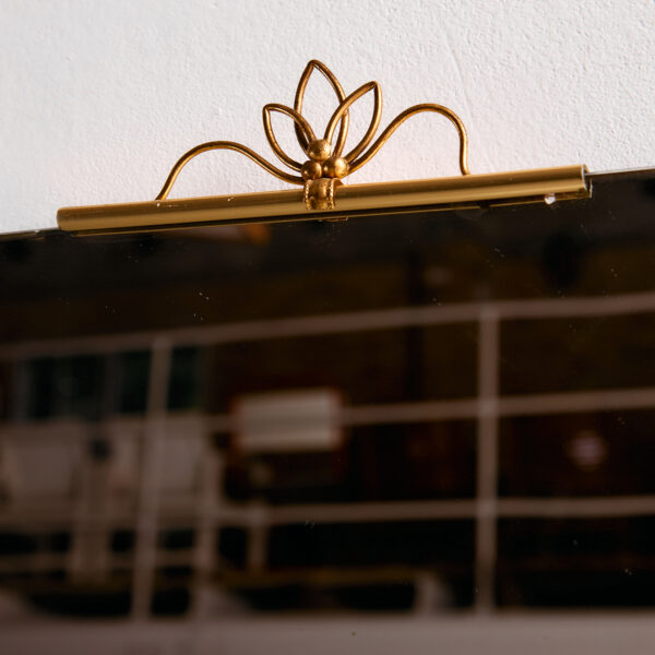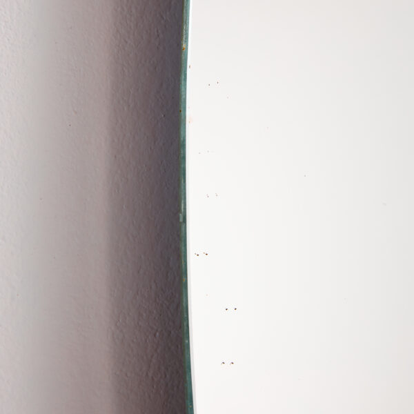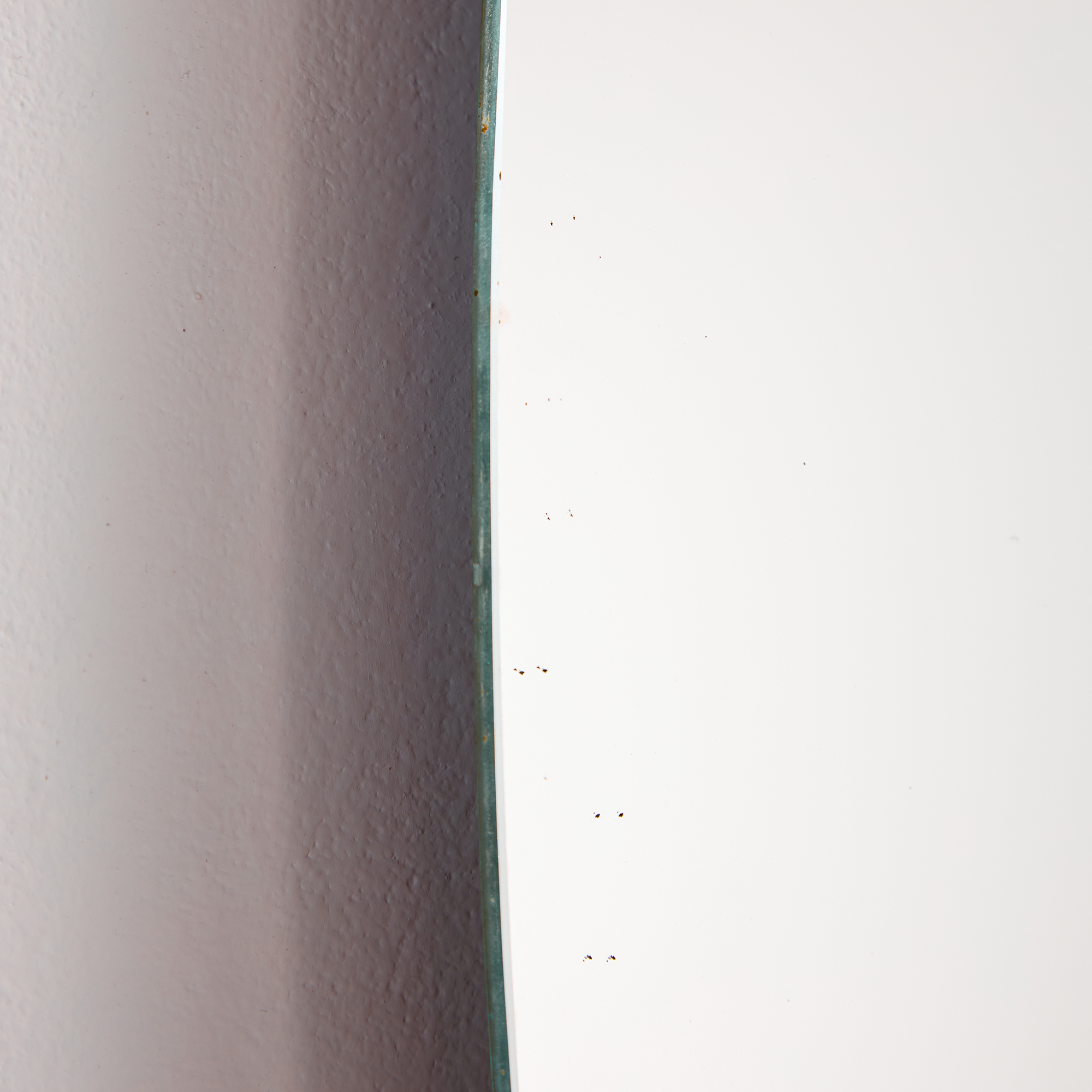 Classic-lined longish mirror from the 1960s. With some surface scratches, stains and wear on the metal and mirror parts. The metal surface is oxidised.