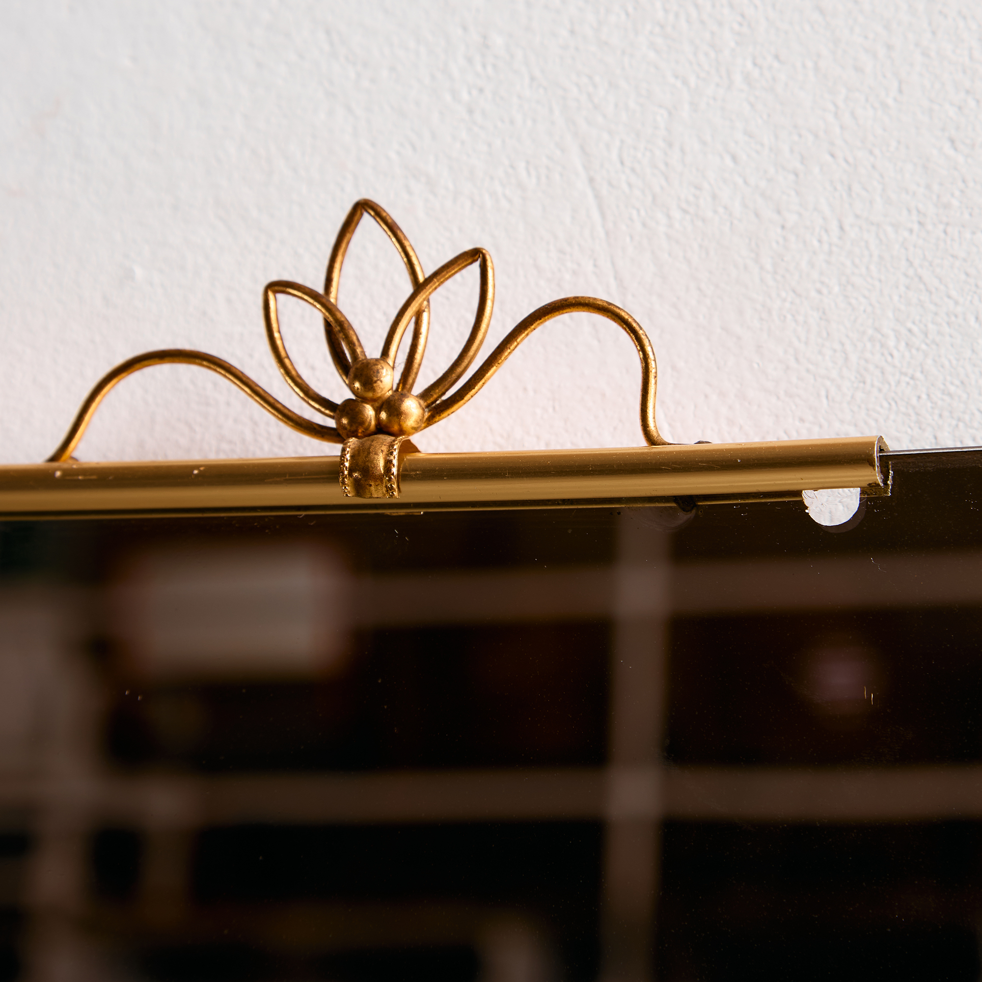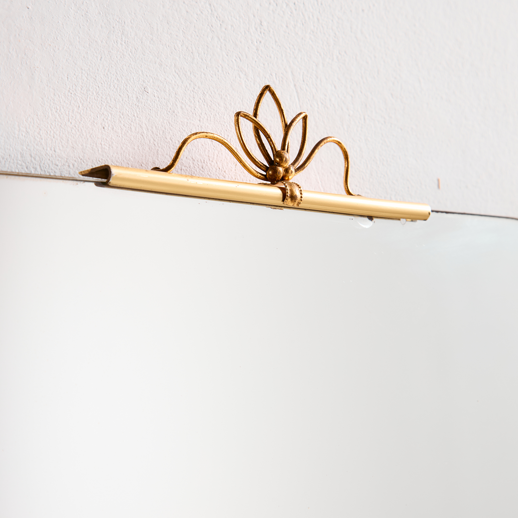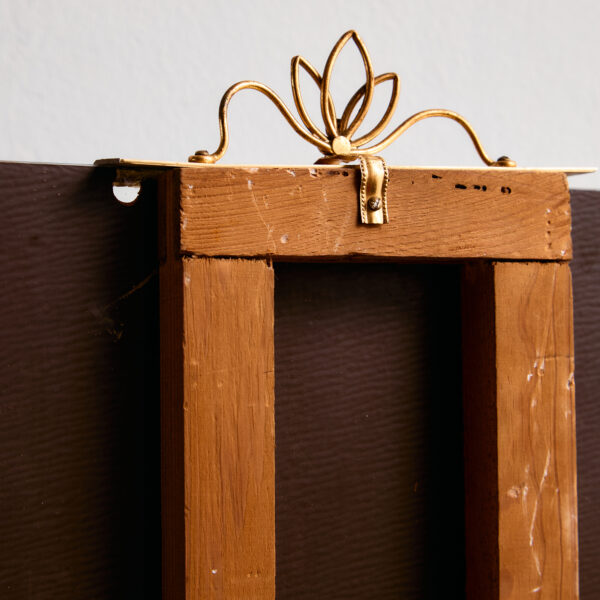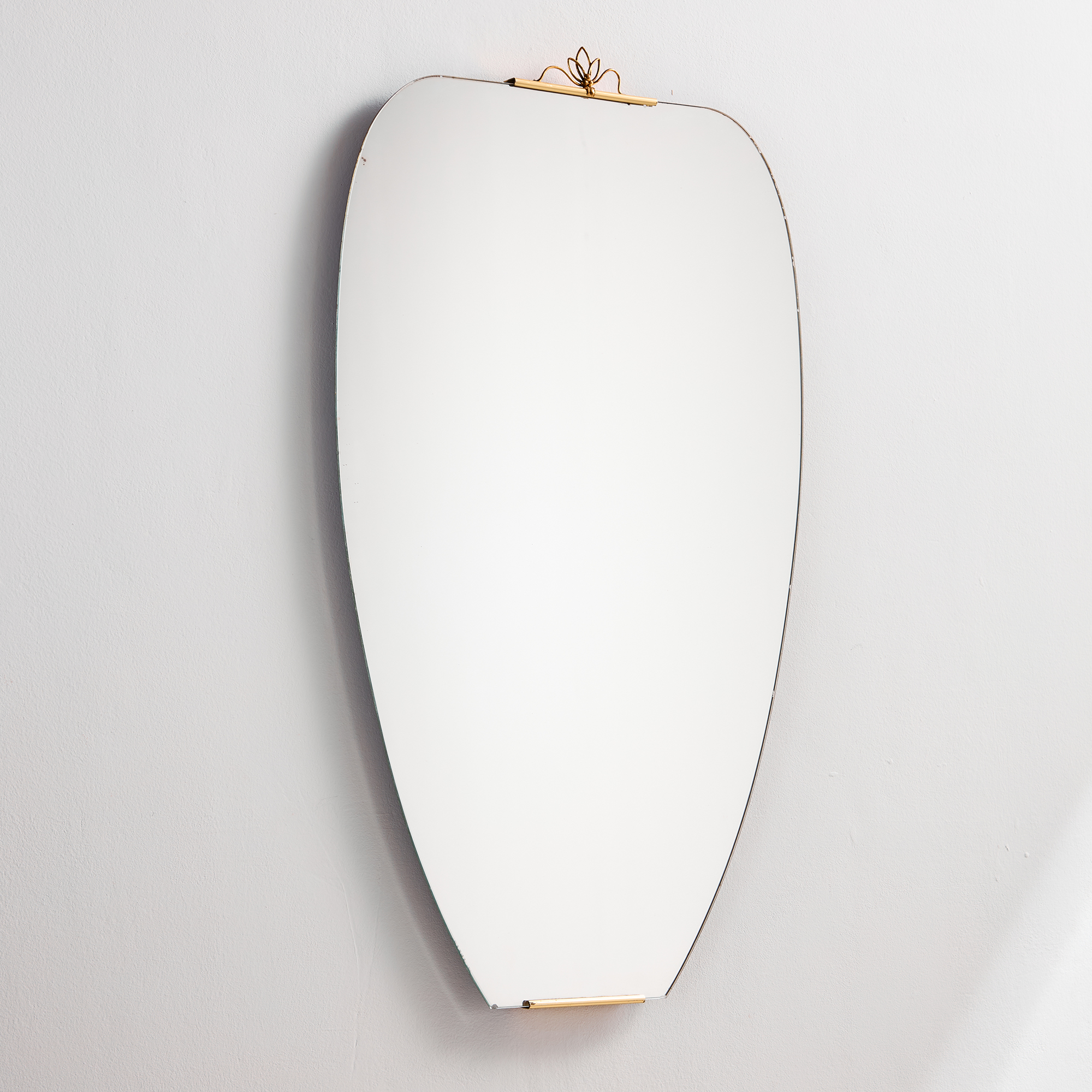 Classic-lined longish mirror from the 1960s. With some surface scratches, stains and wear on the metal and mirror parts. The metal surface is oxidised.