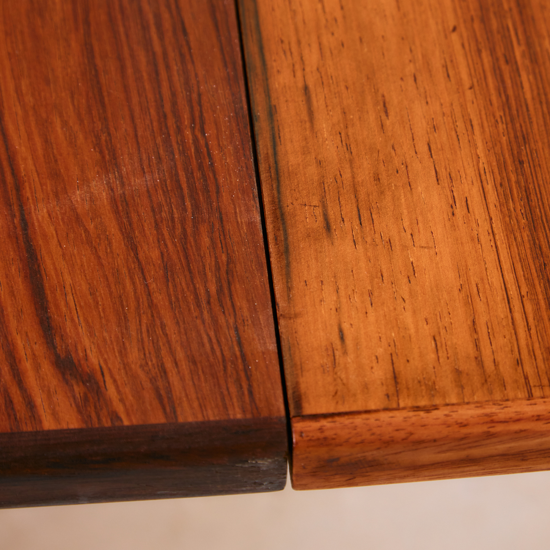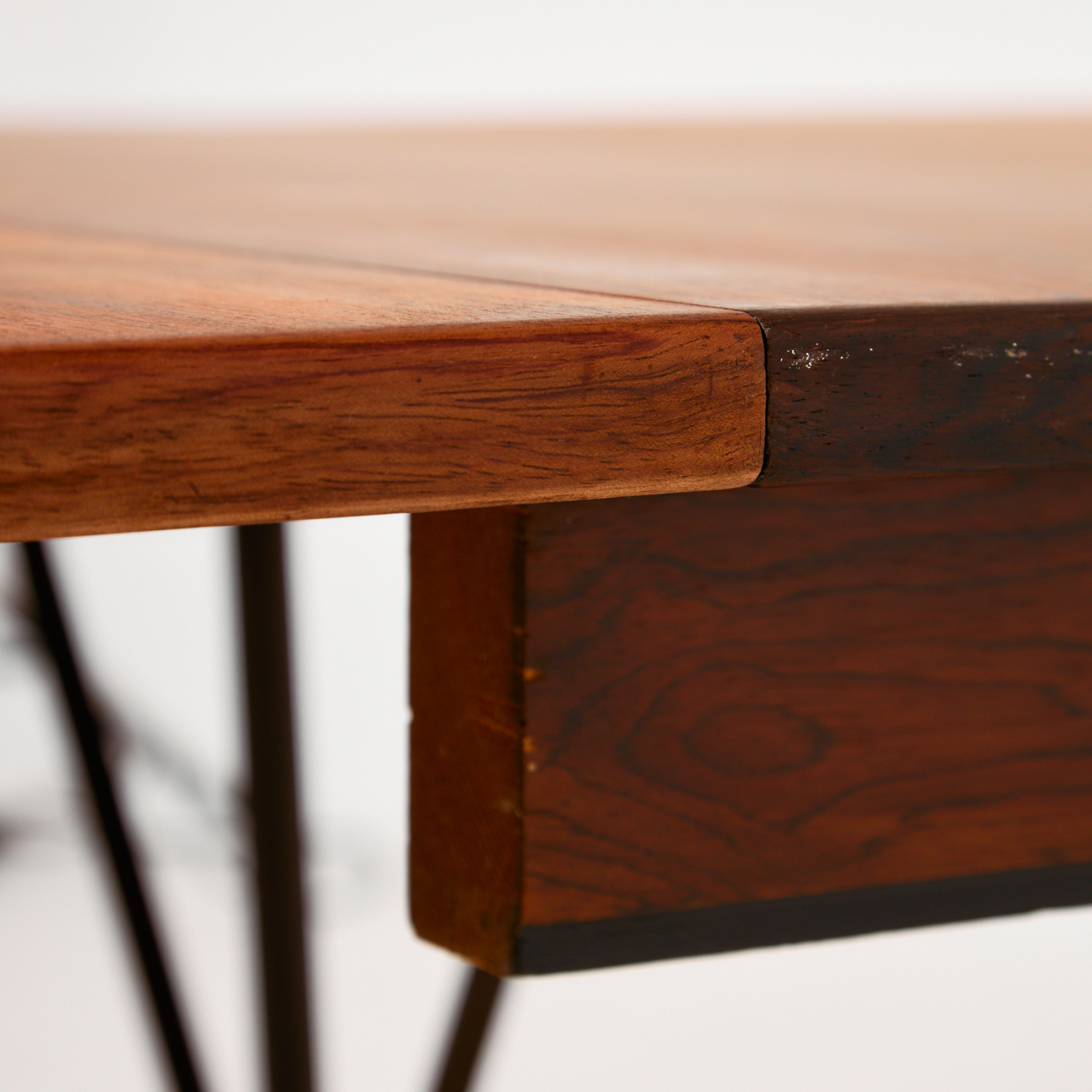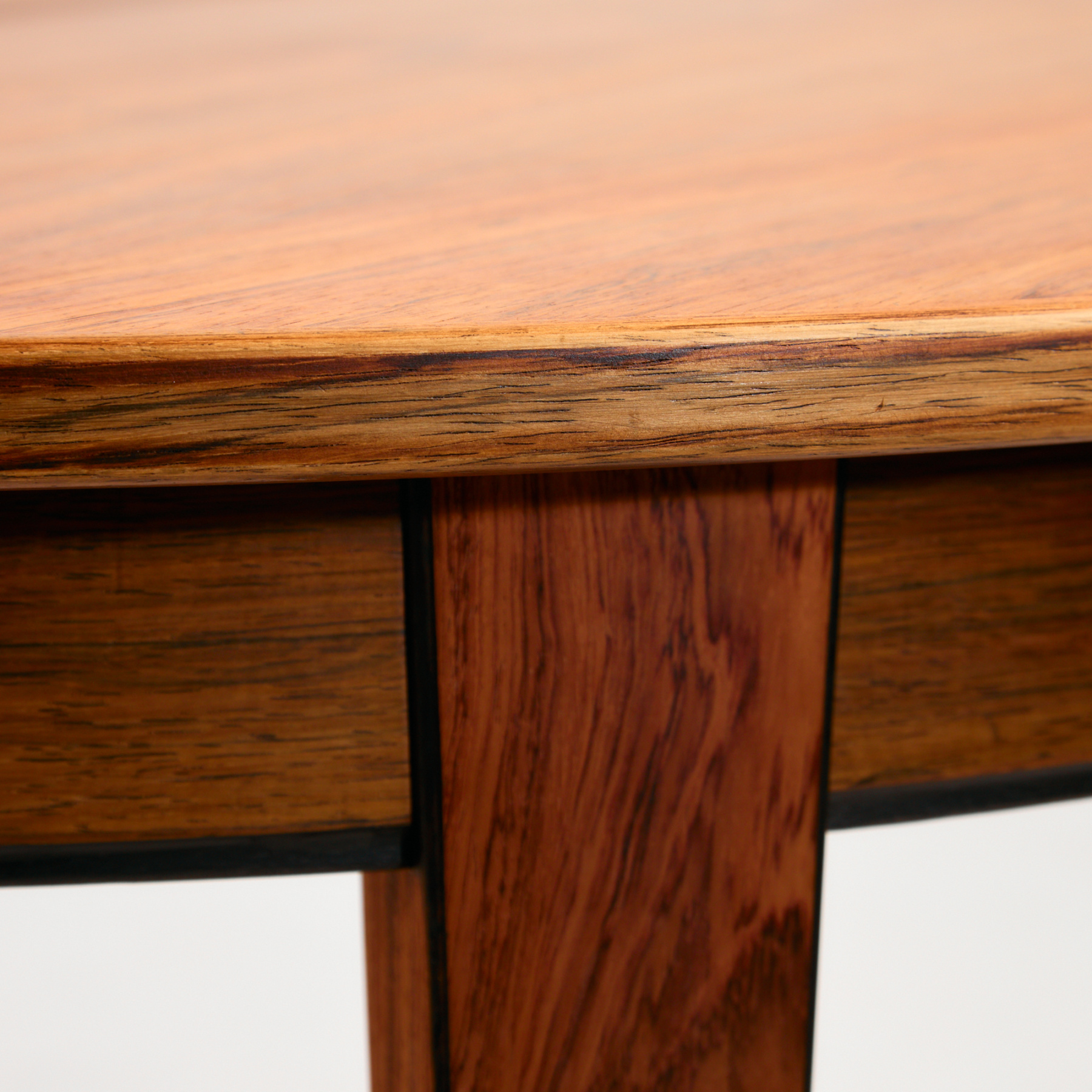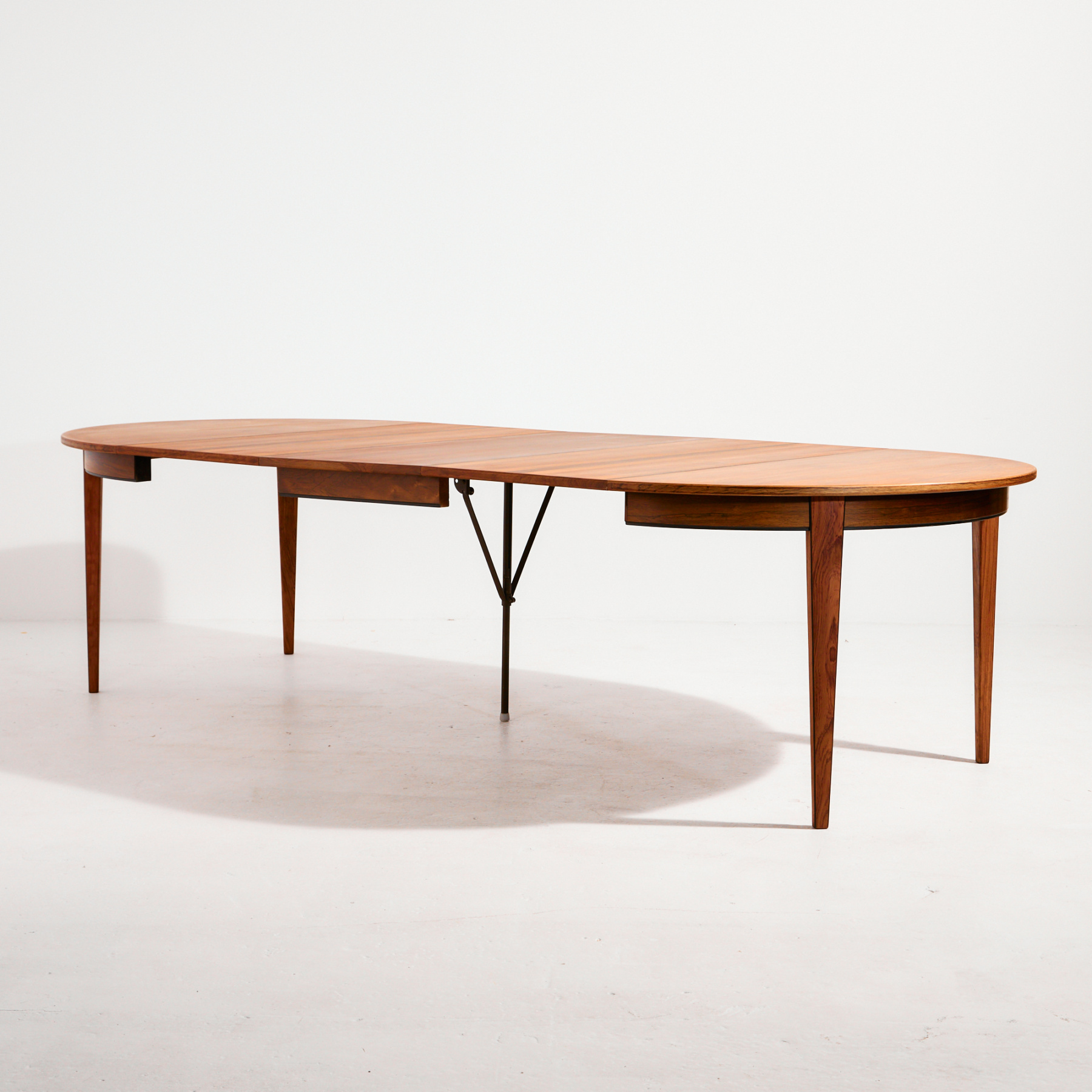 The ‘Model 55’ rosewood dining table with three extension pieces designed by Gunni Omann for Omann Jun in the 1960s. The table has exciting details that reflect the spirit of Danish design. The wooden parts of the table have been completely restored.