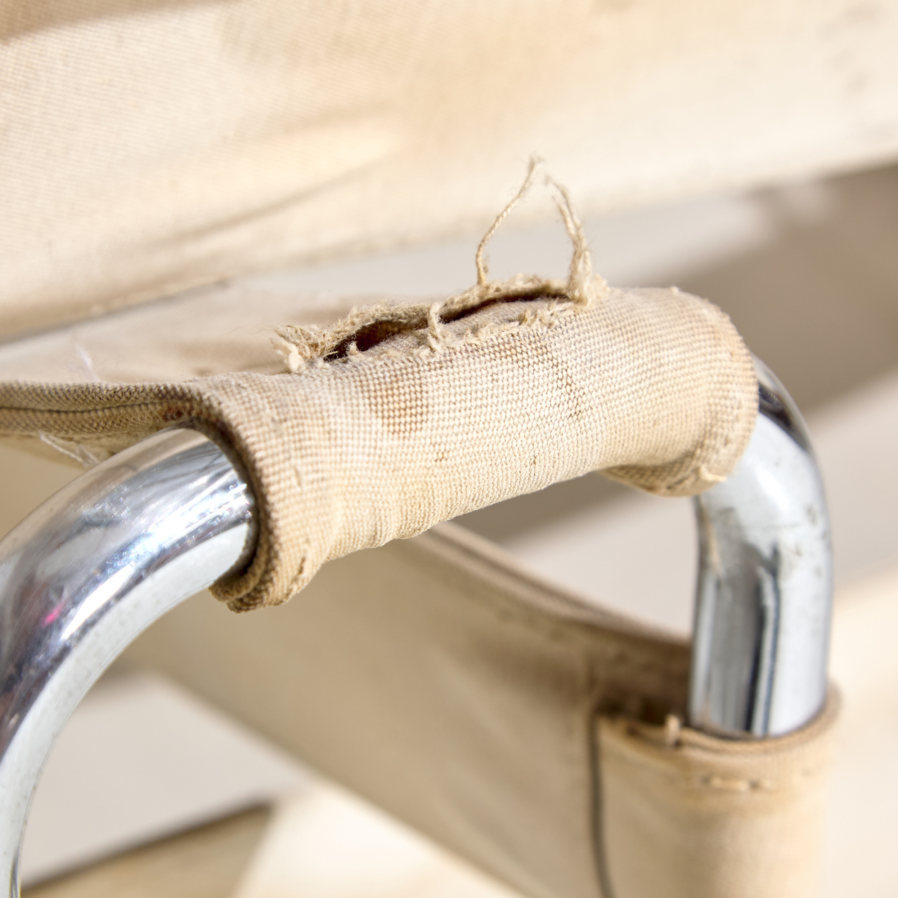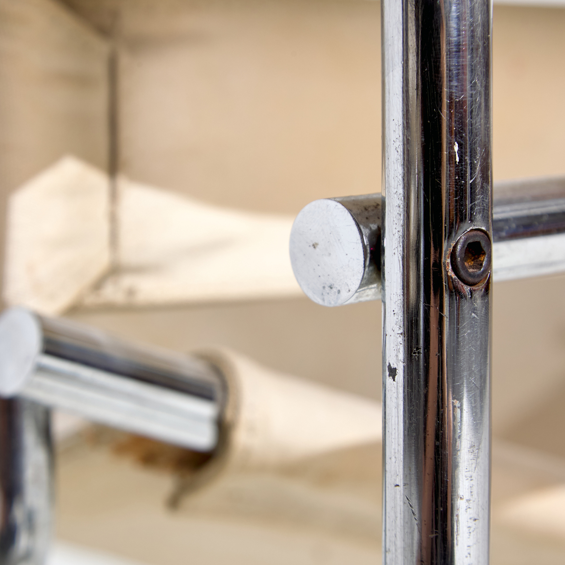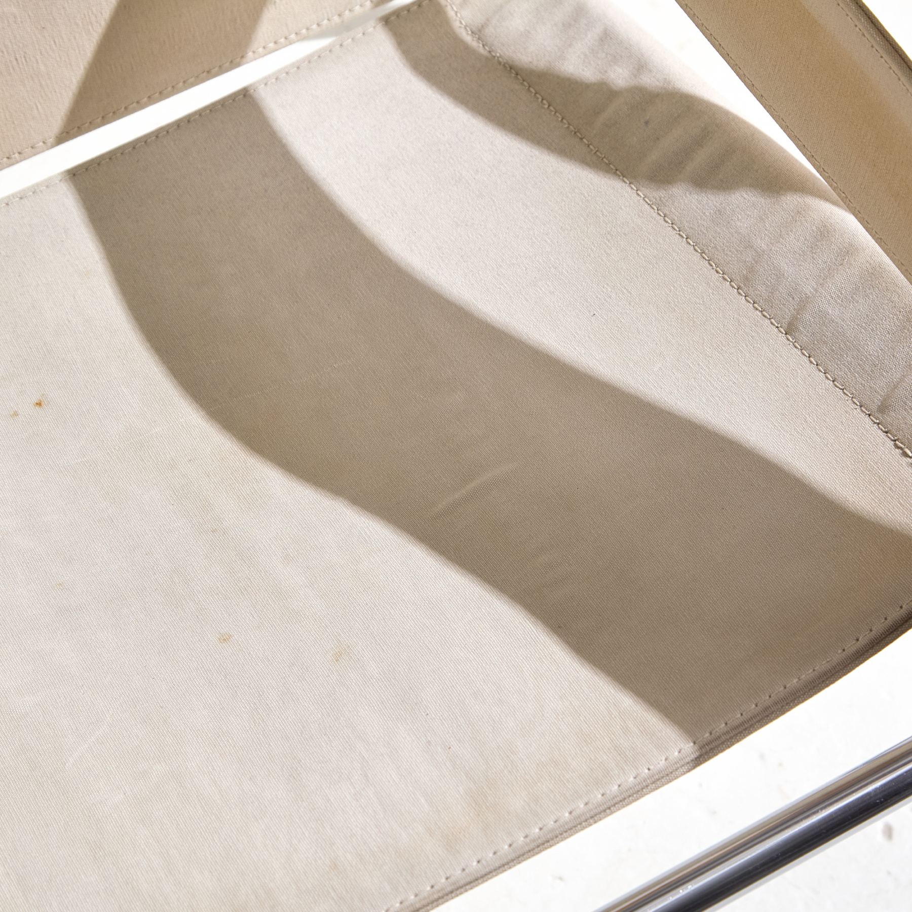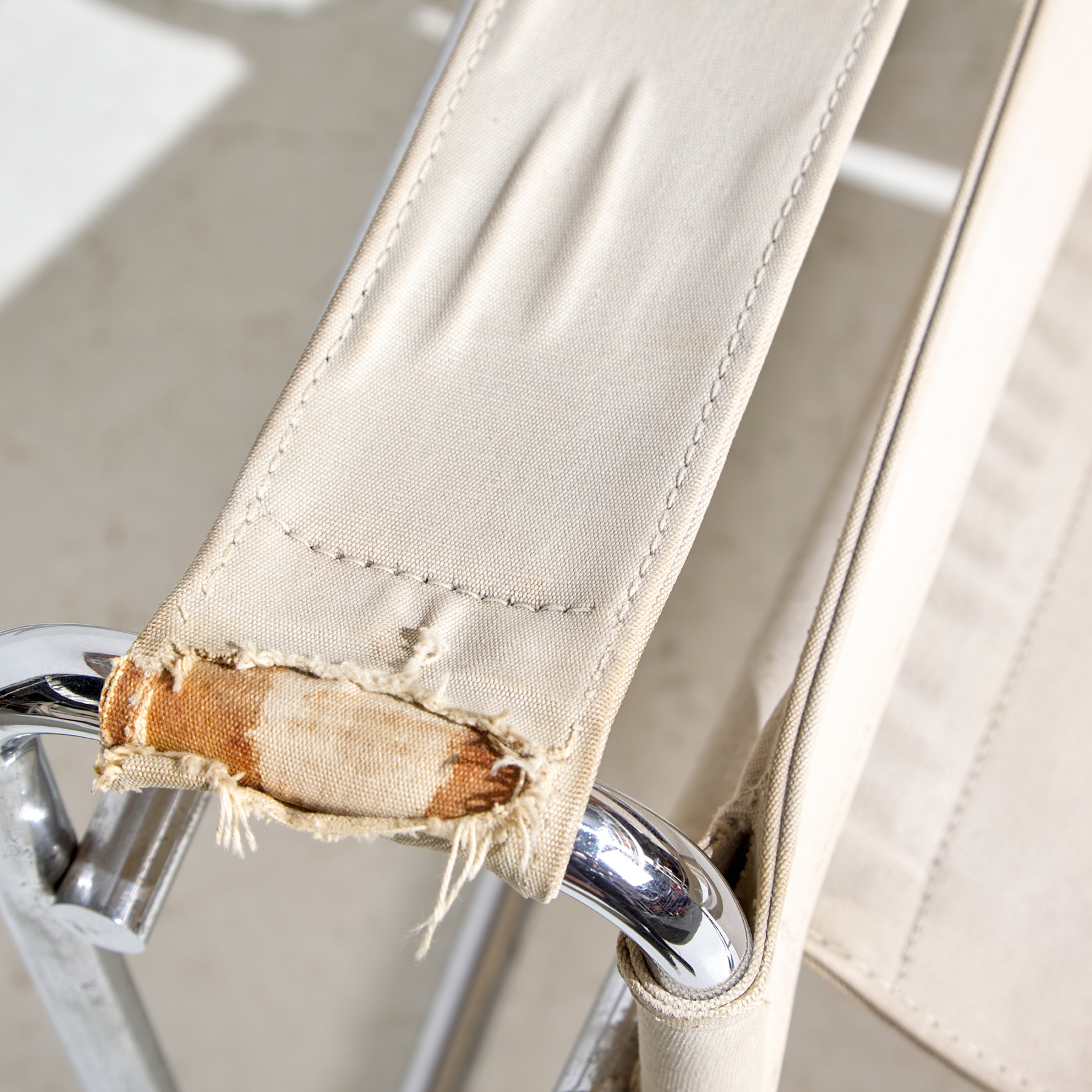 Iconic ‘Model B3 / Wassily’ chairs from the 1960s, designed by Marcel Breuer and produced by the Italian Gavina. With some scratches, rust and wear on the tubular steel frame and stains and tears on the canvas seat and backrest. In vintage condition with some signs of use.