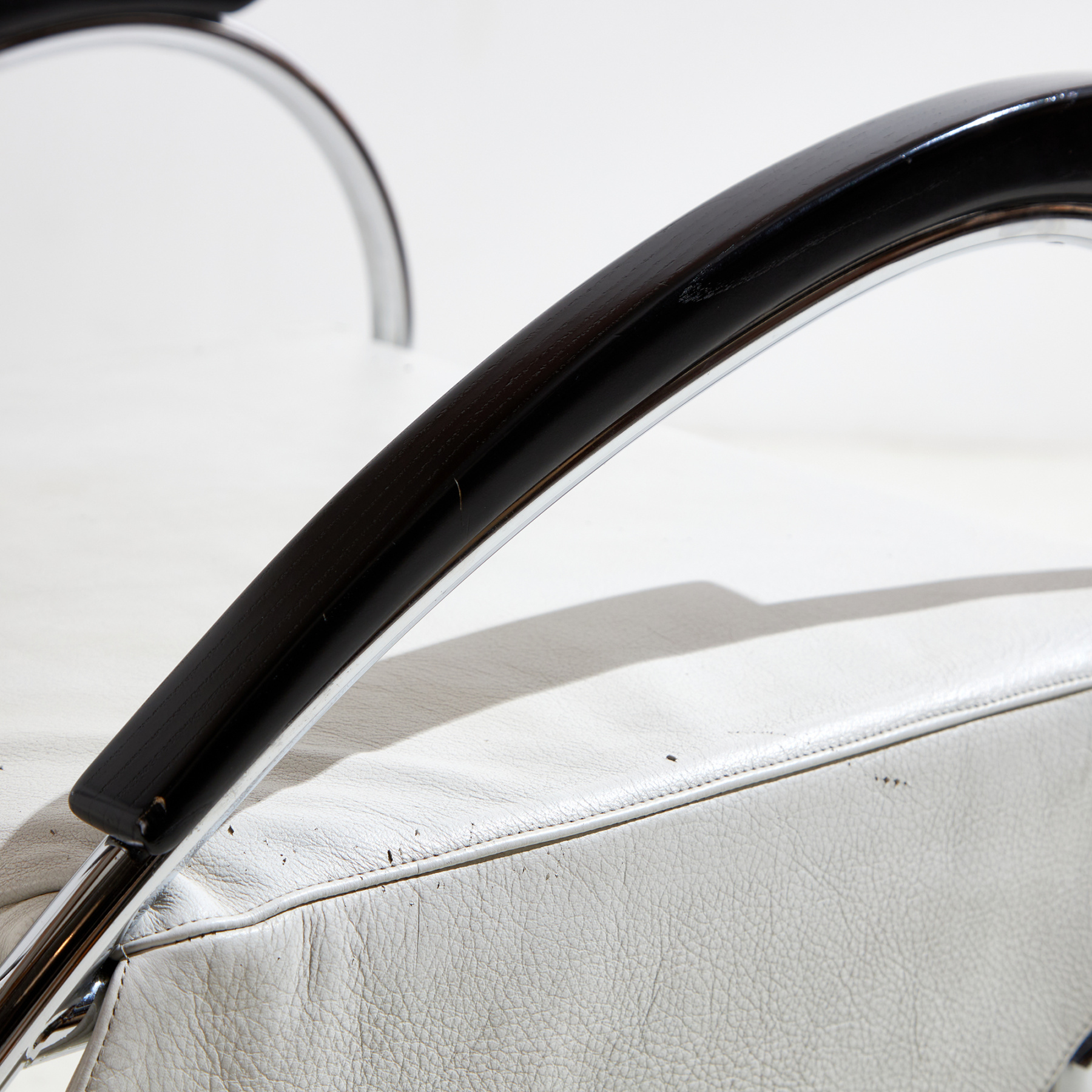 chrome, leather, metal, upholstery, wood