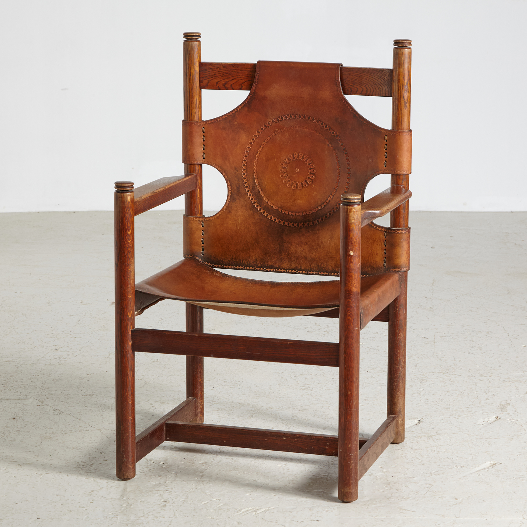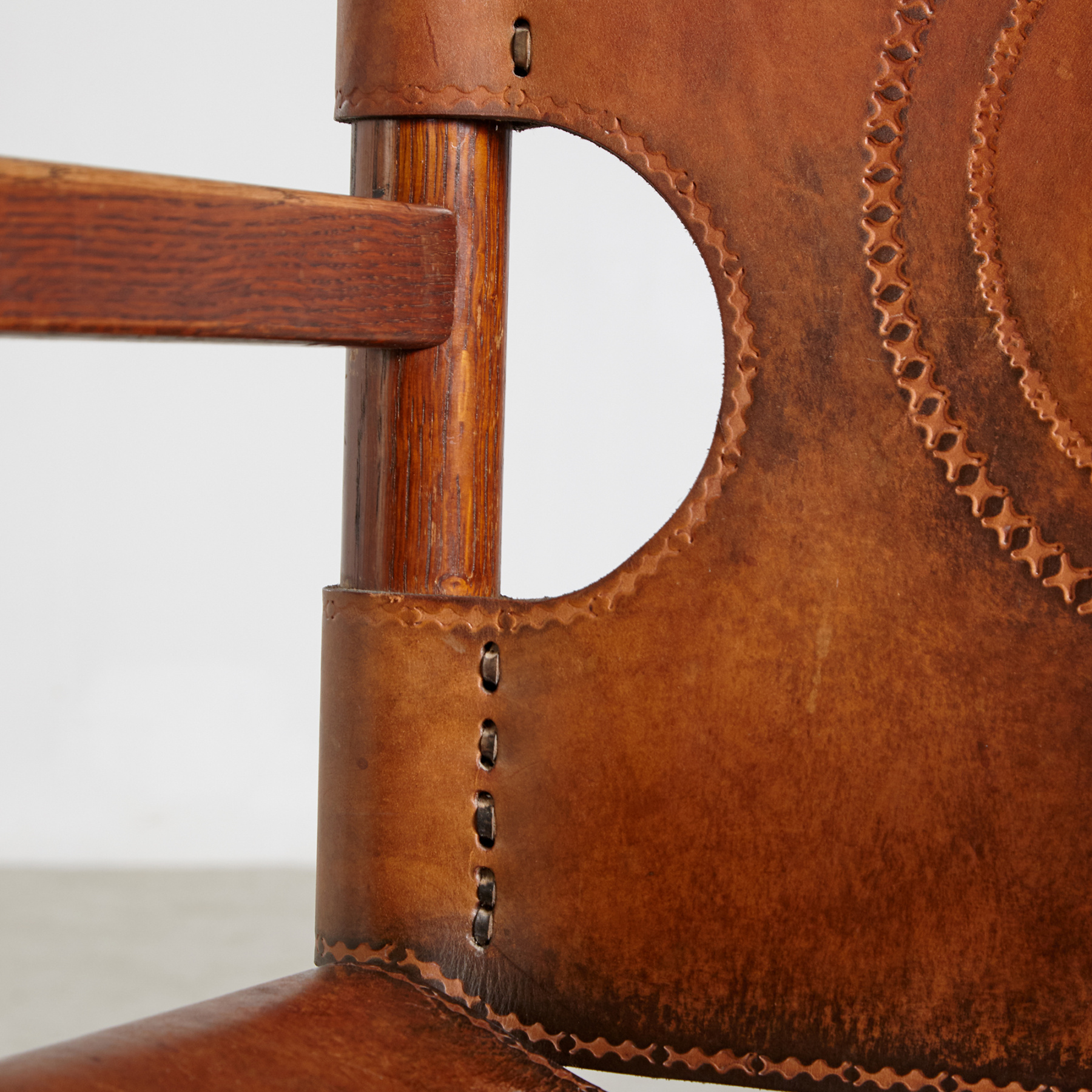 Oak leather lounge chair