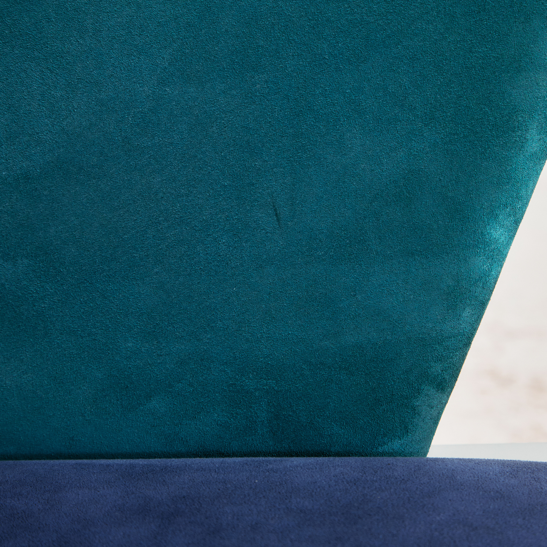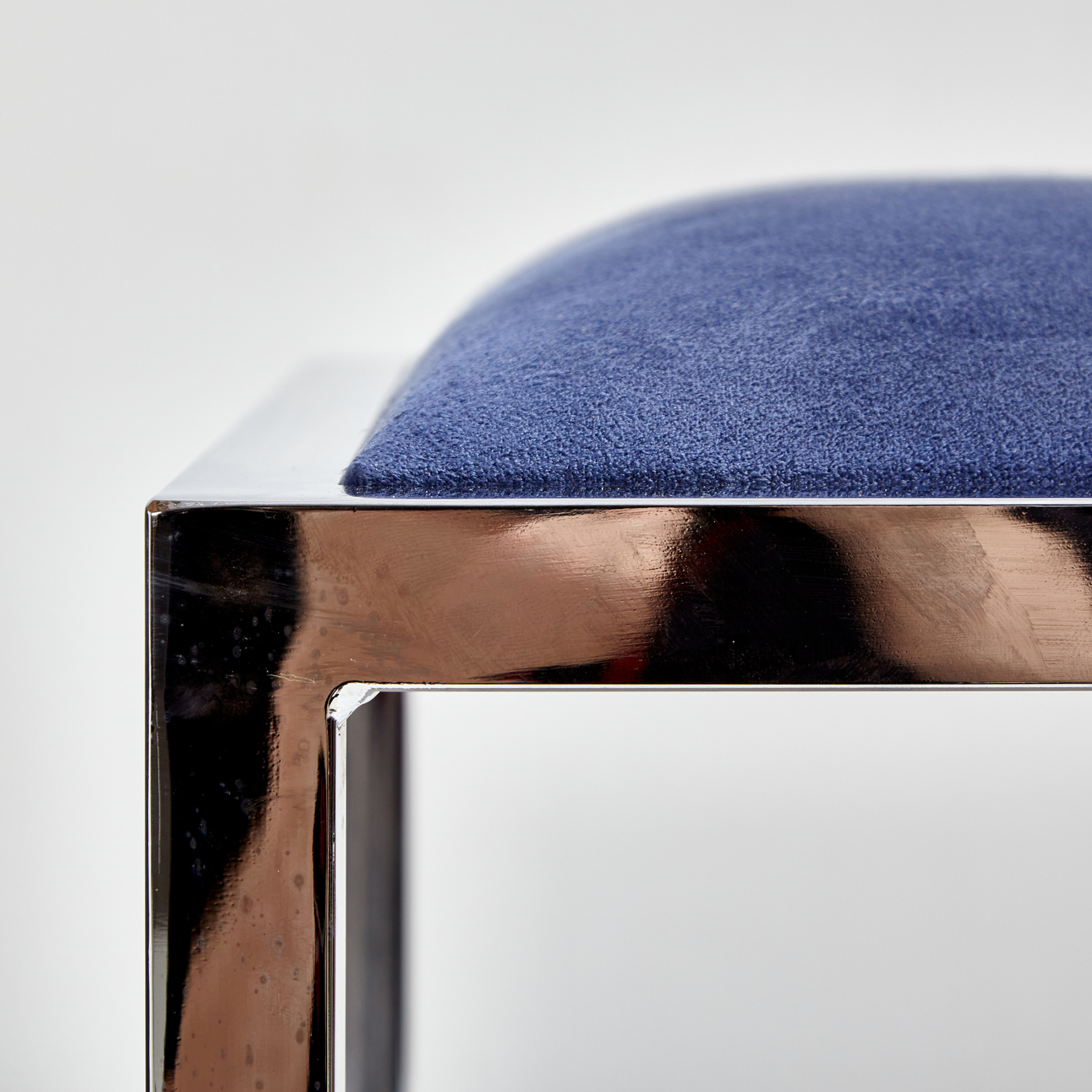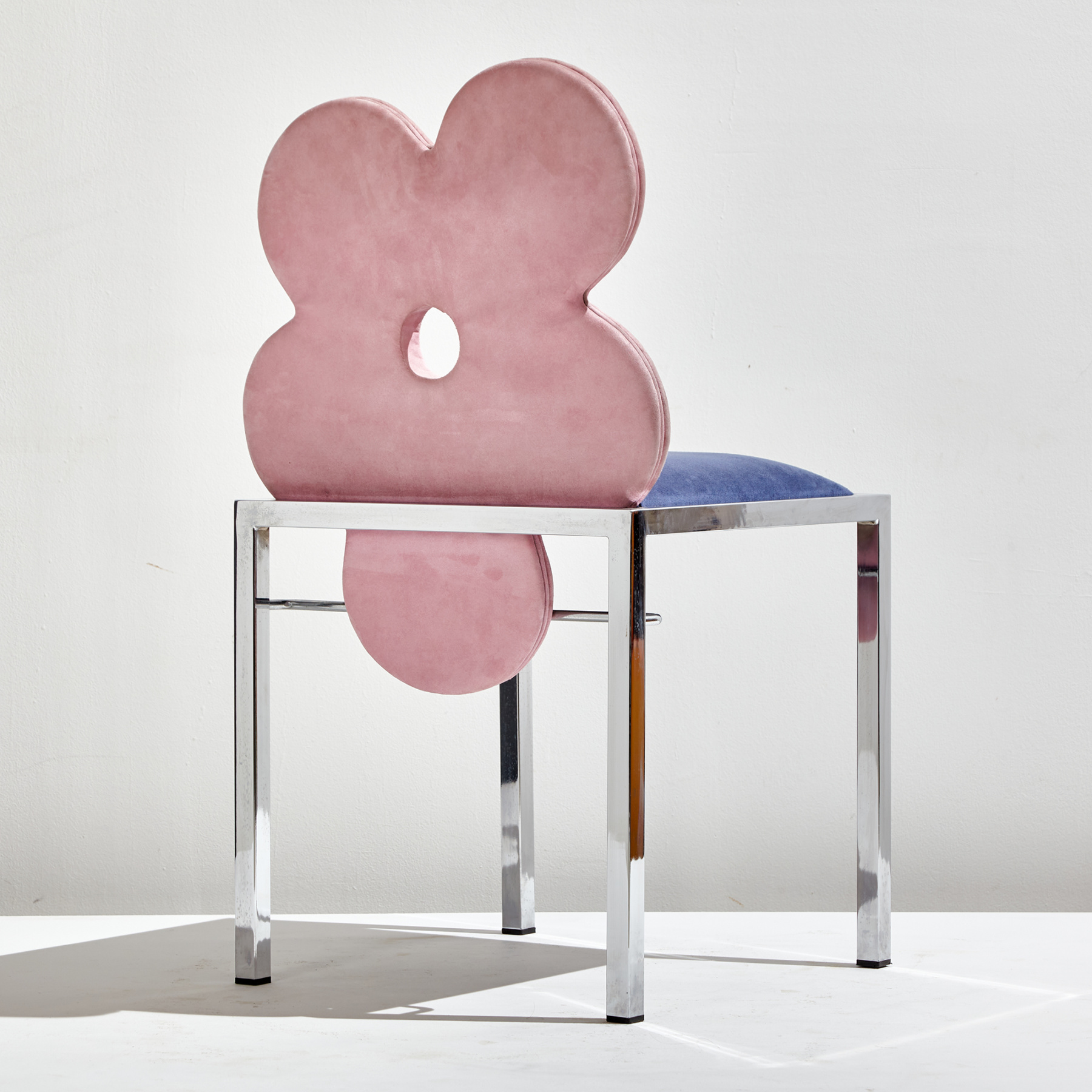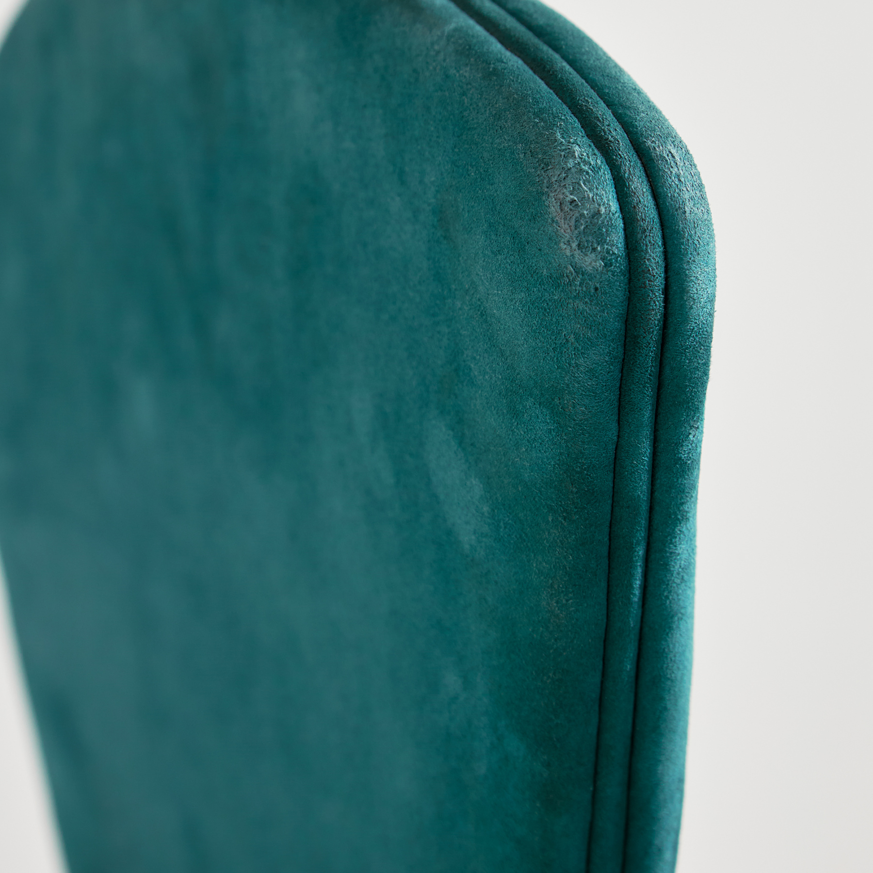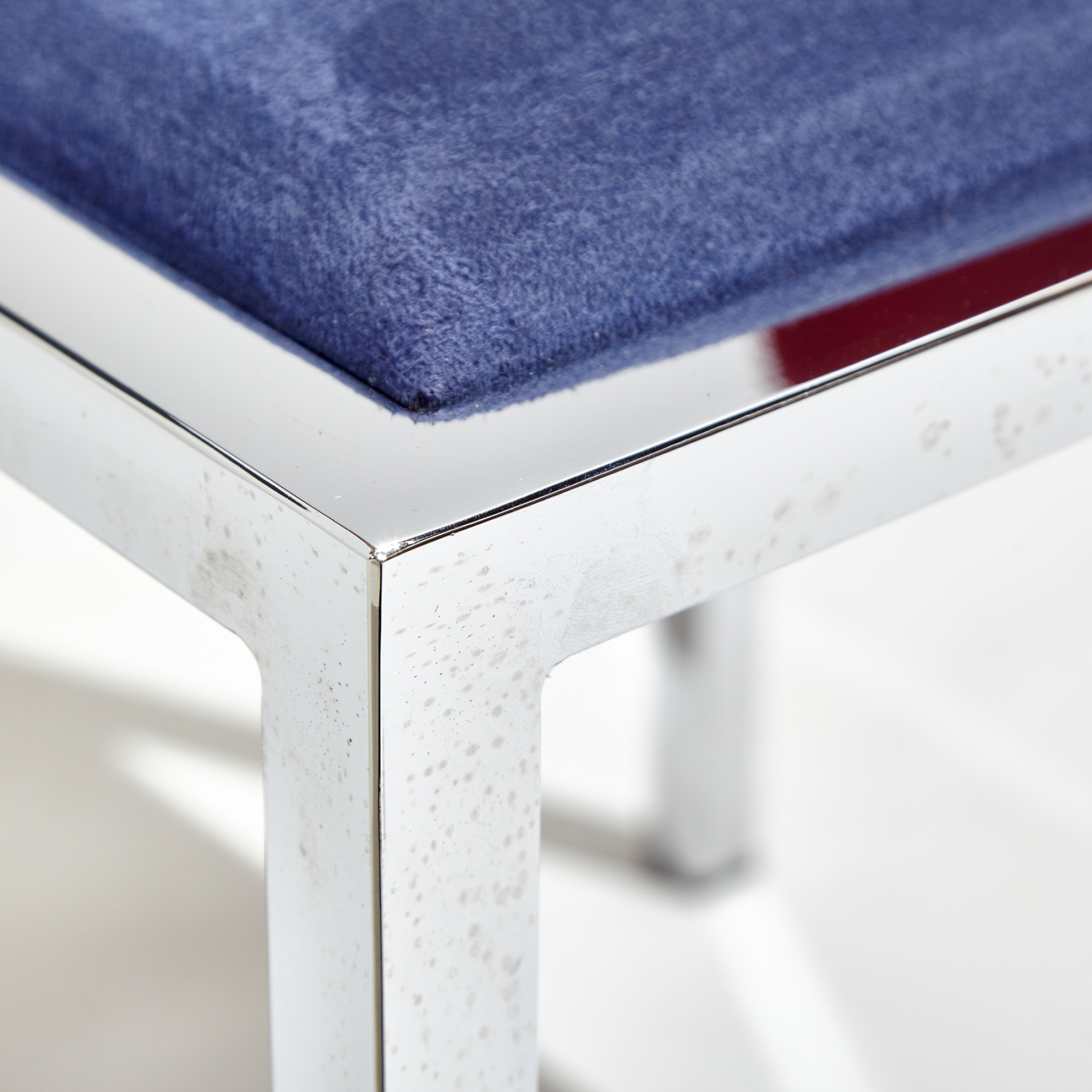 Rare and exciting treasures of iconic Italian postmodernism. The ‘Omaggi’ chairs designed by Salvati & Tresoldi for Saporiti Italia in the 1980s. The chairs are a cross between fine art and design, as the backrests are a homage to the four contemporary artists Arp, Balla, Malevich and Warhol. The playful design of the chairs and their clean, chrome-plated steel frame structure create a perfect harmony. The textile and chrome surfaces of the chairs have scratches, stains and wear in places.