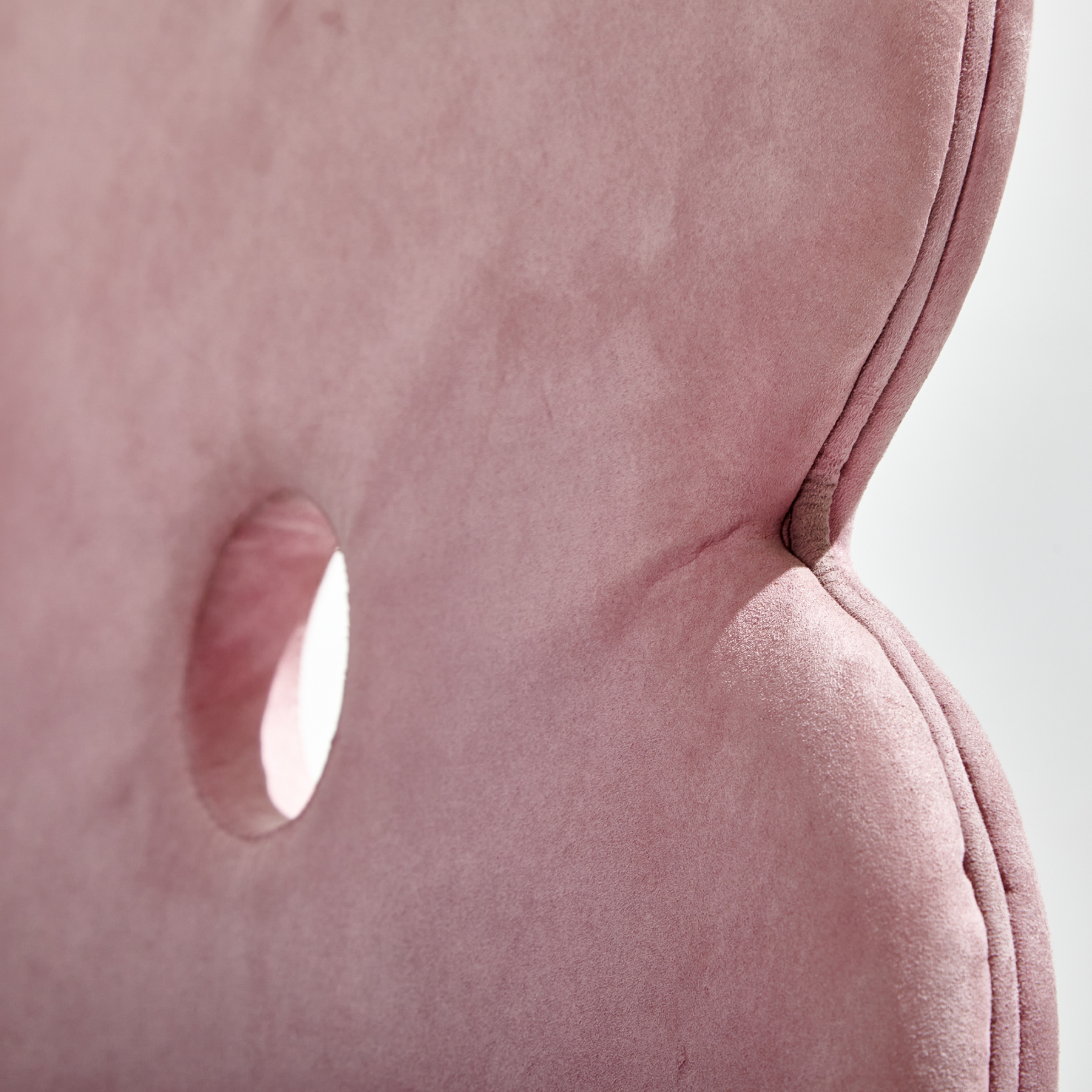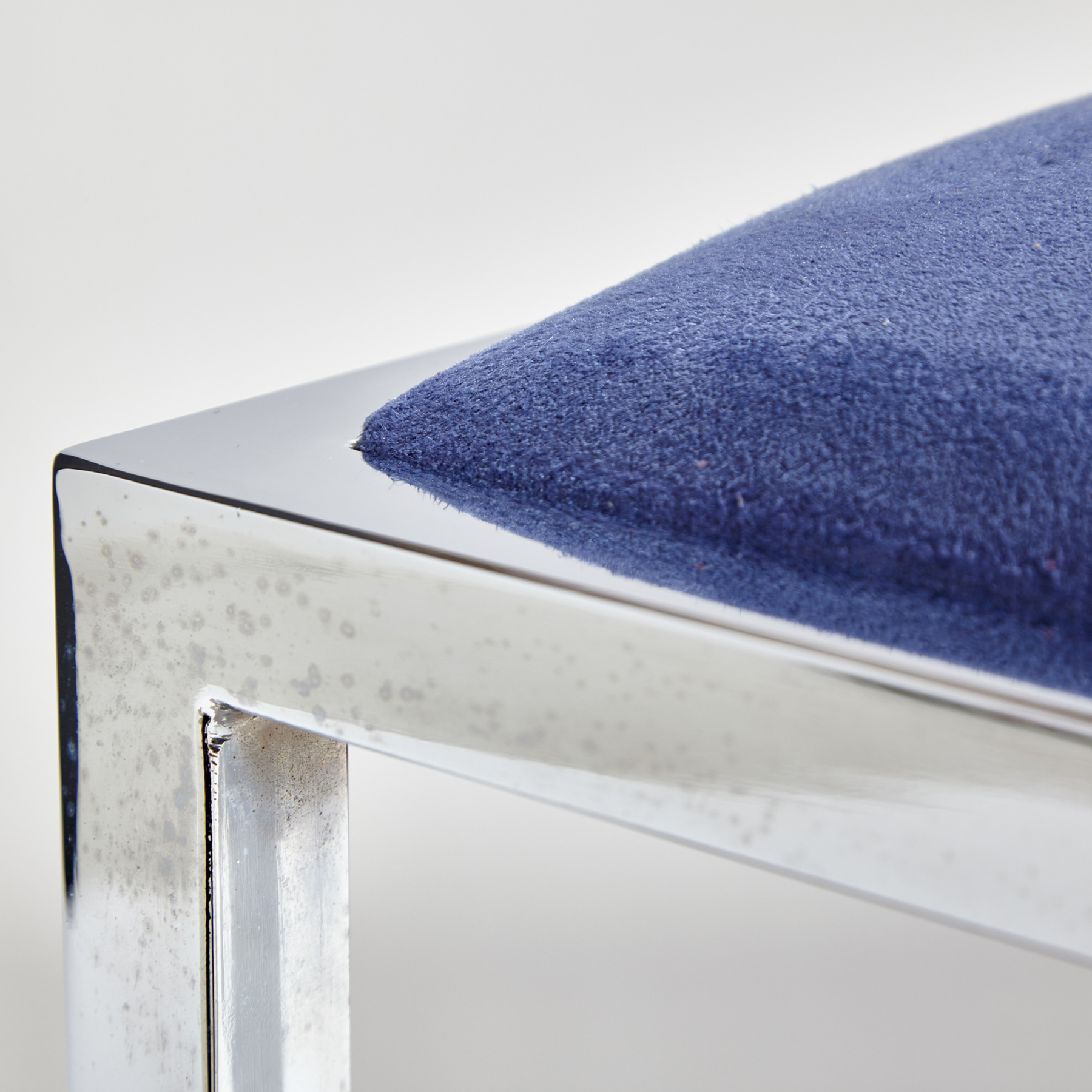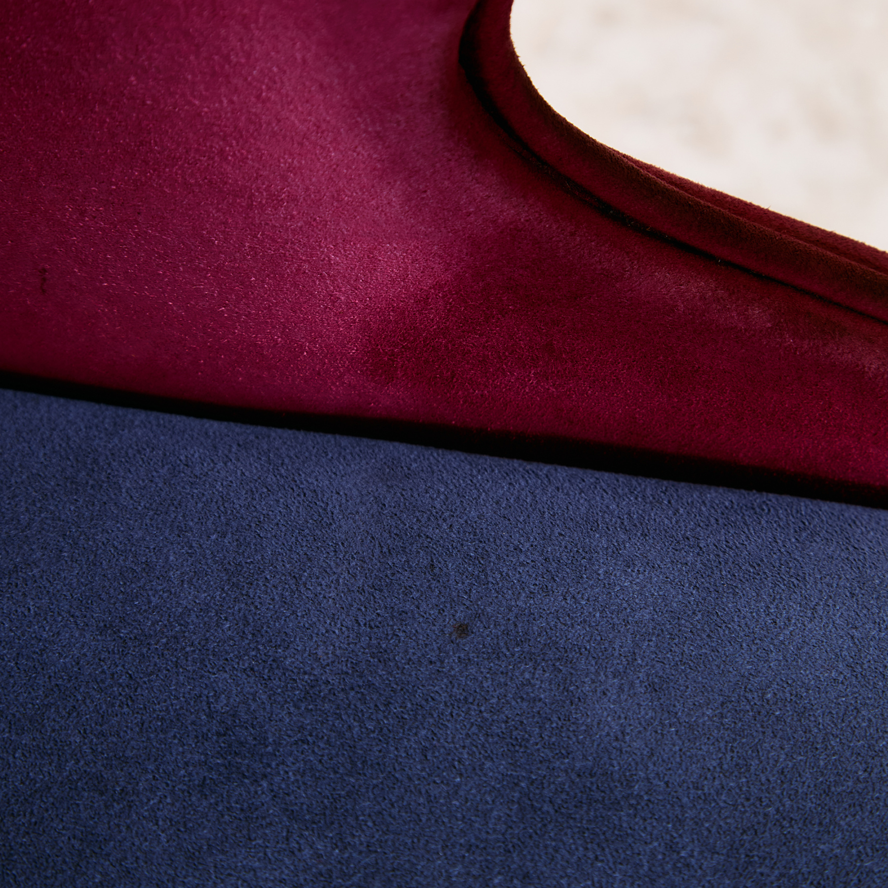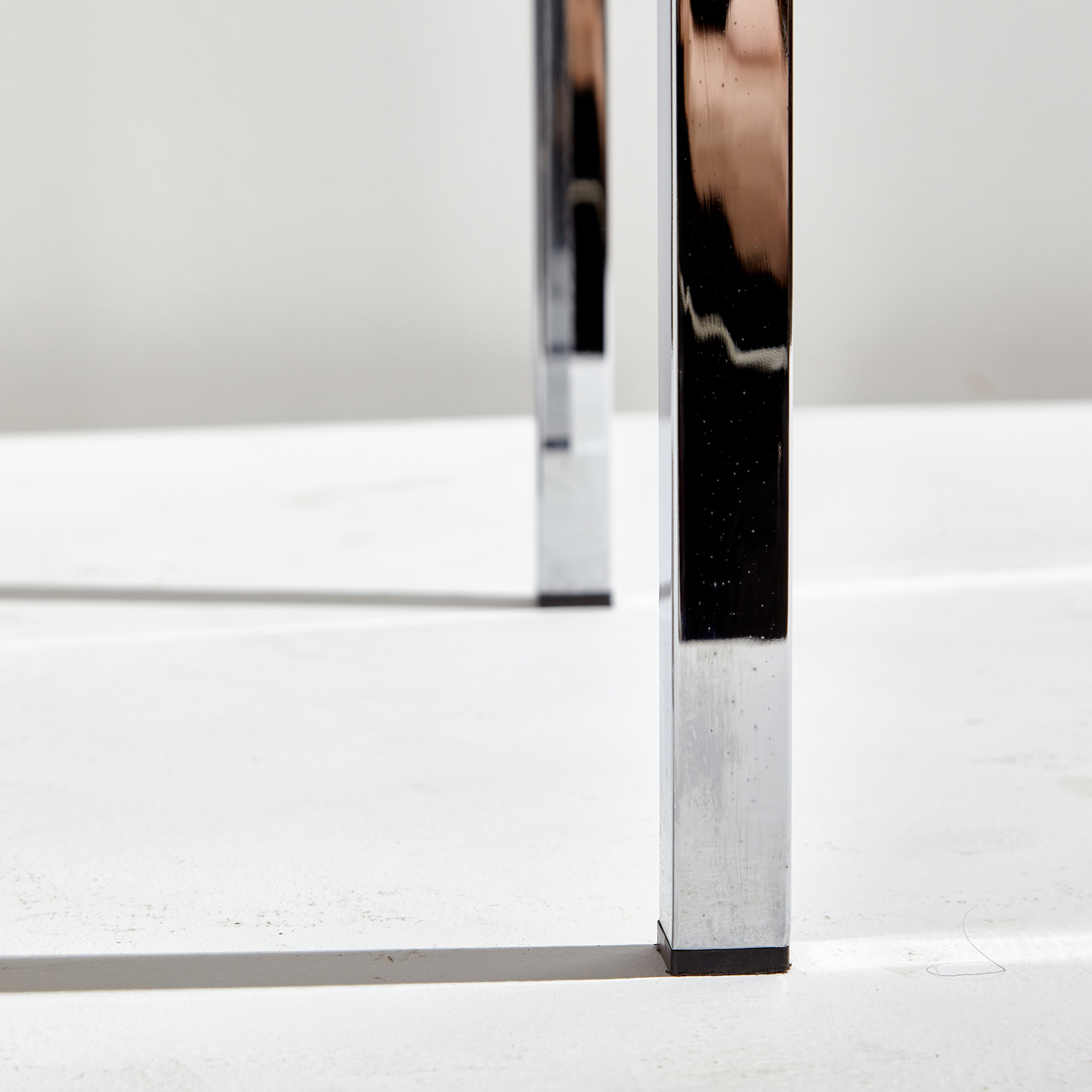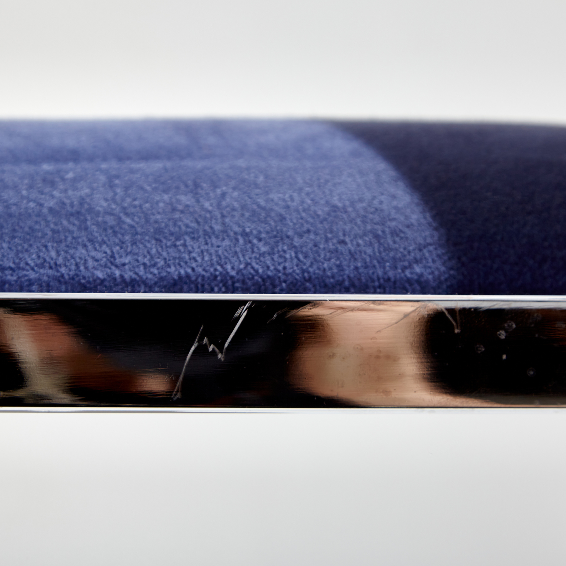 Rare and exciting treasures of iconic Italian postmodernism. The ‘Omaggi’ chairs designed by Salvati & Tresoldi for Saporiti Italia in the 1980s. The chairs are a cross between fine art and design, as the backrests are a homage to the four contemporary artists Arp, Balla, Malevich and Warhol. The playful design of the chairs and their clean, chrome-plated steel frame structure create a perfect harmony. The textile and chrome surfaces of the chairs have scratches, stains and wear in places.