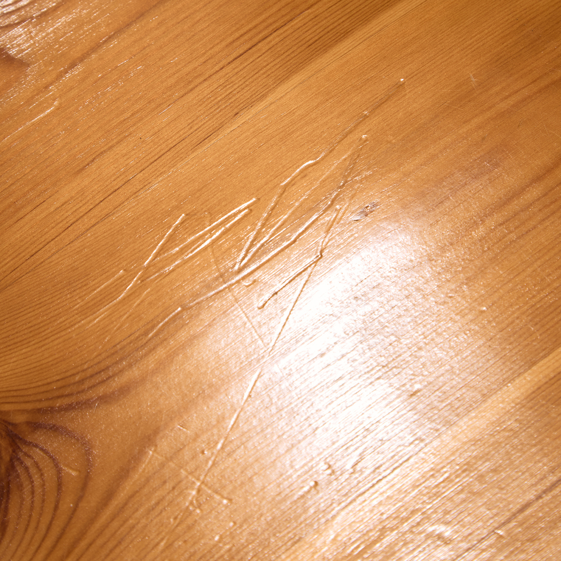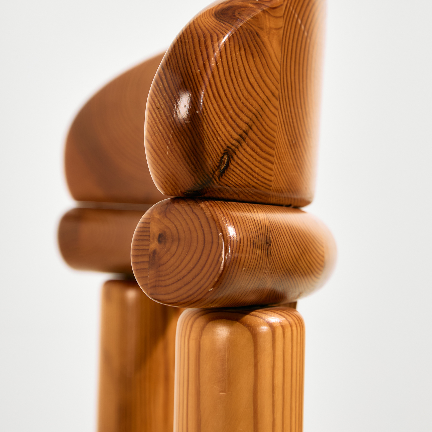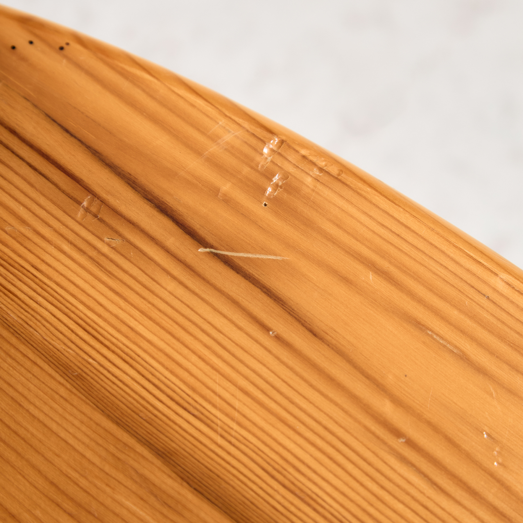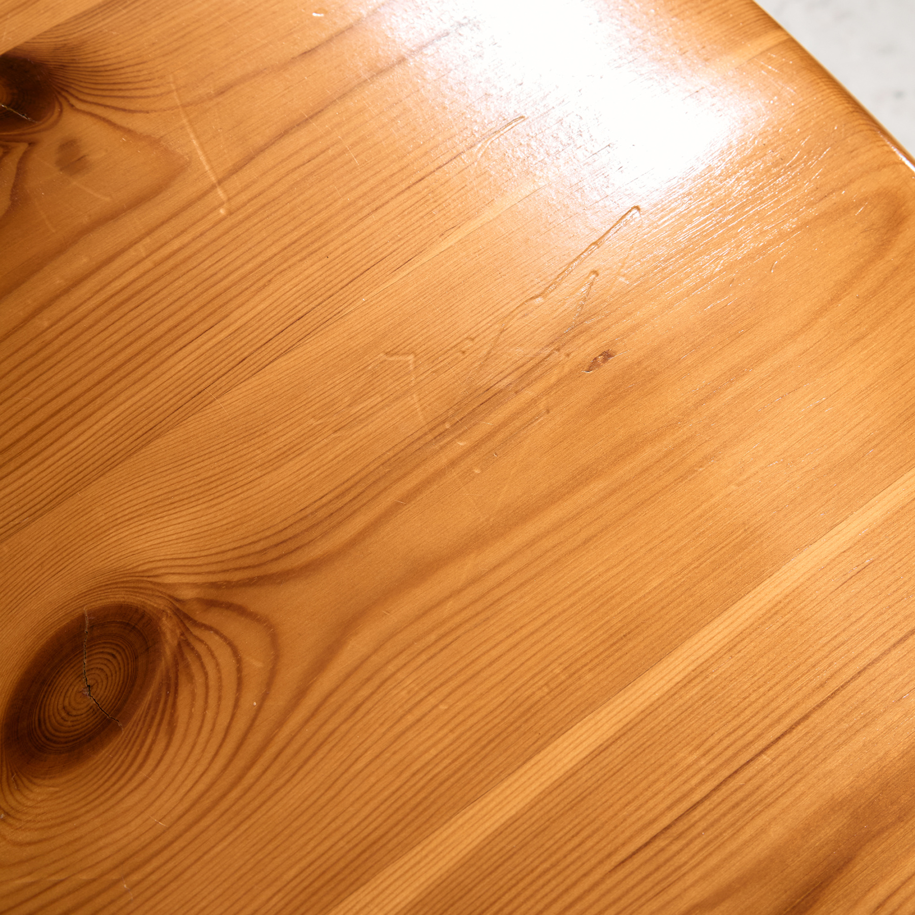Solid pine dining chair from the 1970s designed by Rainer Daumiller. The surface of the chairs has scratches, stains and wear in places, with signs of use.