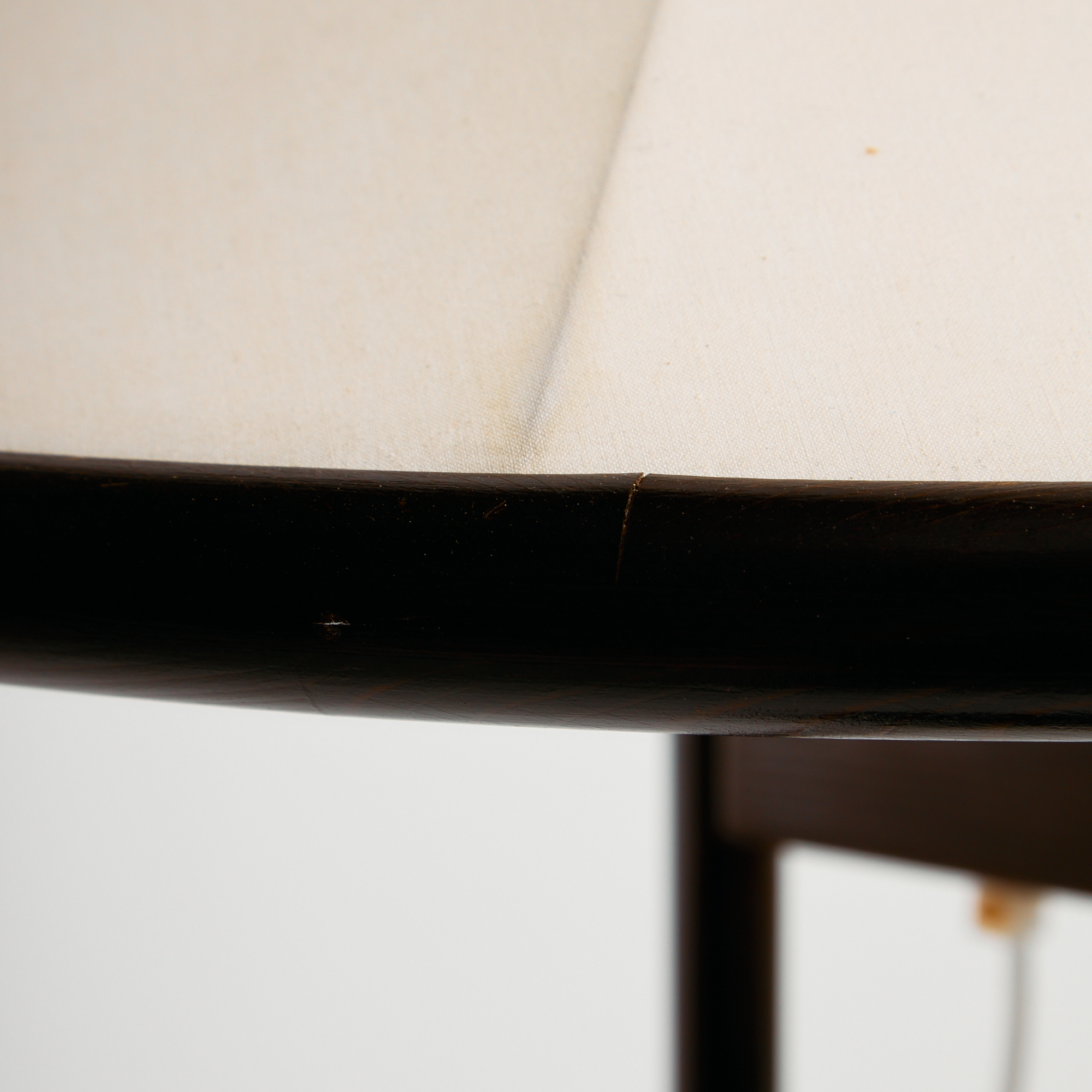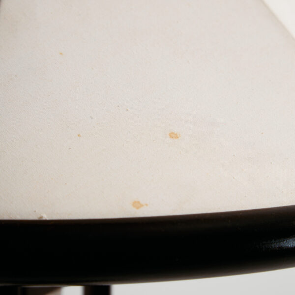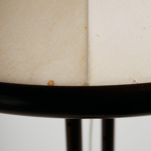Danish solid pine floor lamp from the 1960s produced by Lys. The height of the lampshade is adjustable. With some surface scratches, stains and wear on the wooden and textile parts.