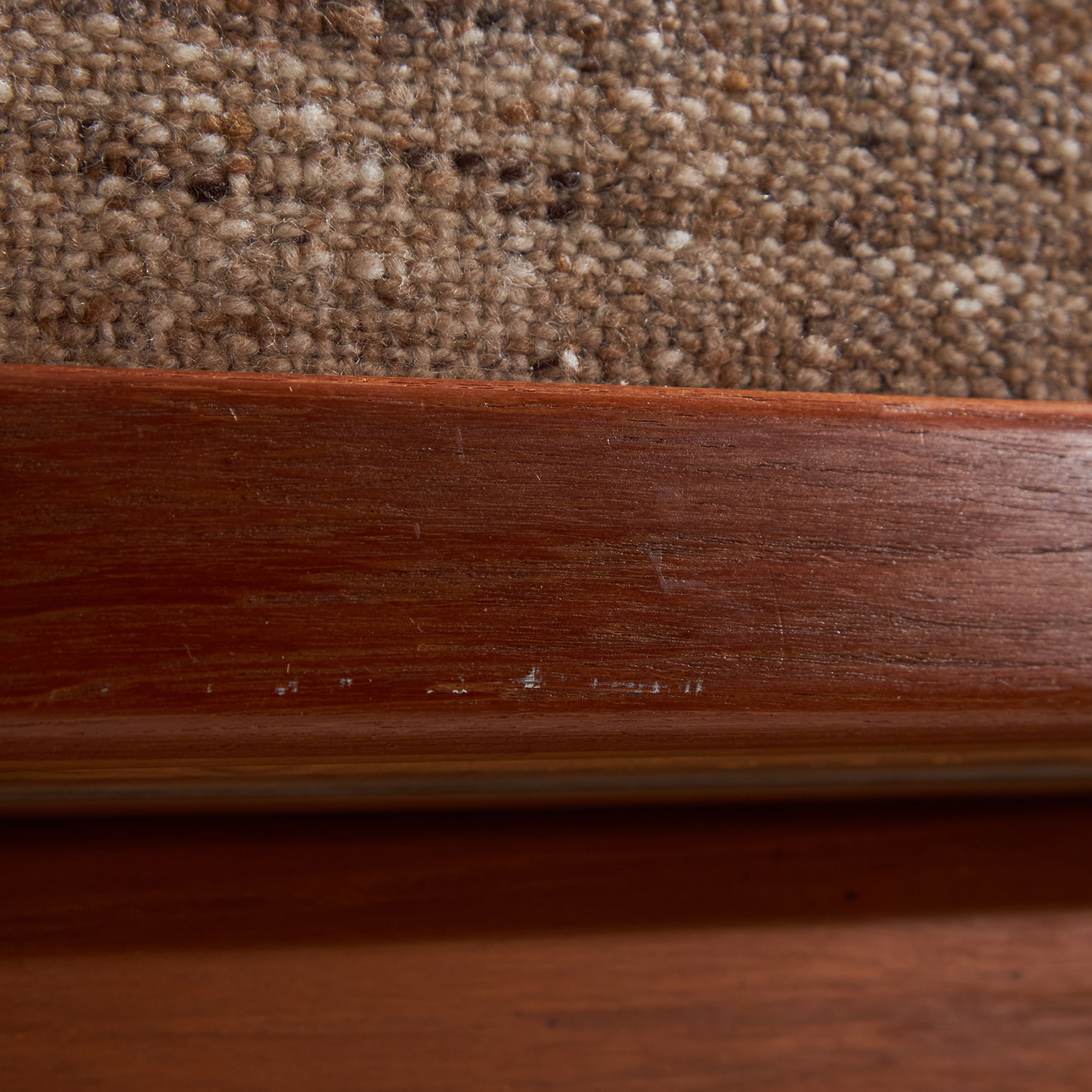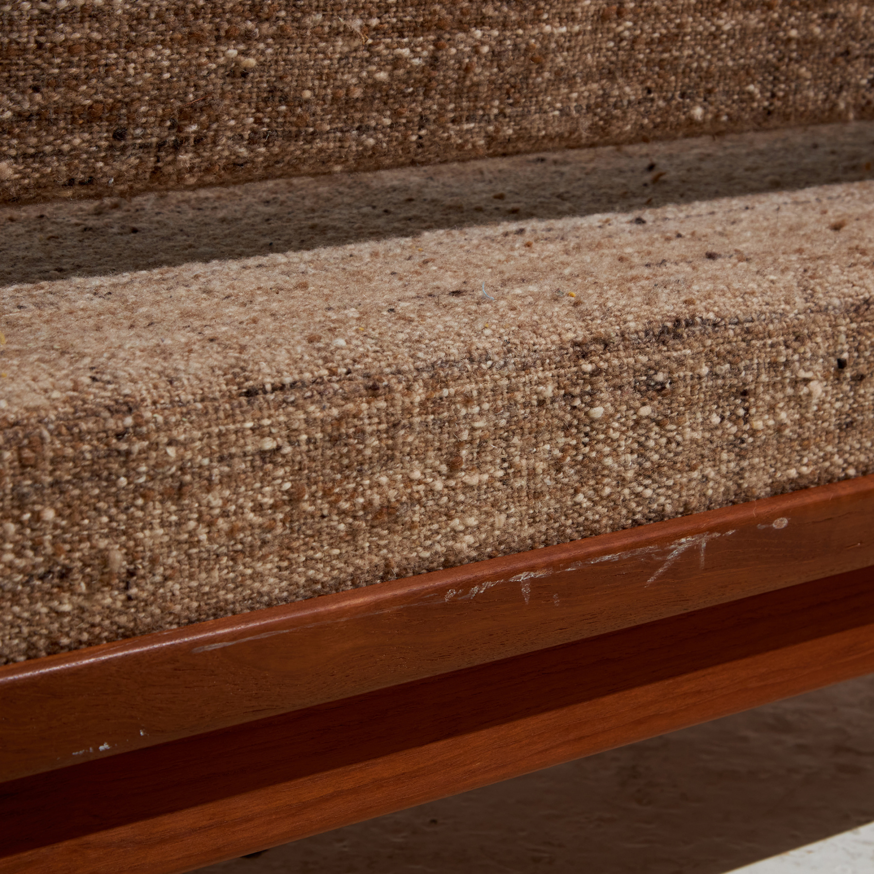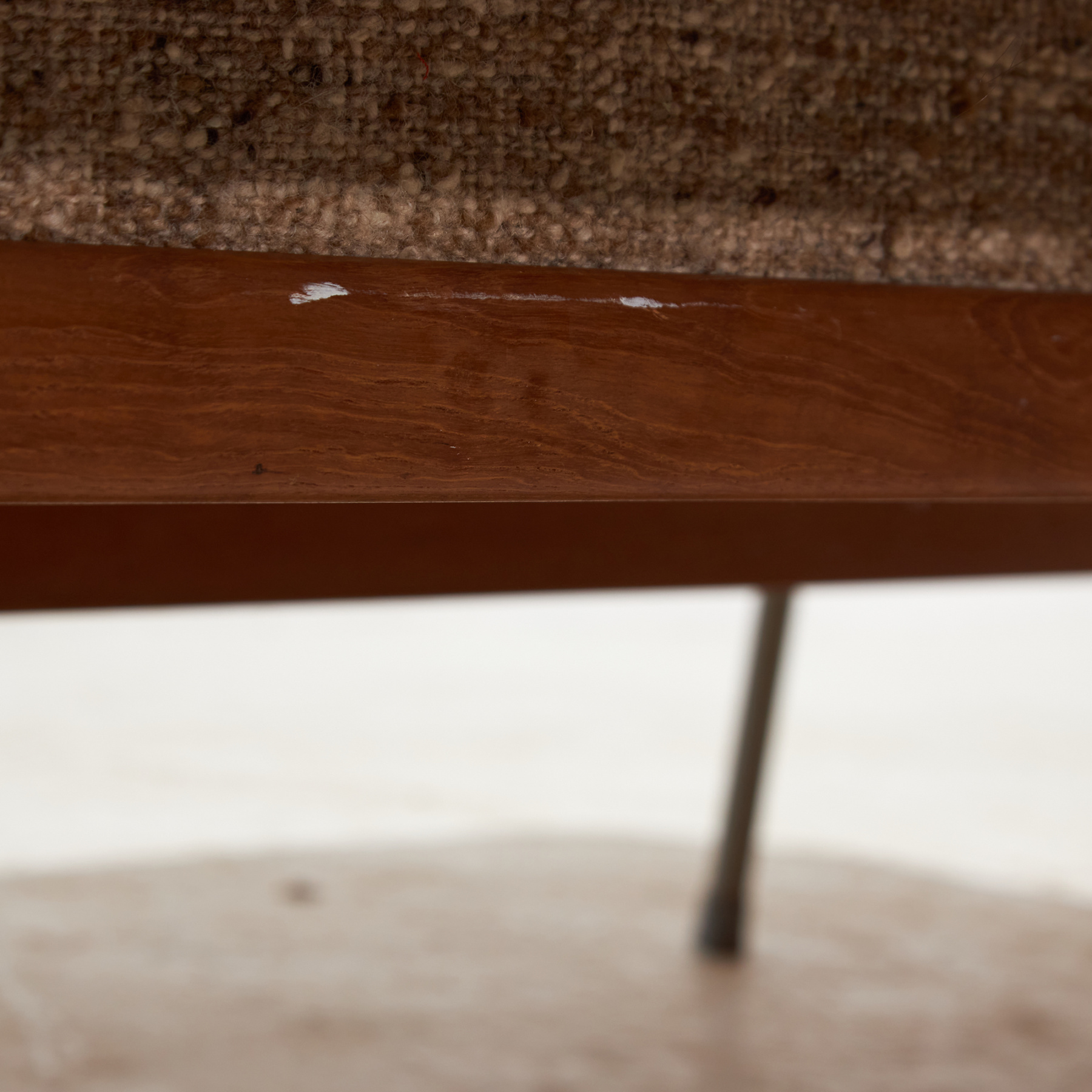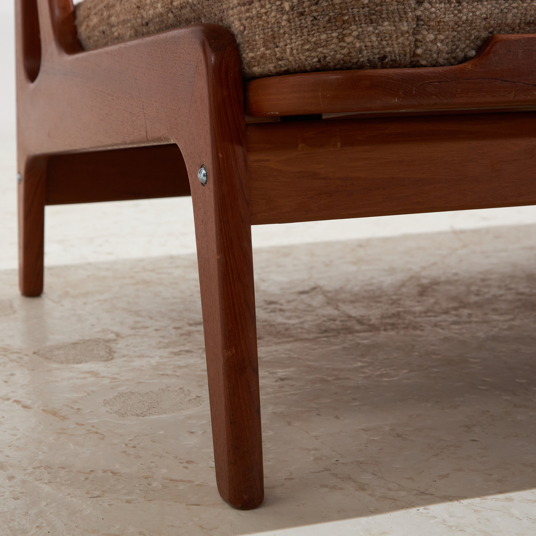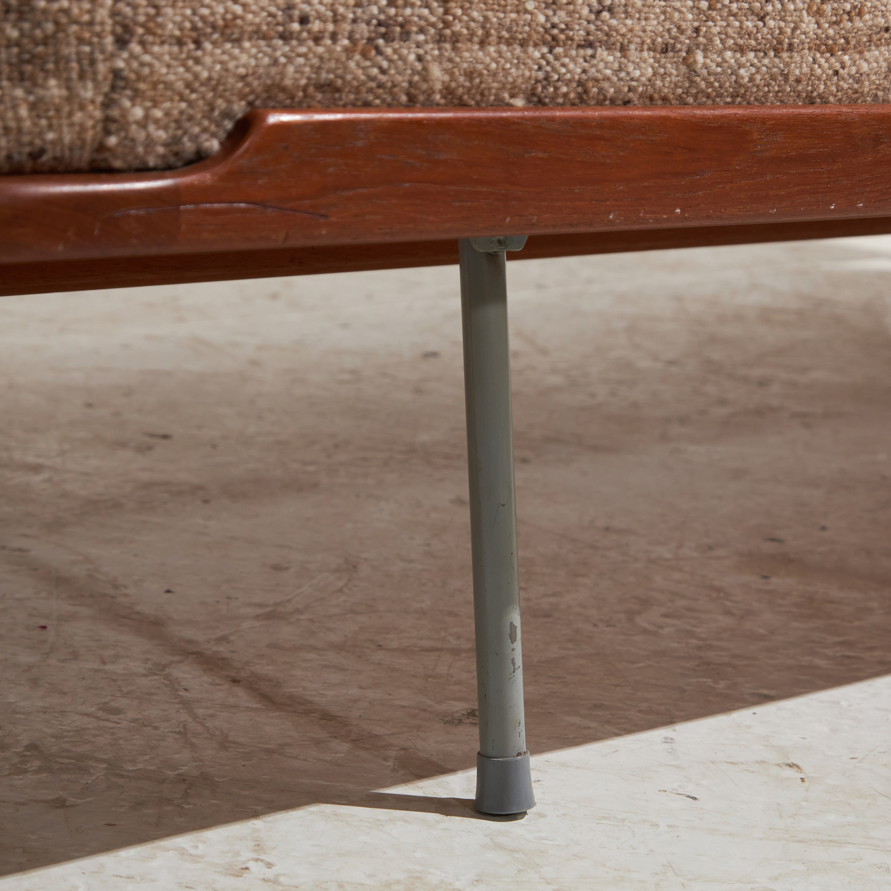 metal, teak, textile, upholstery, wood
