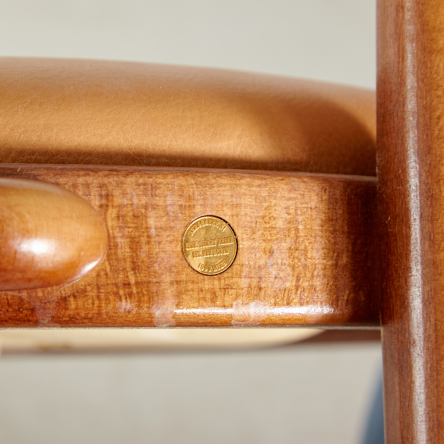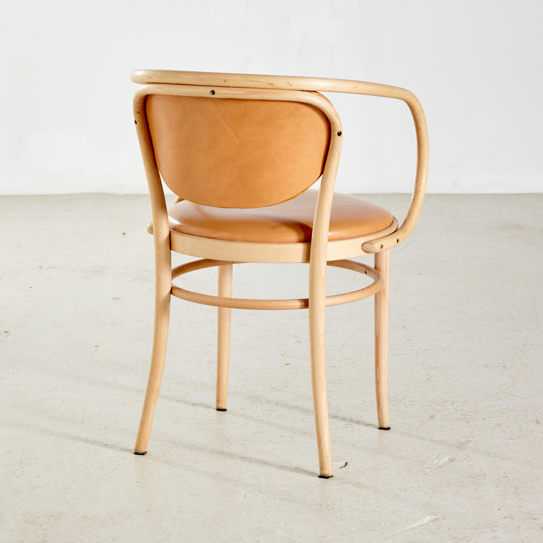Newly refurbished sculpture like beech Thonet armchairs with curved armrest. These fine pieces works well in living rooms, tea houses and offices