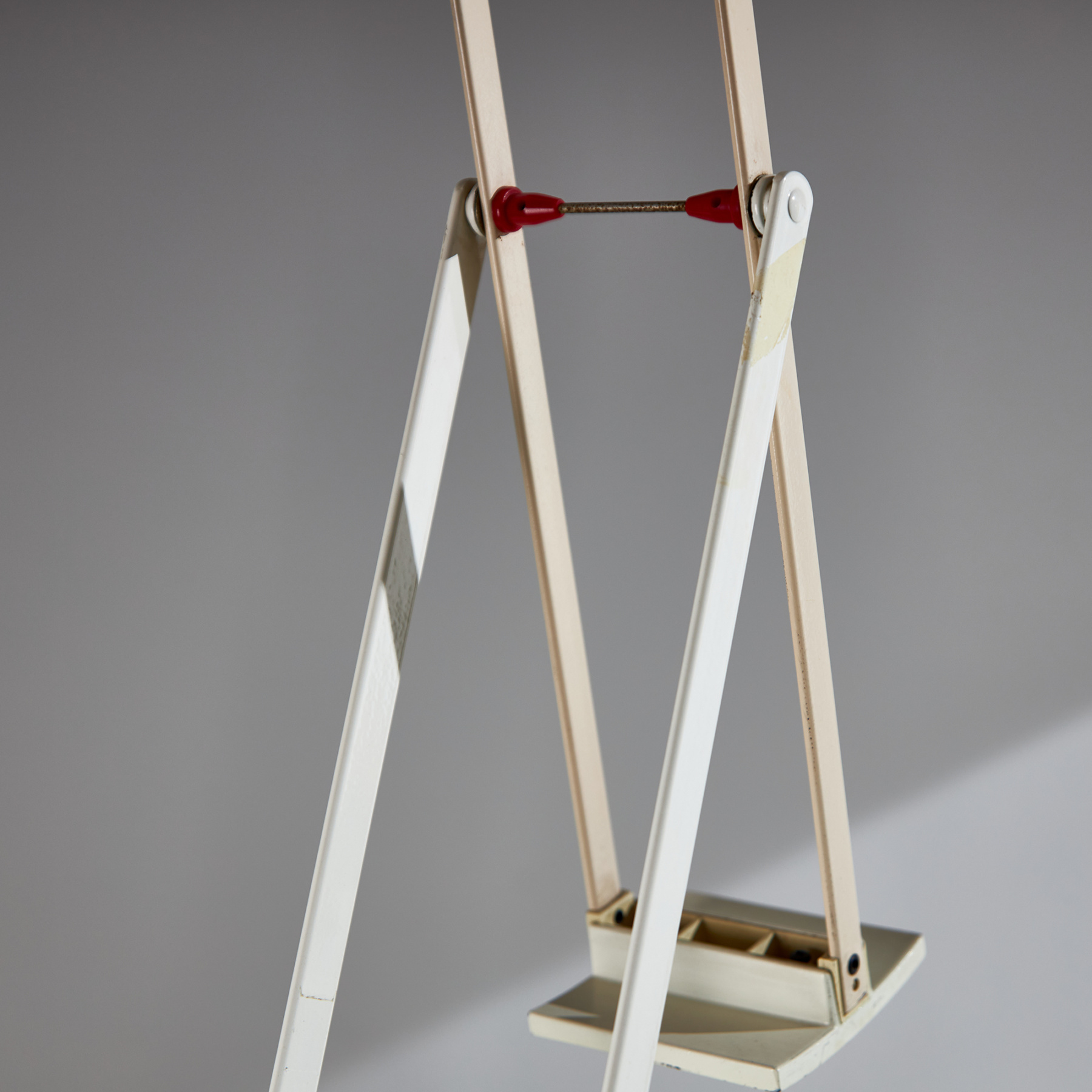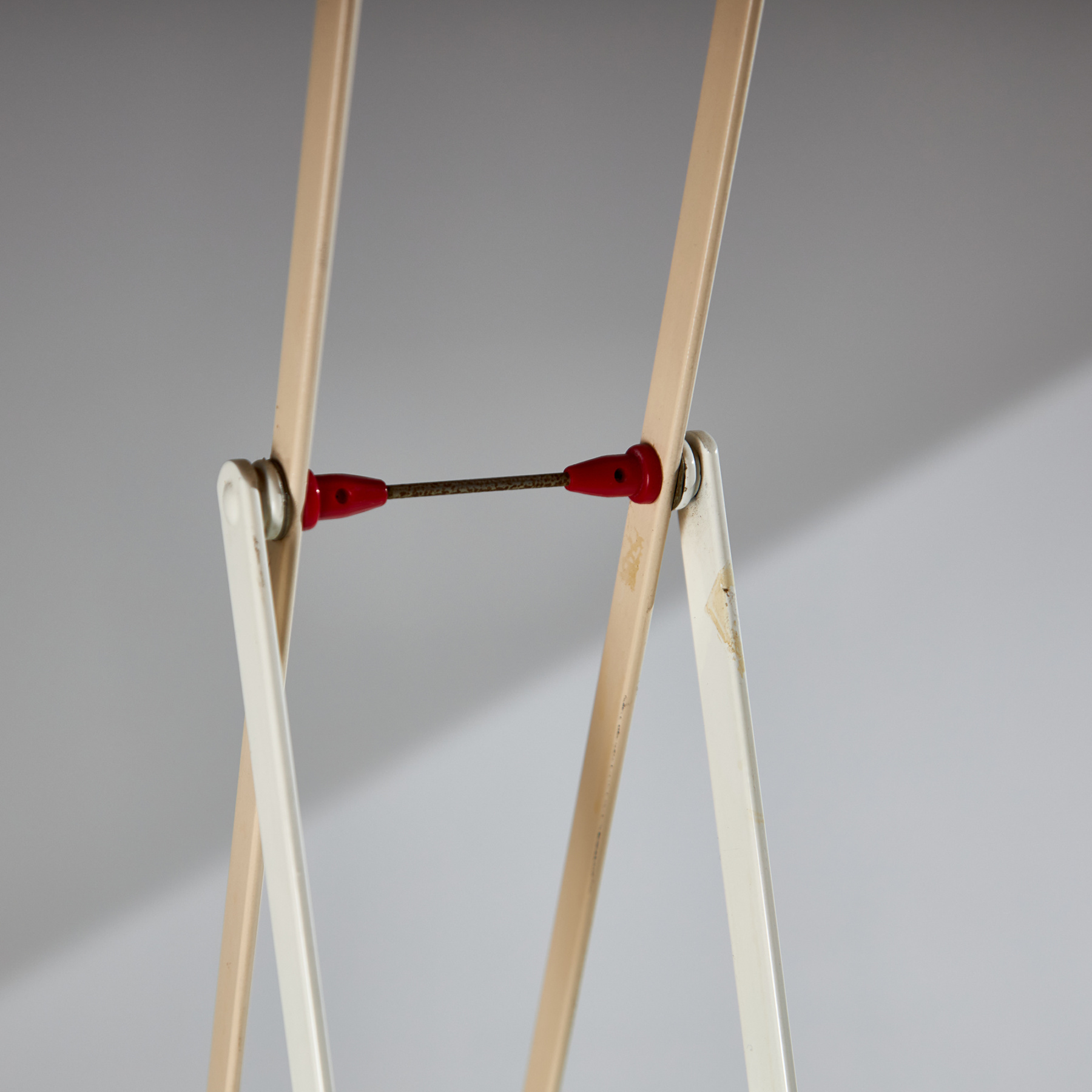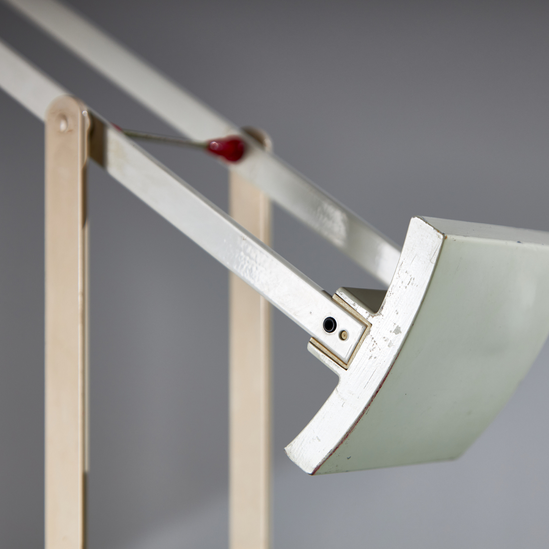 ‘Tizio’ lamp from the 1970s designed by Richard Sapper for Artemide. The height of the lamp is adjustable and the body can also be swiveling. With several surface scratches, rust and wear on the aluminum parts. In vintage condition with some signs of use.