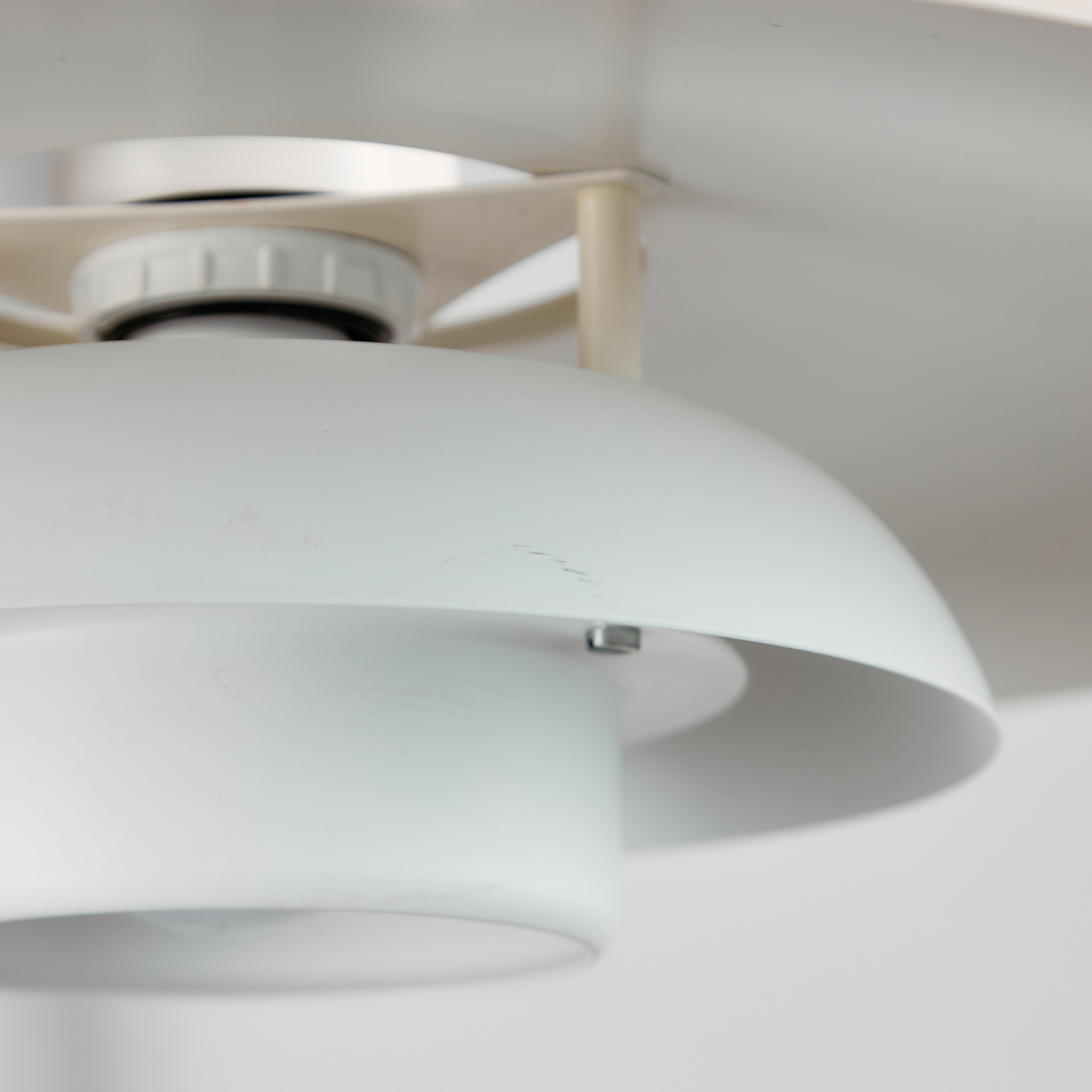 ‘Type 4756’ aluminium pendant from the 1970s produced by Lyskær Belysning. Ideal for dining tables or as mood lighting. With scratches, stains and wear on the surface of the lamp.