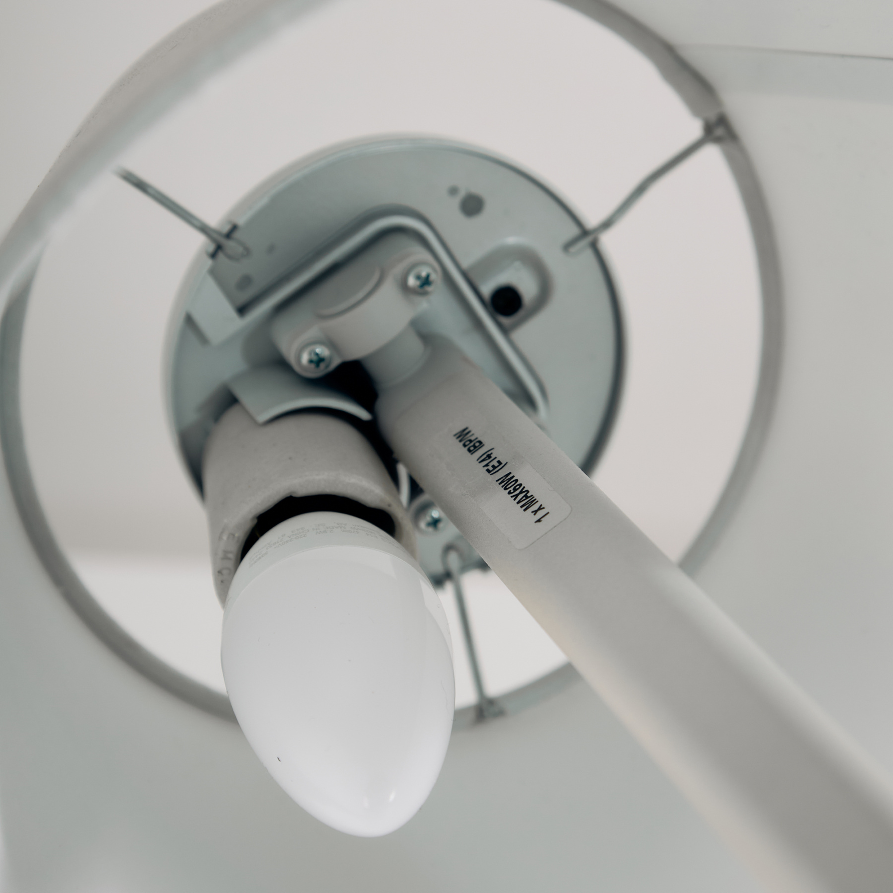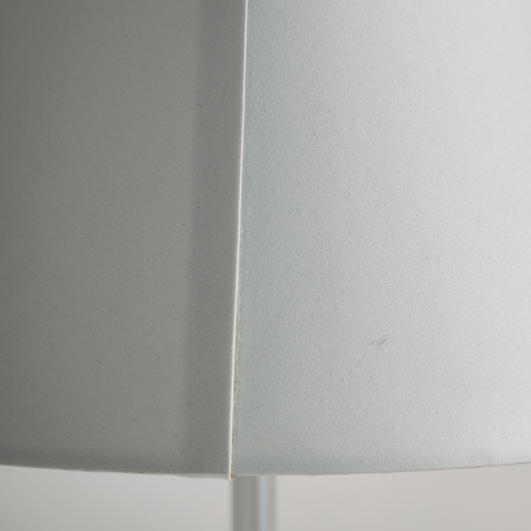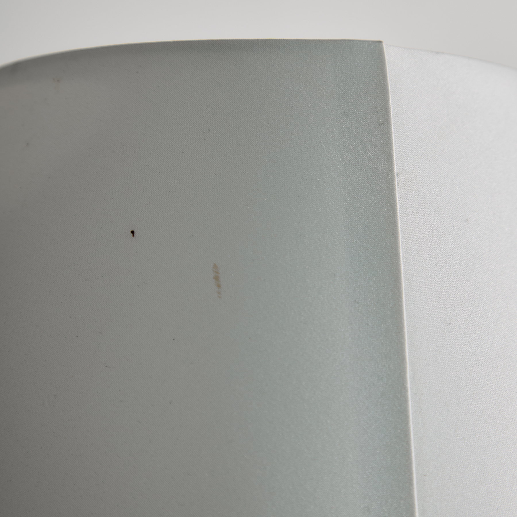 Adrien Gardère által az Artemide számára tervezett ‘Melampo Notte’ asztali lámpa a 2000-es évekből. A lámpa formai kialakításának és anyaghasználatának köszönhetően egyszerre elegáns és időtlen darab, hiszen szerkezete alumíniumból készült és búrája szatén borítással ellátott. Praktikussága a kettő különböző pozícióba állítható lámpabúrában rejlik, így képes a környezet megvilágítására, illetve hangulatvilágításnak is tökéletes. A búra belsejében egy foglalat található, felületén pár folttal.