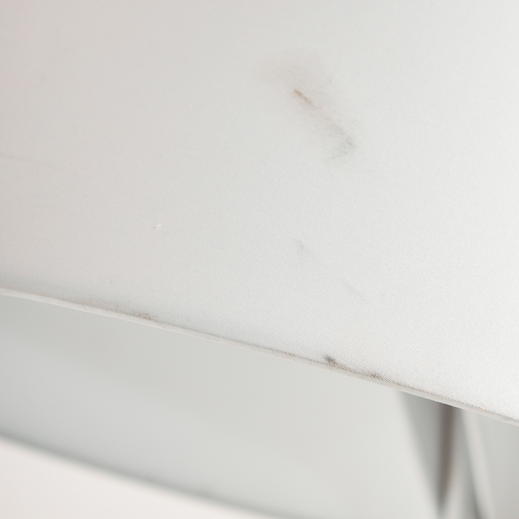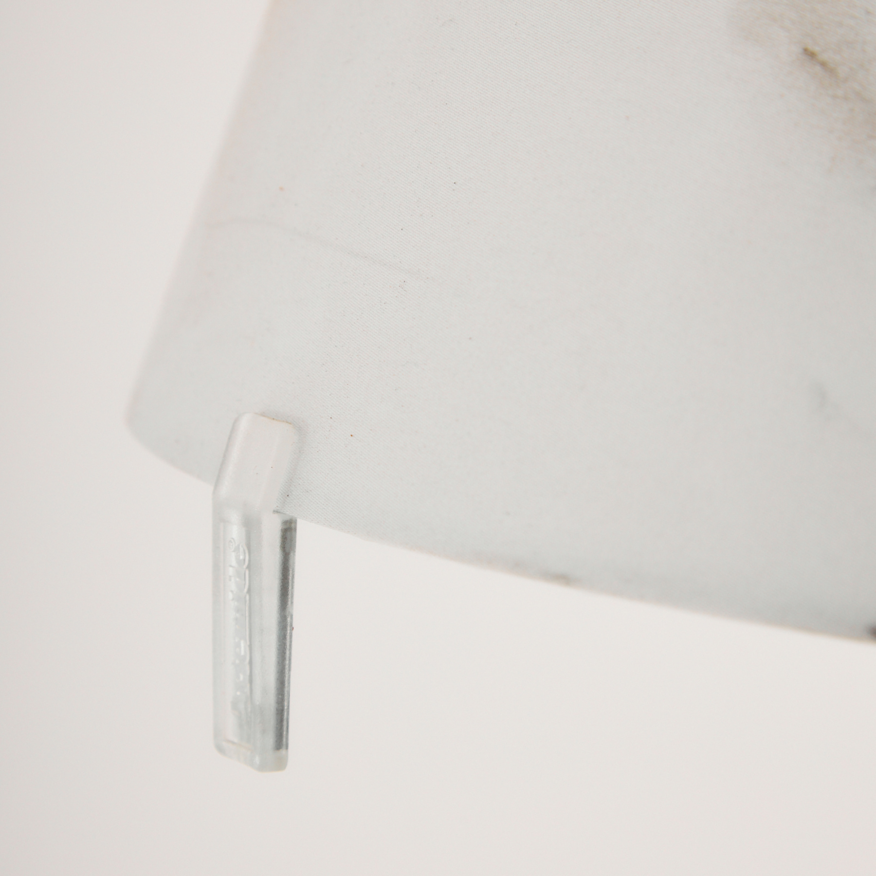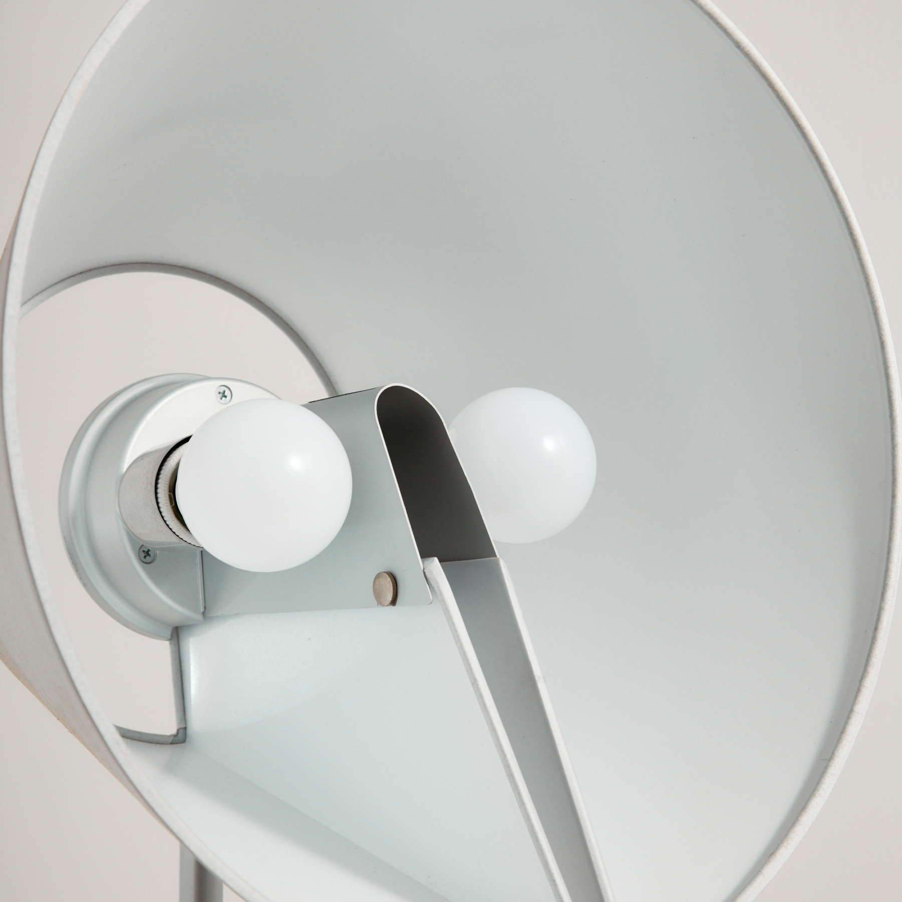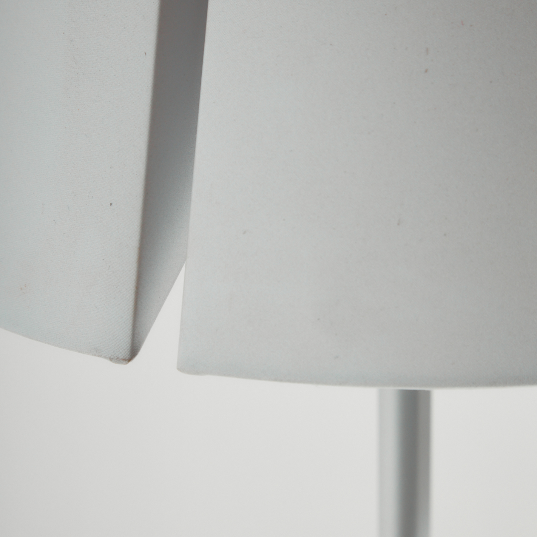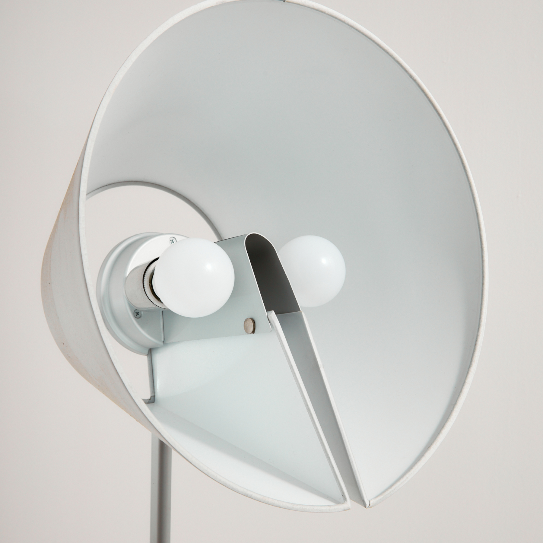 Adrien Gardère által az Artemide számára tervezett ‘Melampo Terra’ állólámpa a 2000-es évekből. A lámpa formai kialakításának és anyaghasználatának köszönhetően egyszerre elegáns és időtlen darab, hiszen szerkezete alumíniumból készült és búrája szatén borítással ellátott. Praktikussága a három különböző pozícióba állítható lámpabúrában rejlik, így képes a környezet megvilágítására, illetve hangulatvilágításnak is tökéletes. A búra belsejében két foglalat található. Felületén helyenként karcokkal, foltokkal és kopásokkal.