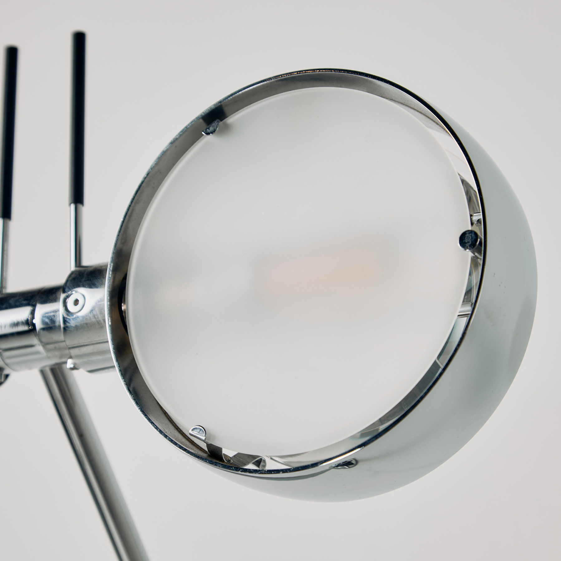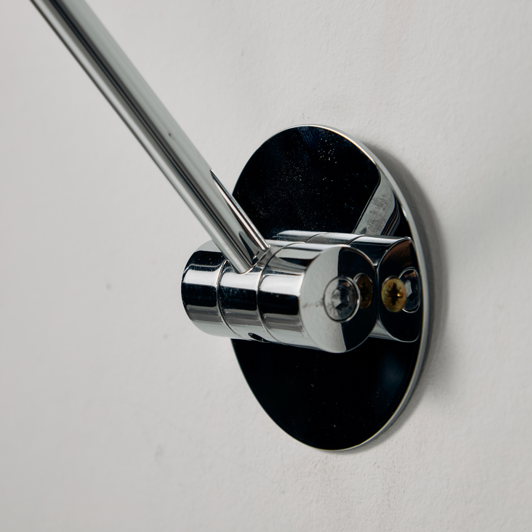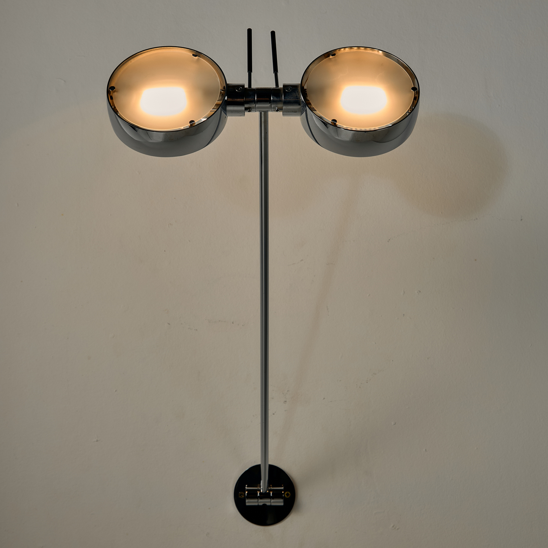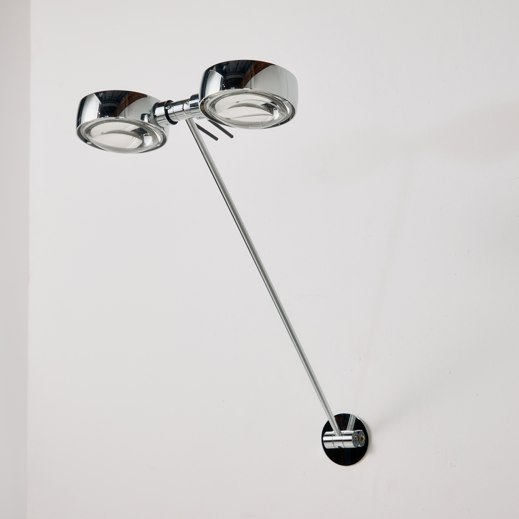 Egy igazán klasszikus és elegáns darab. Axel Meise és Christoph Kügler által az Occhio számára tervezett ‘Sento soffitto doppio’ falikar a 2010-es évekből. A búrák dőlésszöge állítható, így a környezet megvilágítására és hangulatvilágításnak is tökéletes. Helyenként felületi karcokkal és kopásokkal.