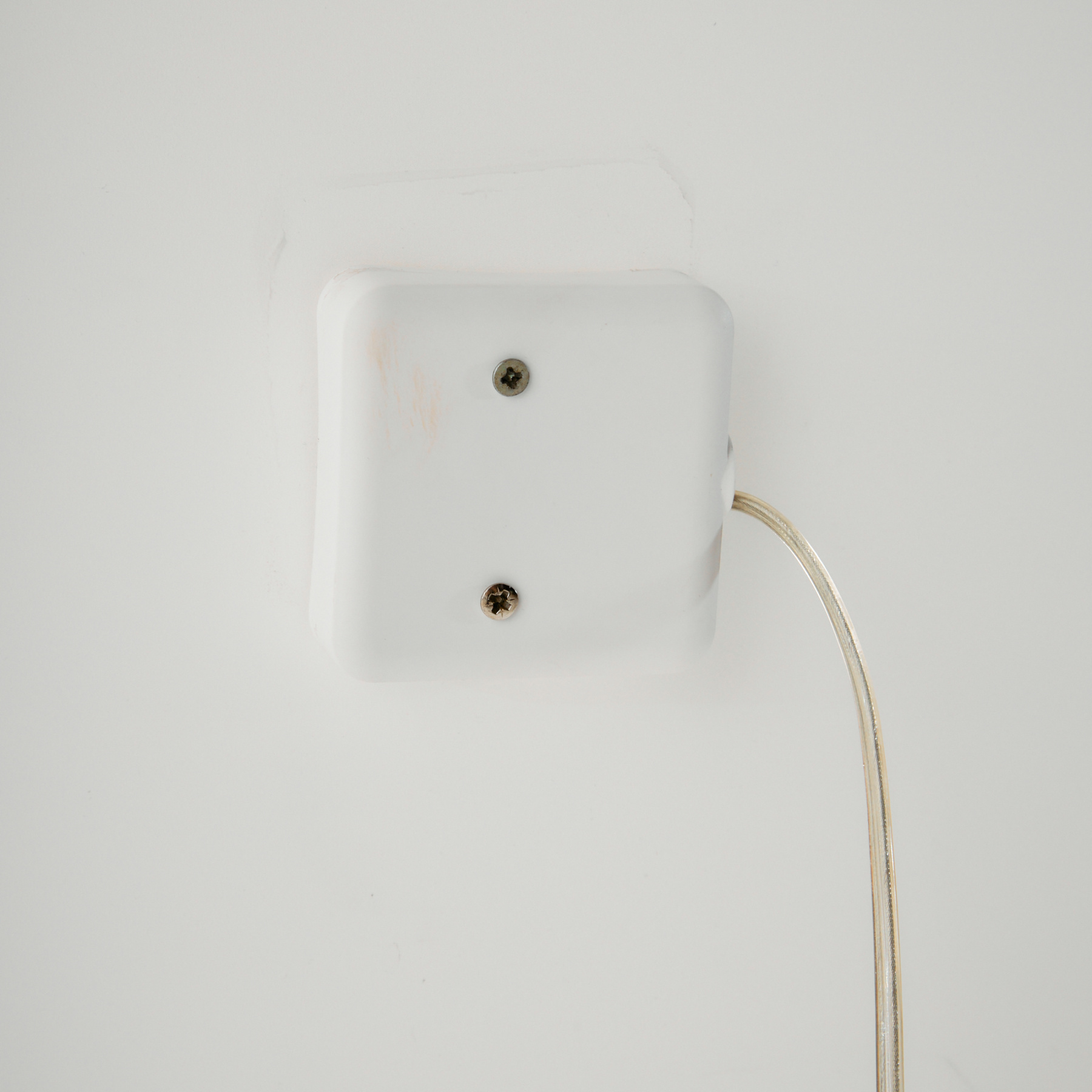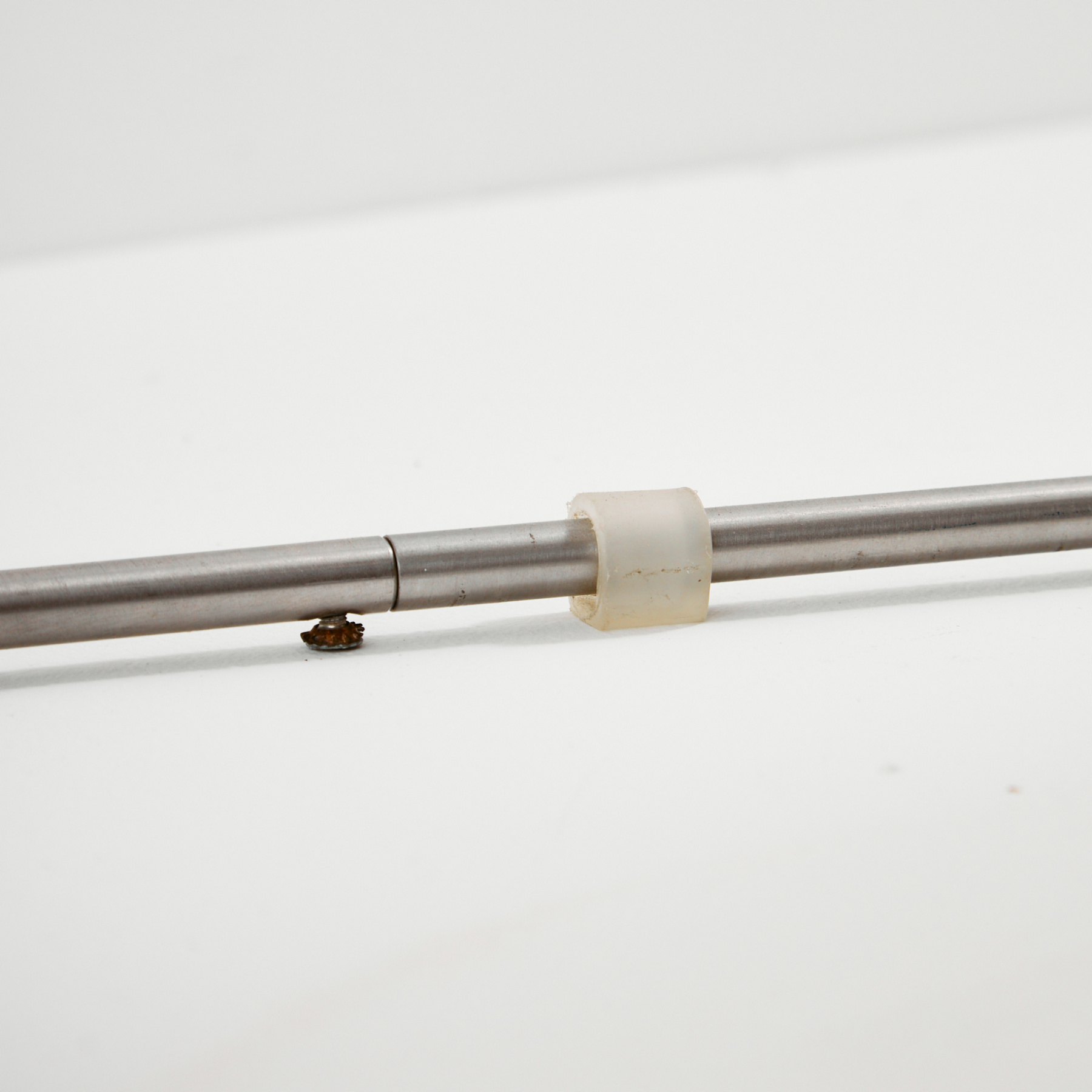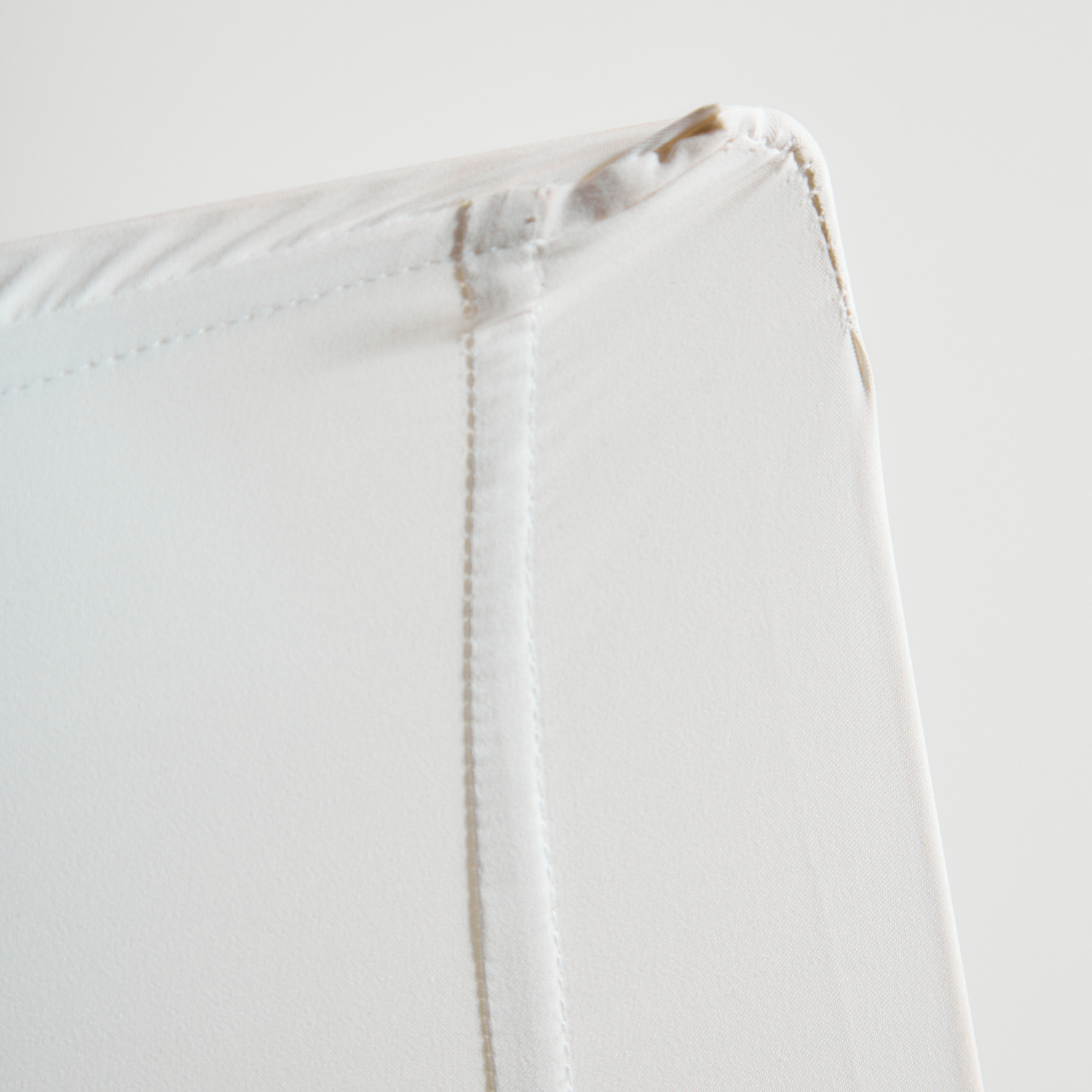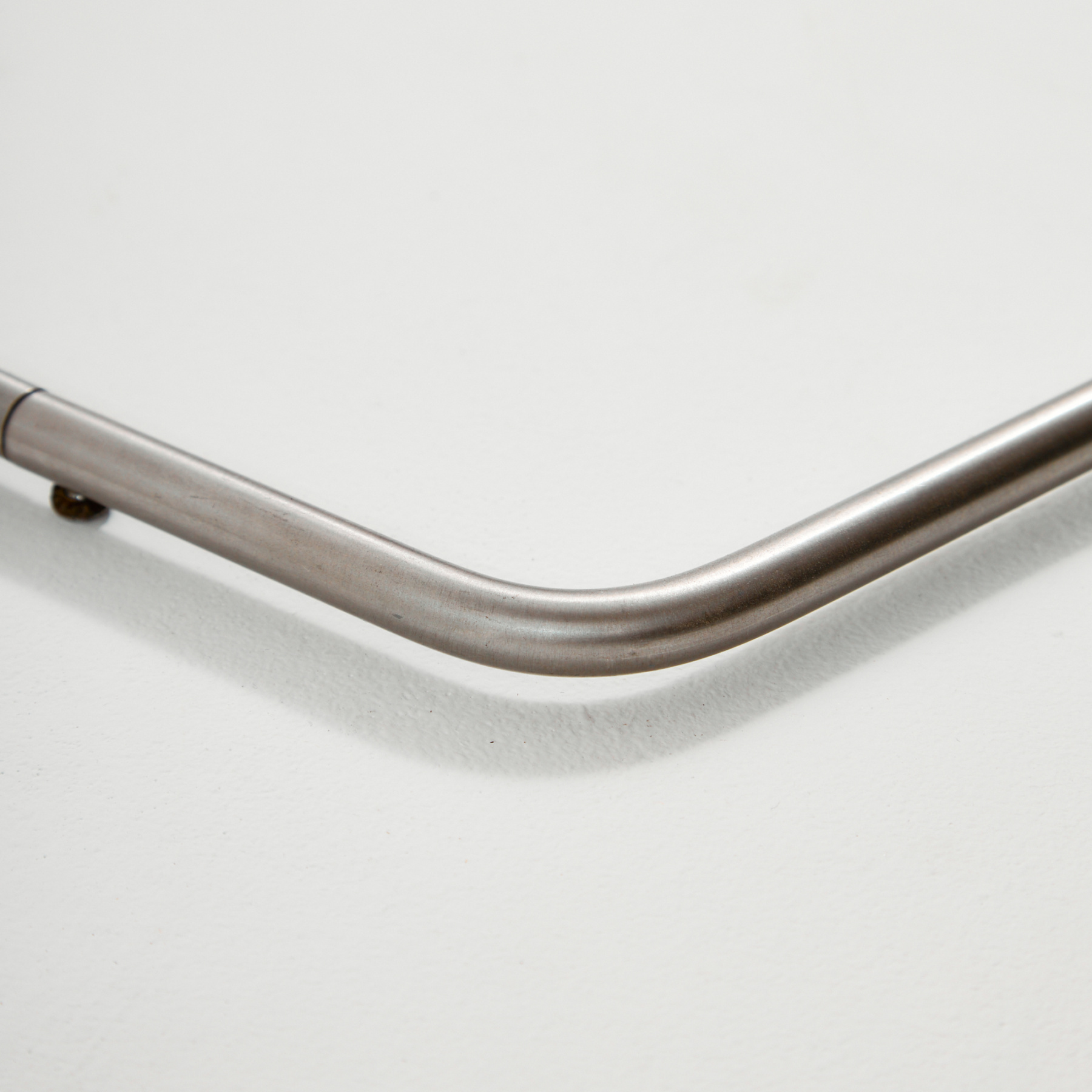 A Bakery Group által a Prandina számára tervezett ‘Model 44F’ állólámpa a 2000-es évekből. A lámpa hatalmas, feszített textil búrával és acél lábazattal ellátott. Felületén helyenként karcokkal, foltokkal és kopásokkal.