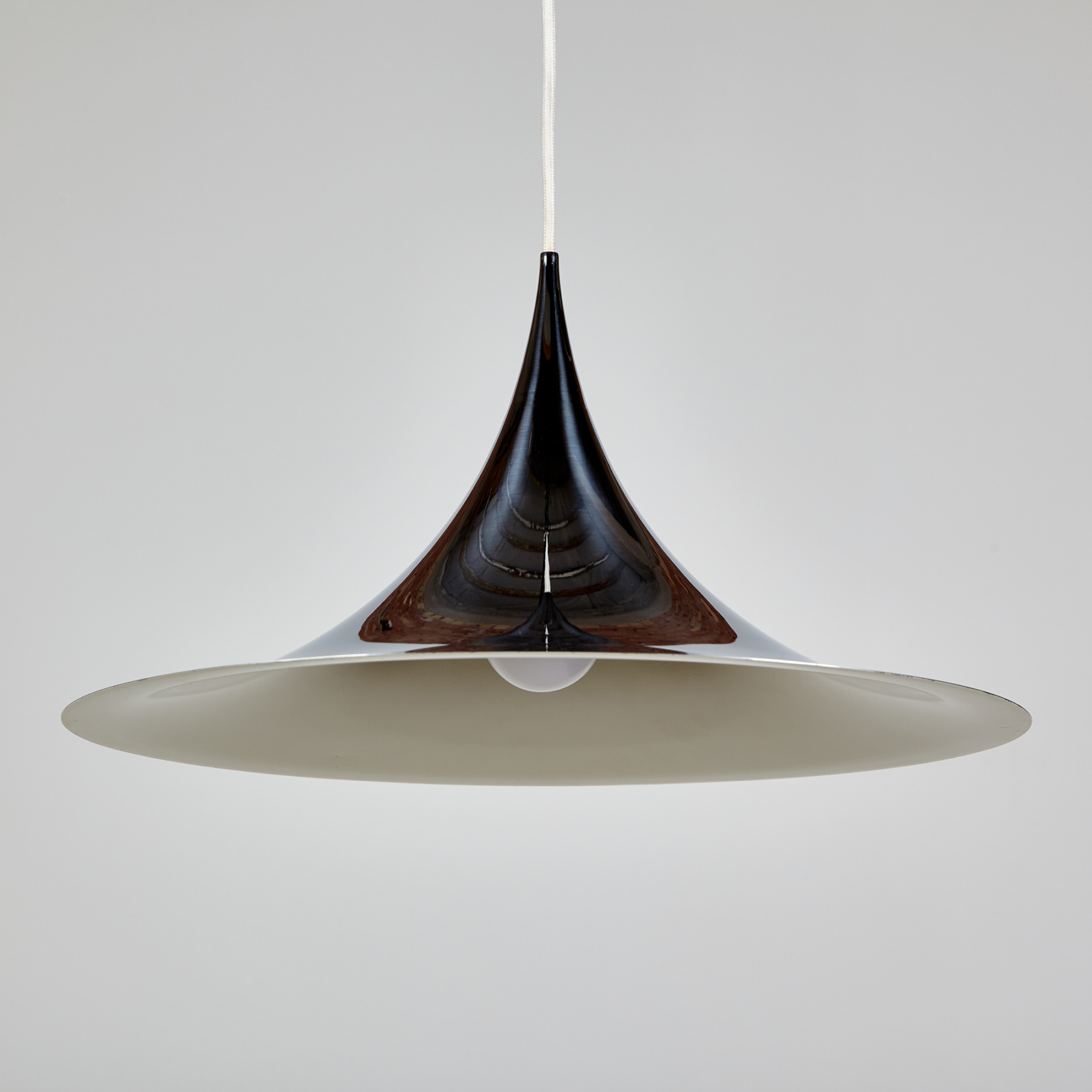 Claus Bonderup és Torsten Thorup által tervezett ‘Semi Mini’ függeszték az 1960-as évekből, amit a Lyfa gyártott le. Helyenként felületi kopásokkal és karcokkal a lámpabúrán.