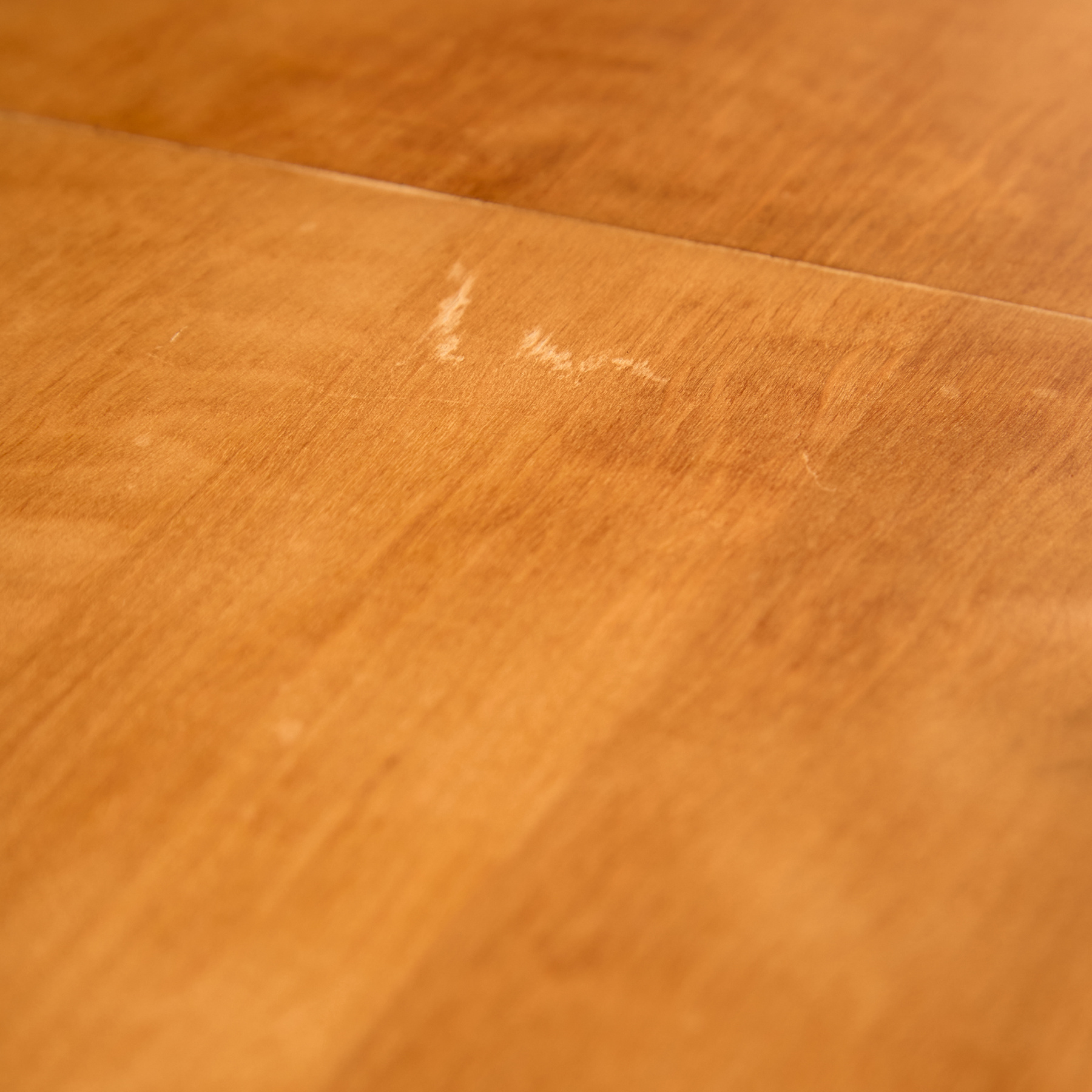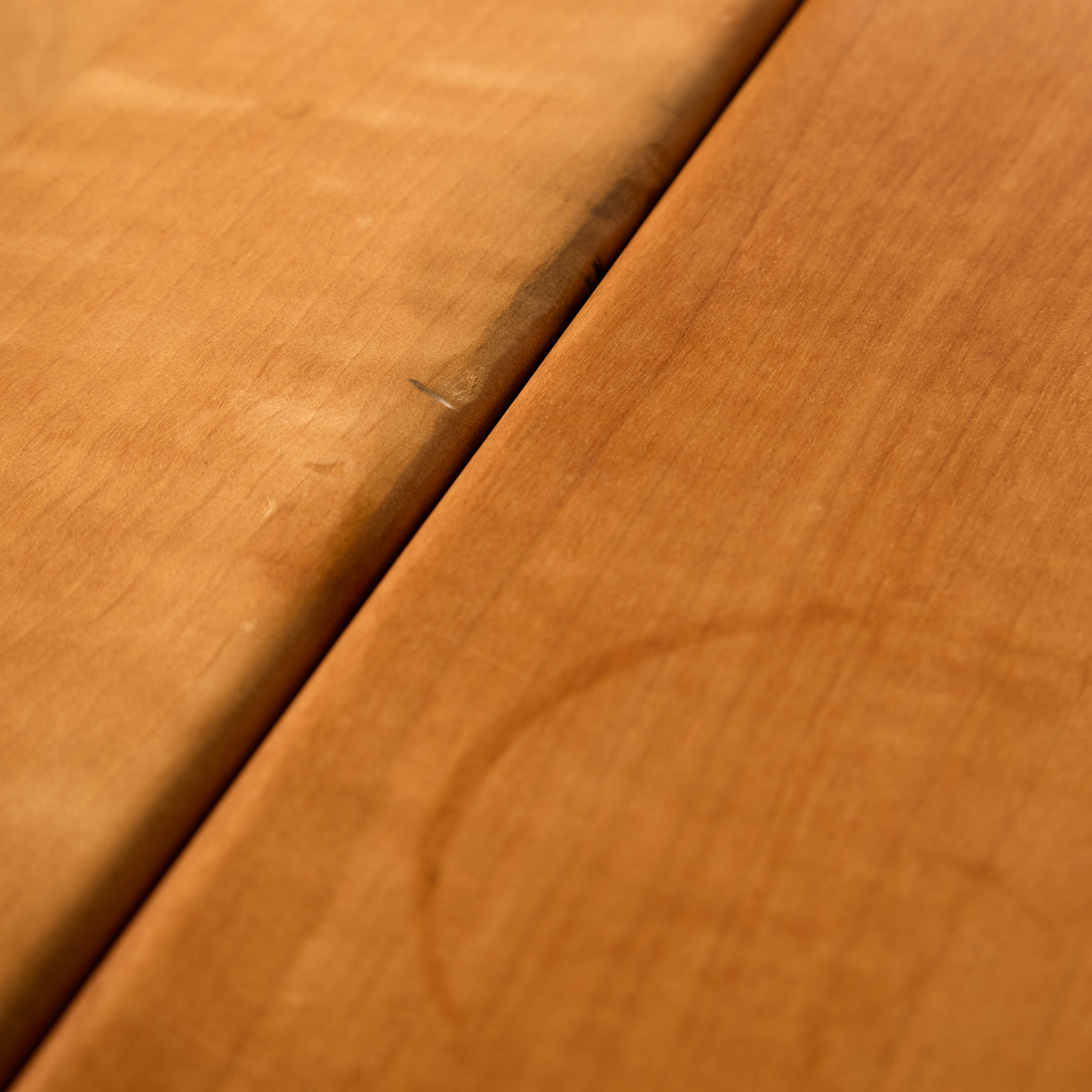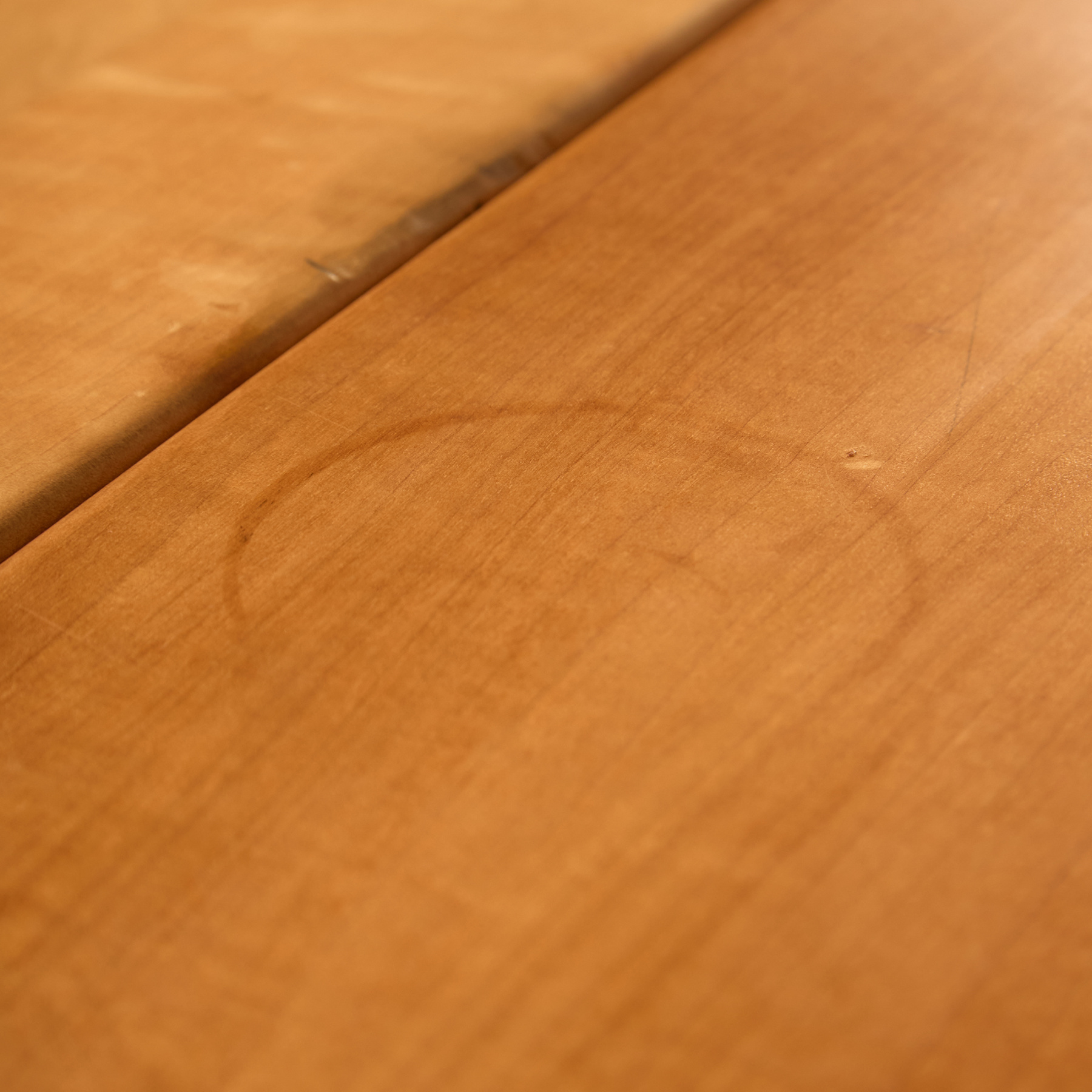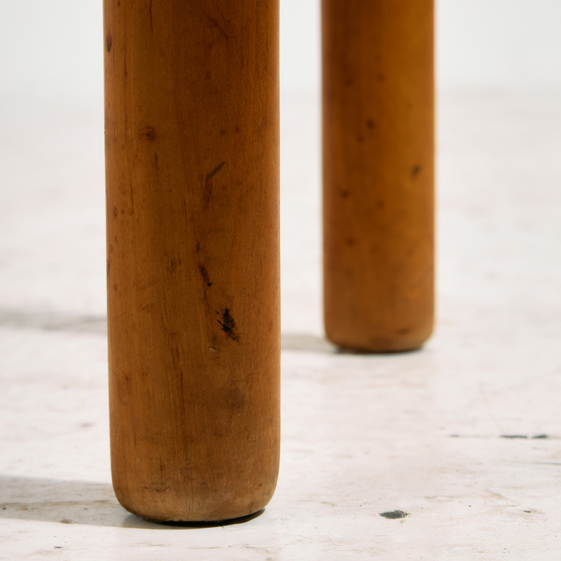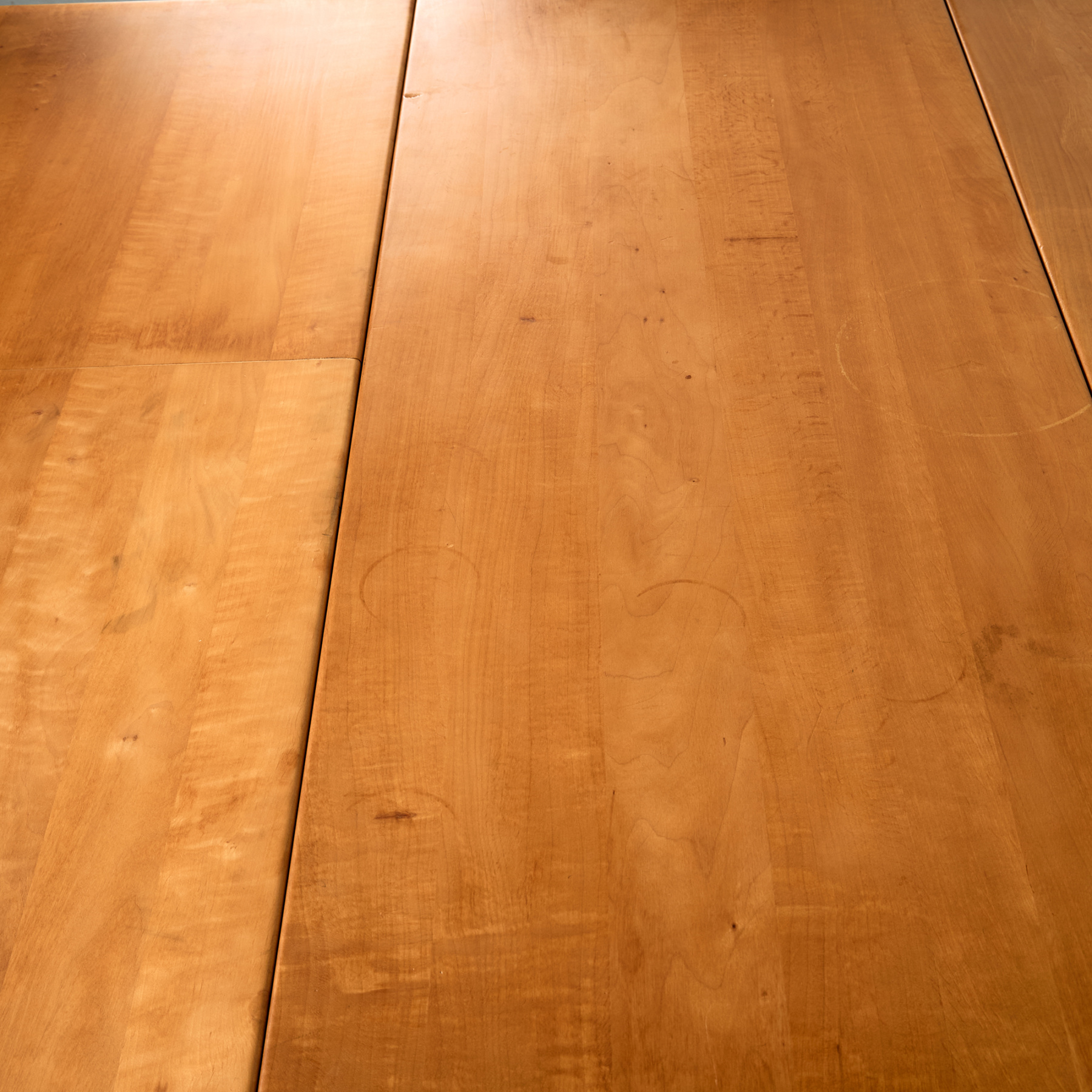 Erwin Berghammer által a Team 7 számára tervezett égerfa étkezőgarnitúra az 1980-as évekből. A szett hat darab ‘Opus’ karosszékből és egy darab étkezőasztalból áll. Az étkezőasztal két vendéglappal nagyobb méretre bővíthető. Az étkezőasztal és székek felületén helyenként karcokkal, foltokkal és kopásokkal, használatból adódó nyomokkal. Méretek: Étkezőasztal: 120 – 216x75x120 cm /// Étkezőszék: 55x78x54 cm, Üm.: 46 cm