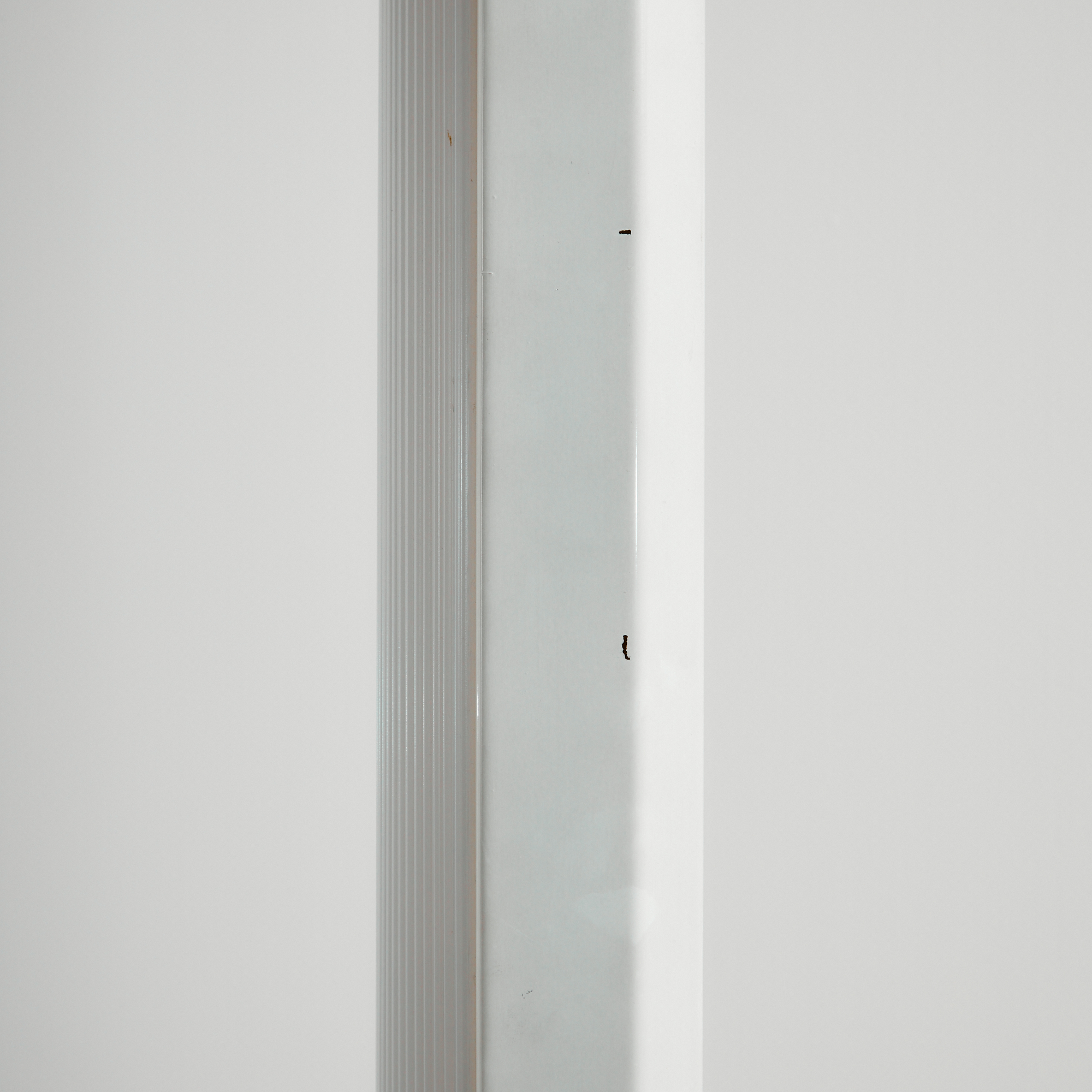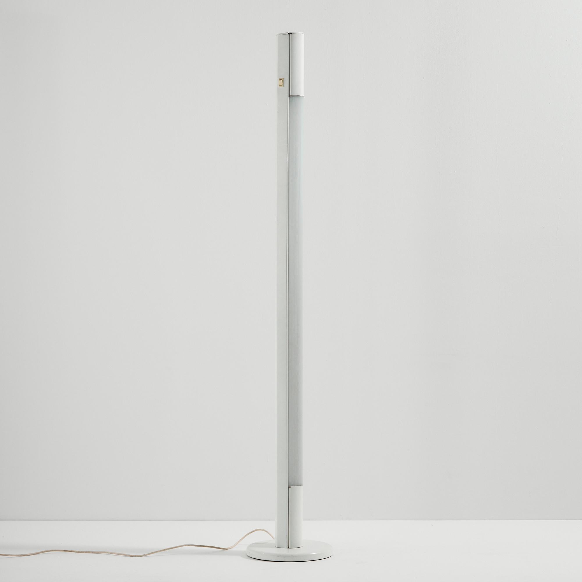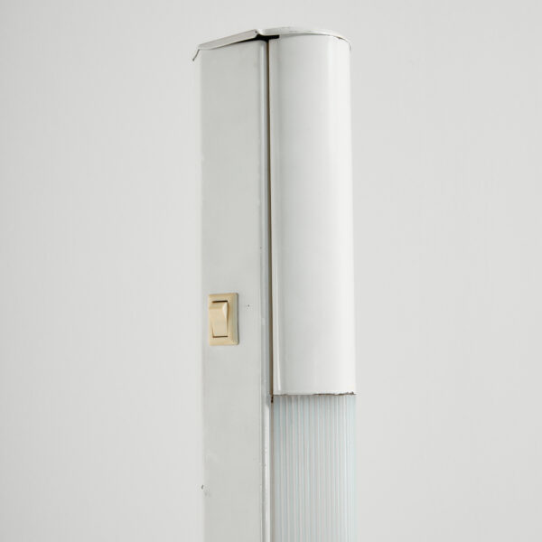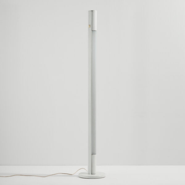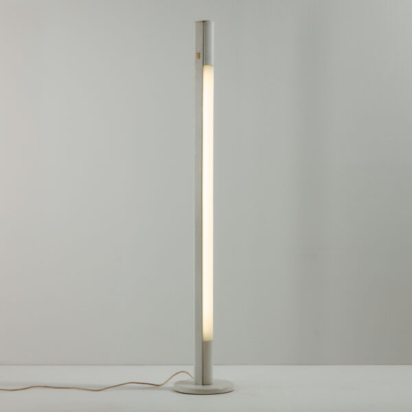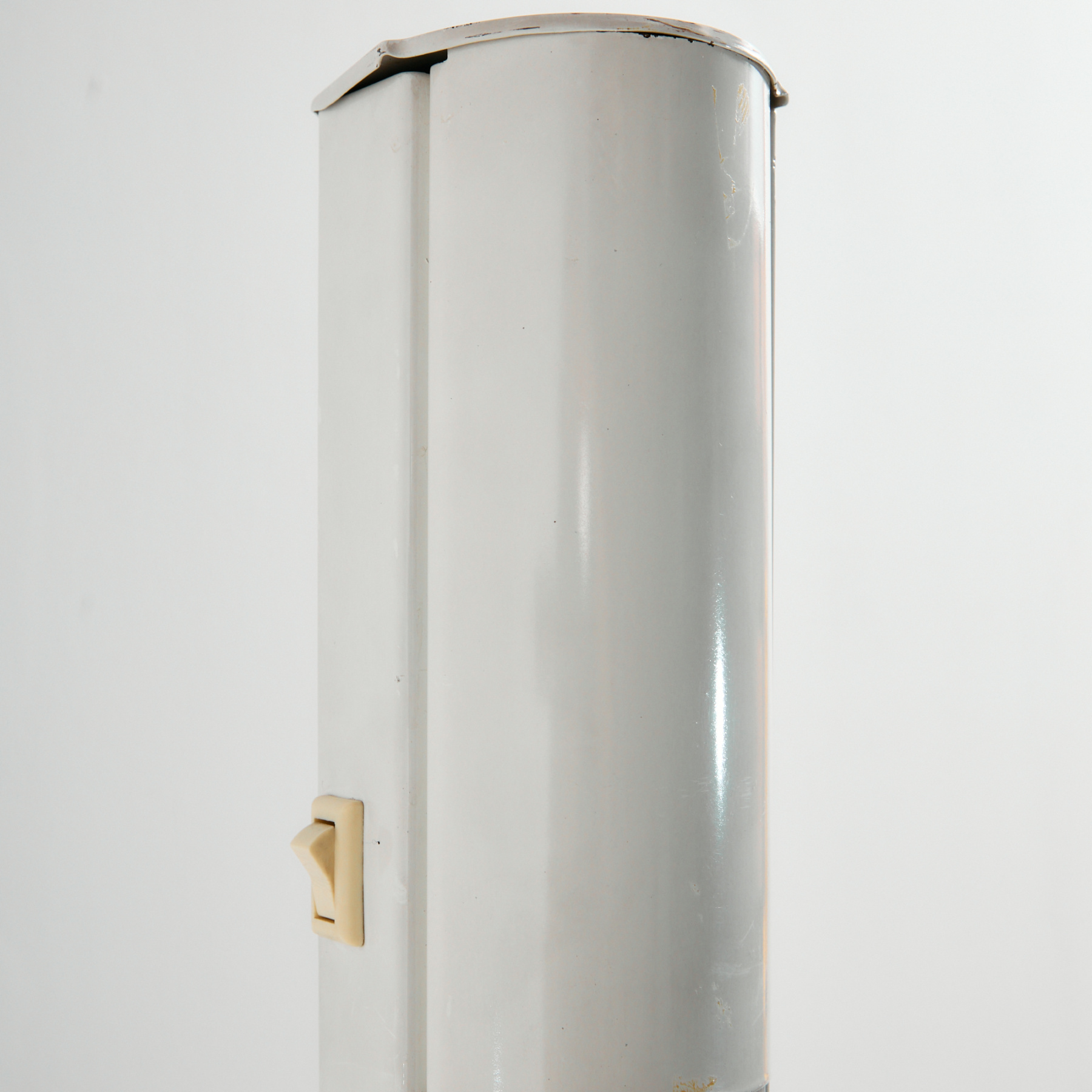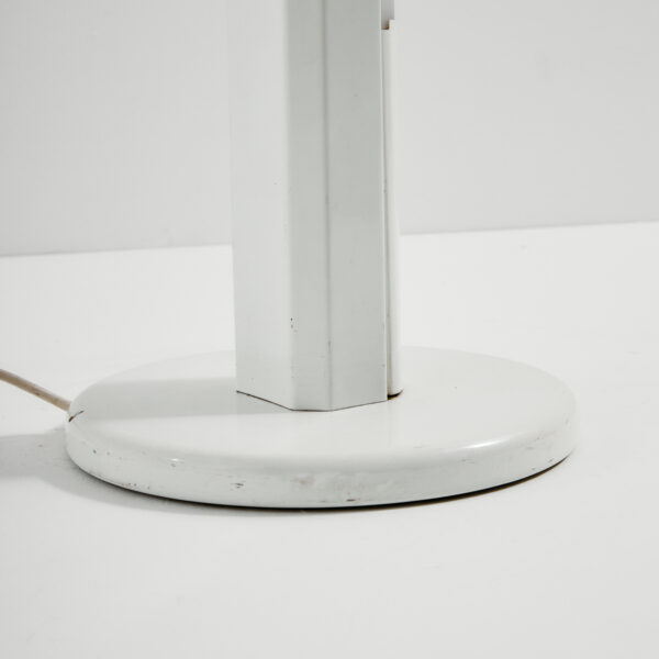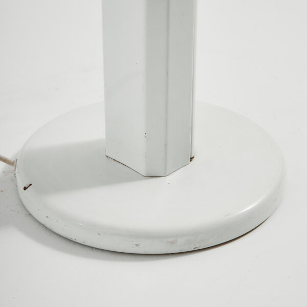 Egy különleges darab a space age rajongóknak. Letisztult formákkal ellátott állólámpa az 1980-as évekből. Fém és műanyag felületén helyenként karcokkal, foltokkal és kopásokkal, használatból adódó nyomokkal.