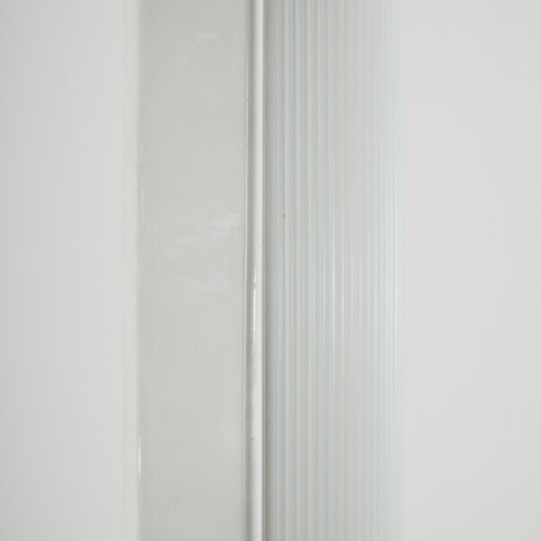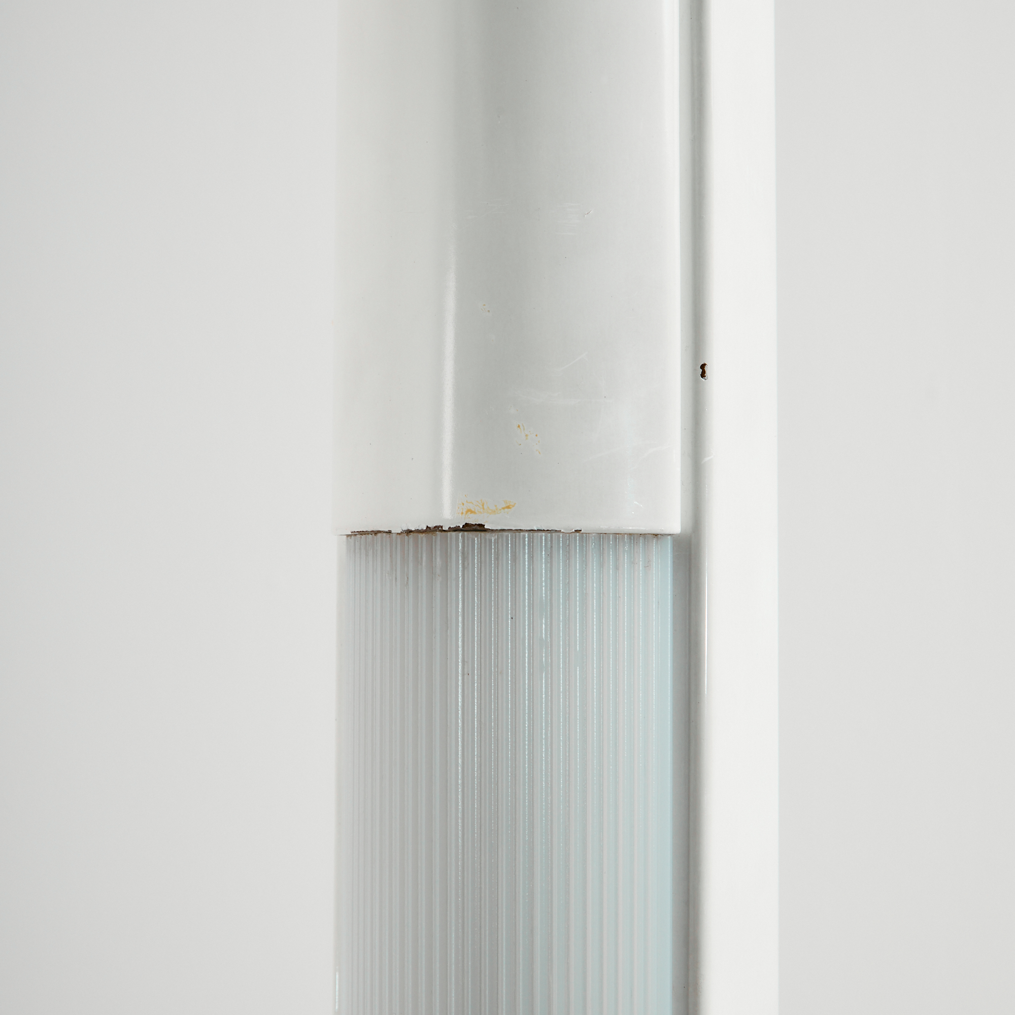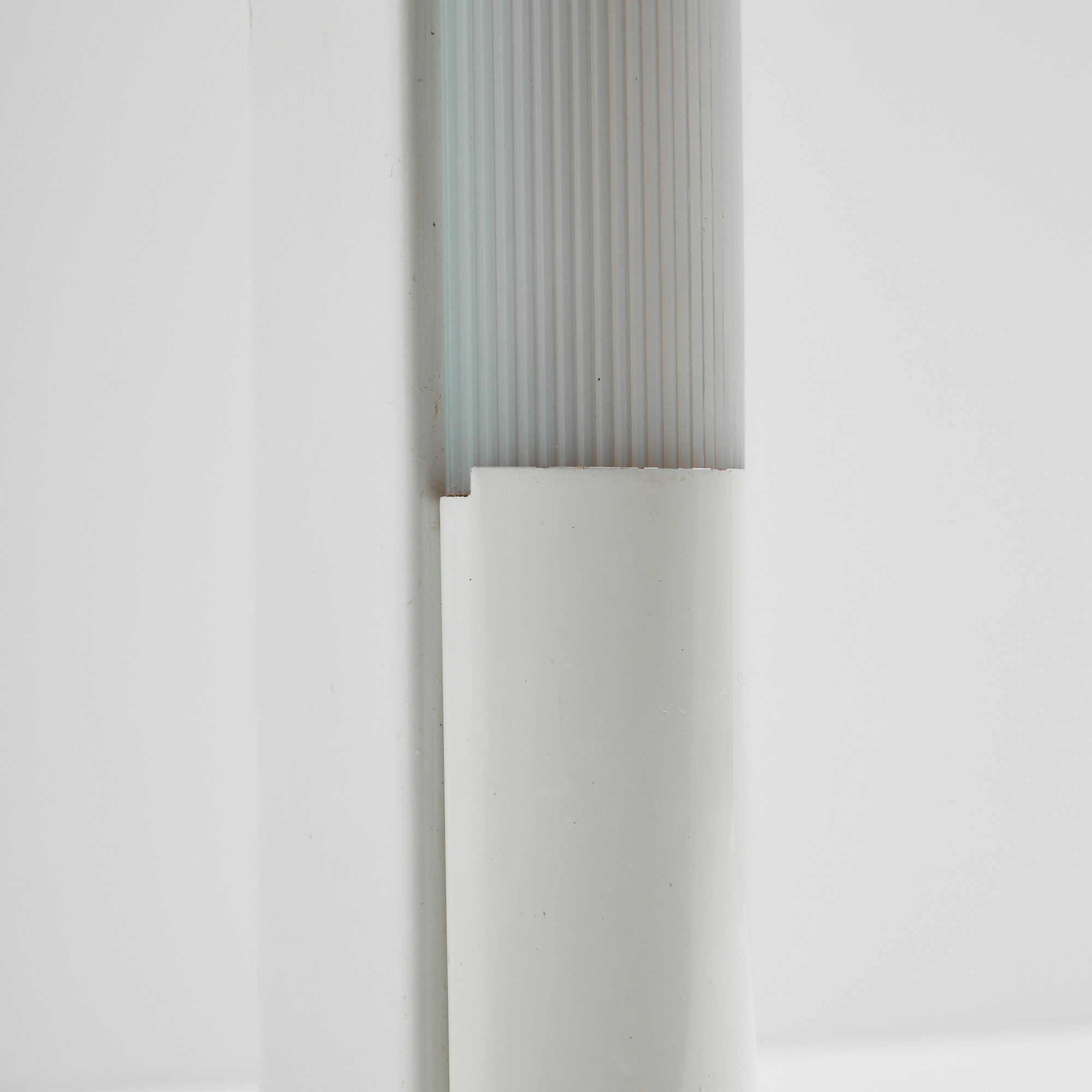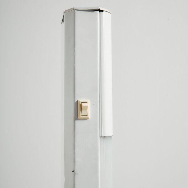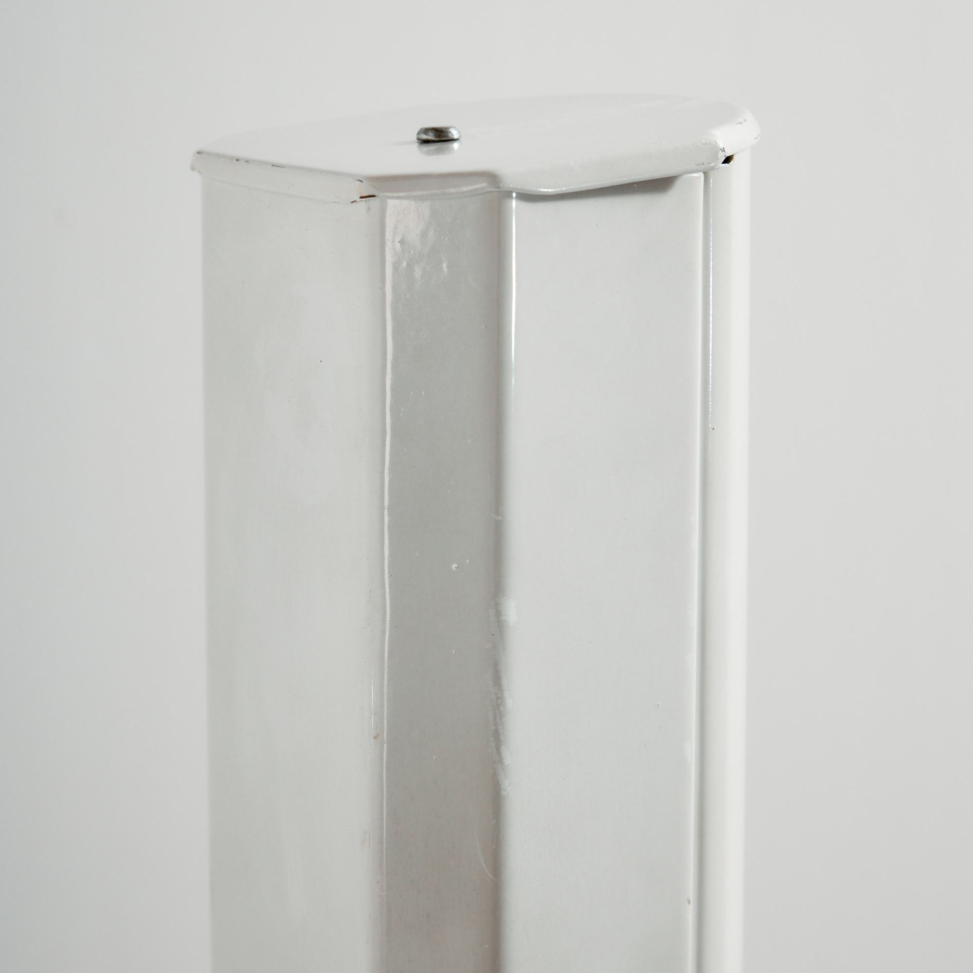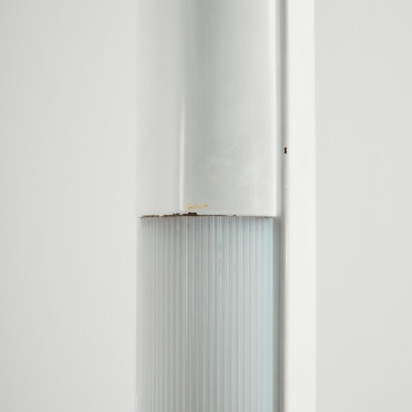 Egy különleges darab a space age rajongóknak. Letisztult formákkal ellátott állólámpa az 1980-as évekből. Fém és műanyag felületén helyenként karcokkal, foltokkal és kopásokkal, használatból adódó nyomokkal.
