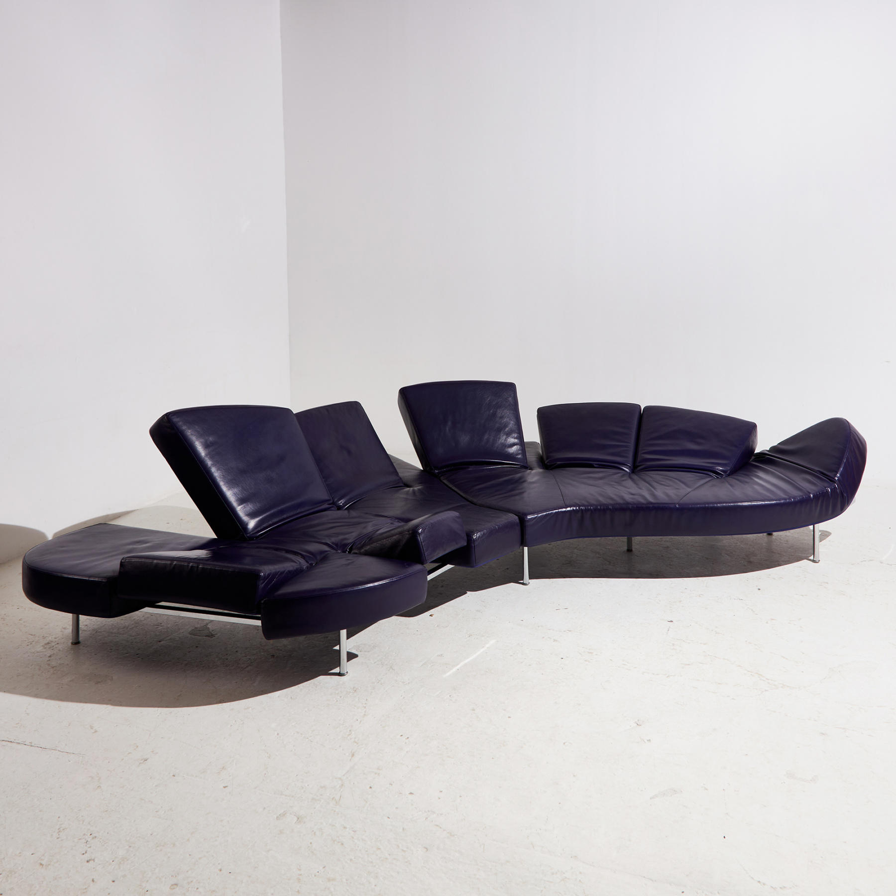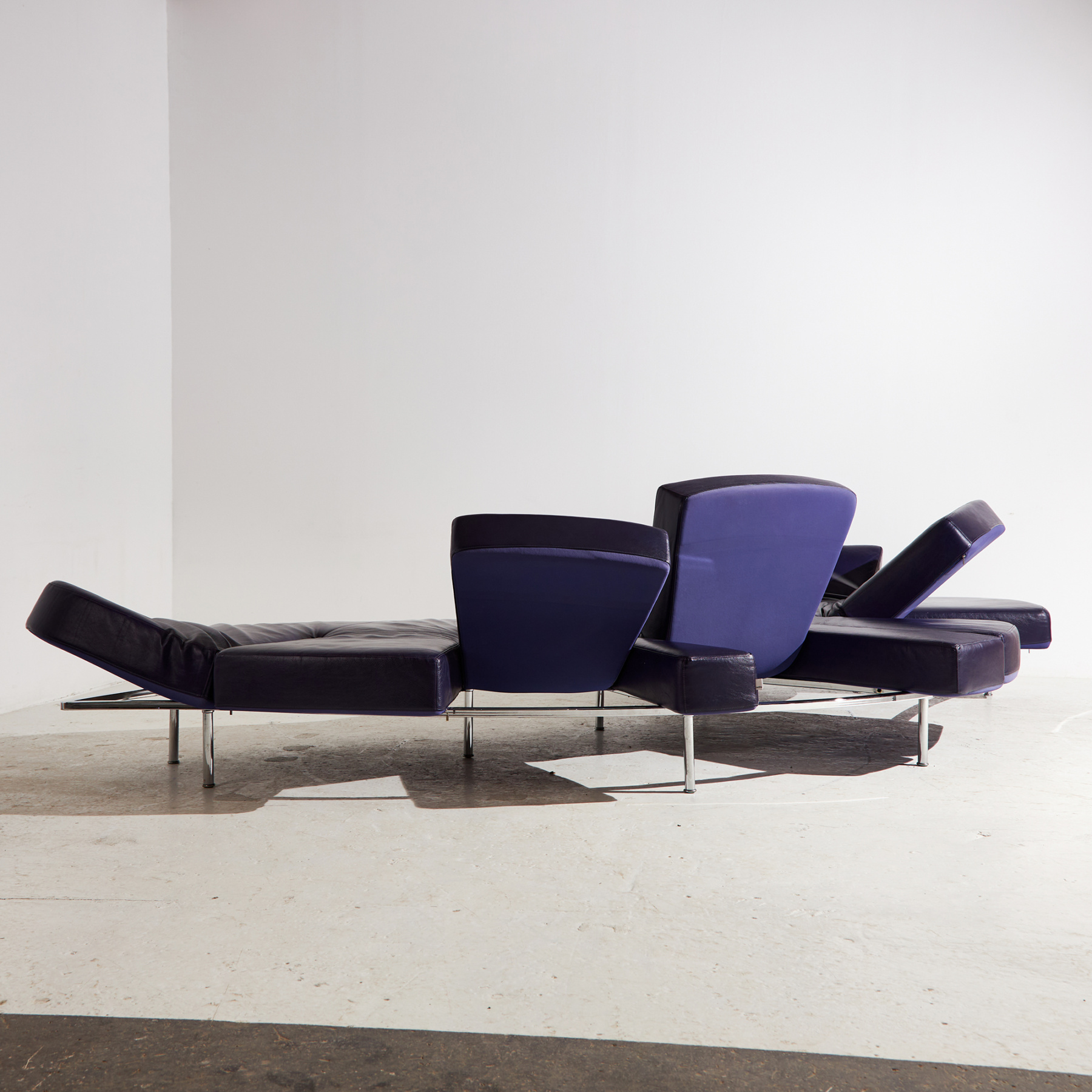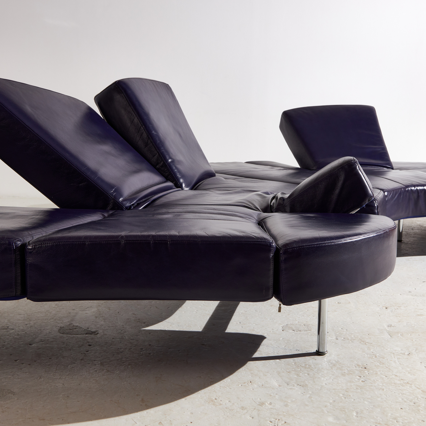 Egy ikonikus darab, ami kiváló példája az olasz formatervezésnek. Francesco Binfaré által az Edra számára tervezett ‘Flap’ nevet viselő kanapé a 2000-es évekből. Az ülőbútor formája szabadon alakítható, hiszen több helyen rugalmas és mozgatható karfa / háttámla résszel ellátott. A kanapé bőr és fém részein helyenként felületi karcokkal és kopásokkal.