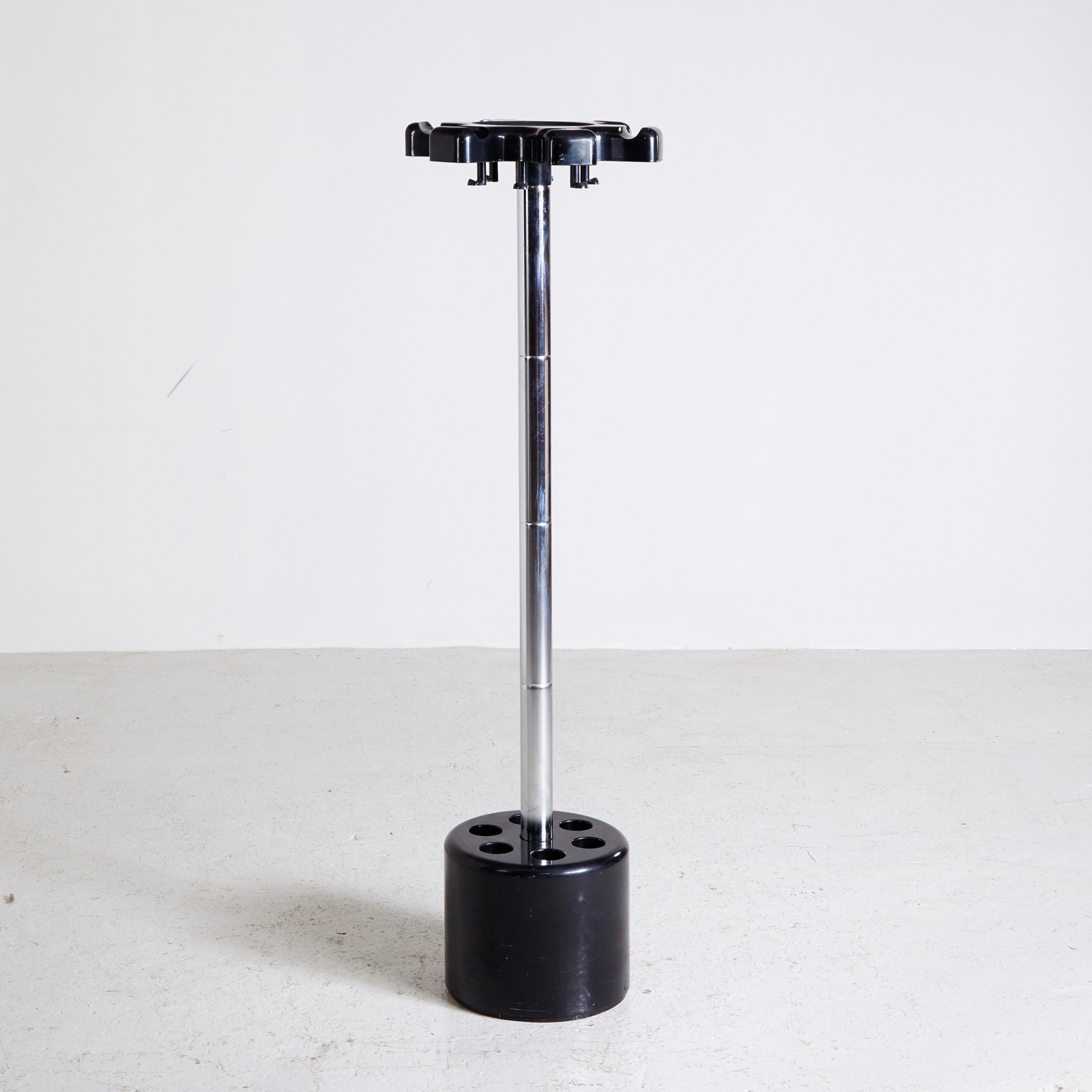 Futurisztikus olasz kabát és esernyőtartó szép állapotban króm száron, műanyag talapzaton