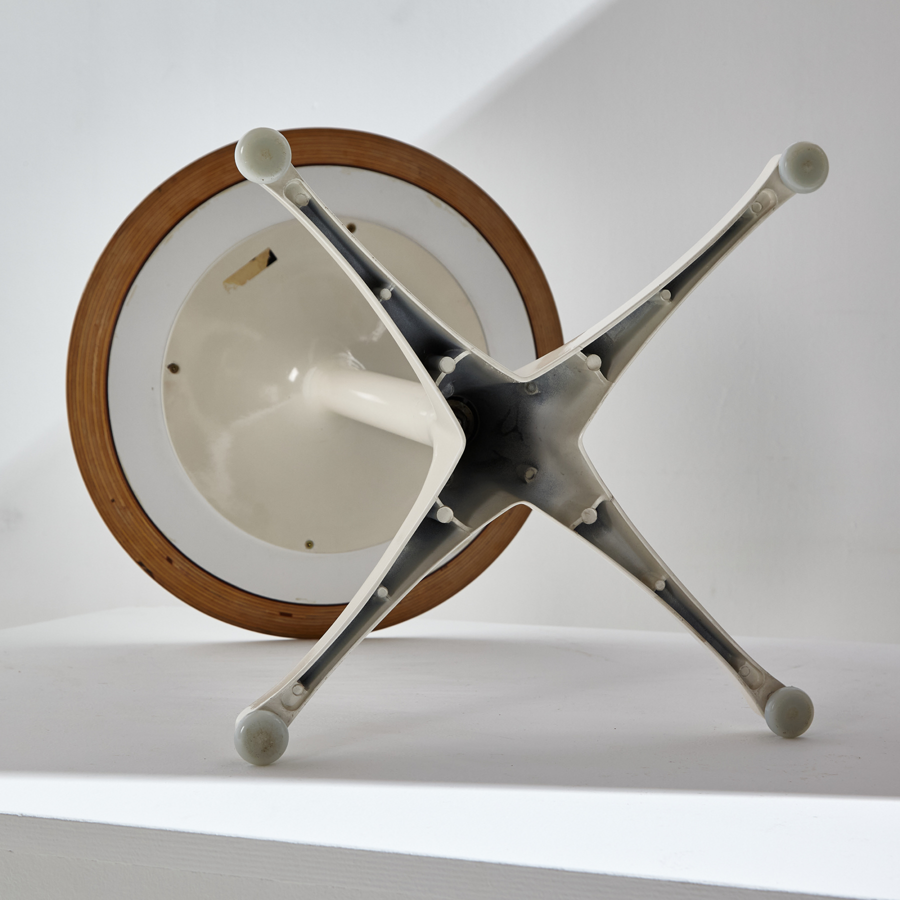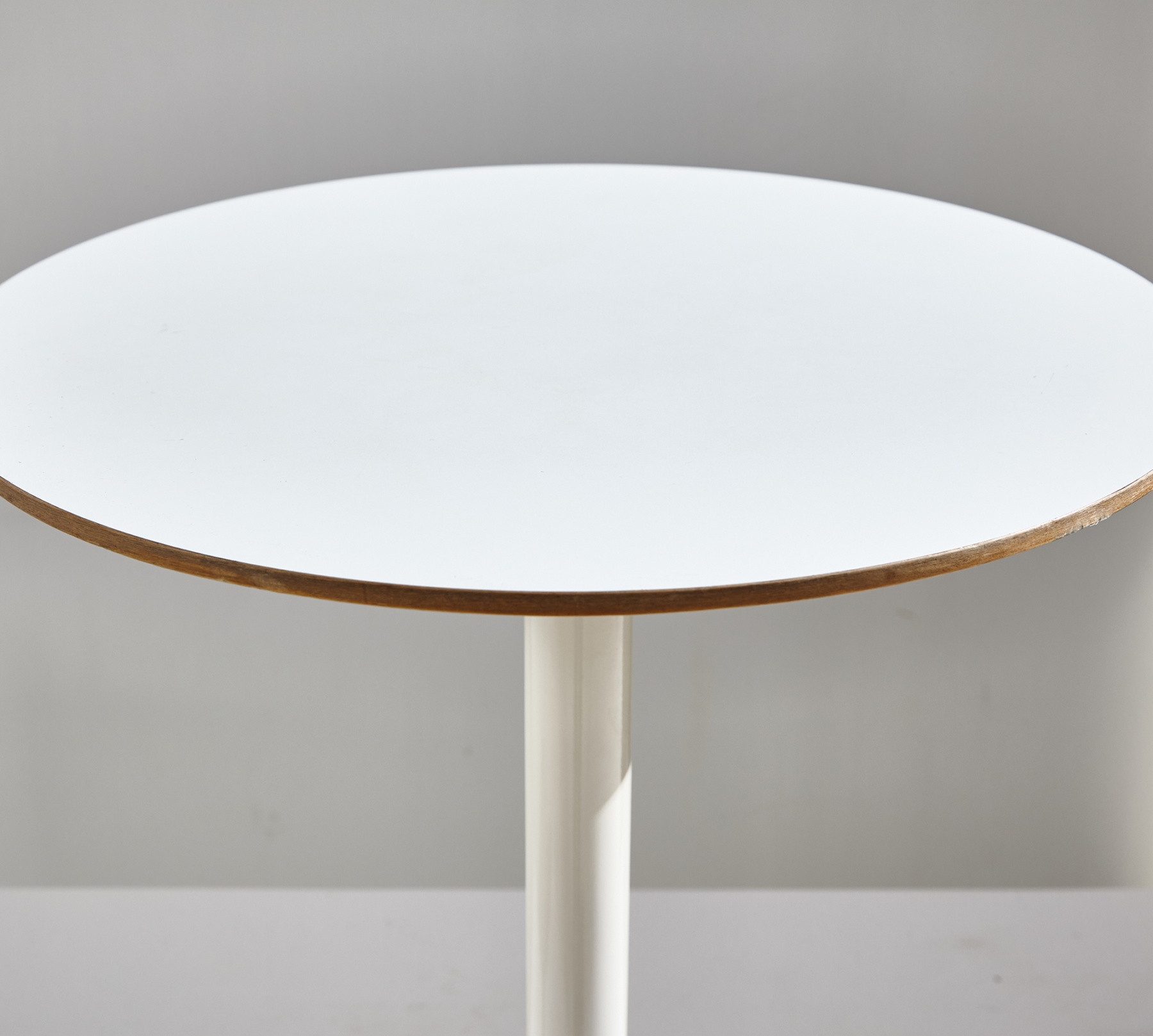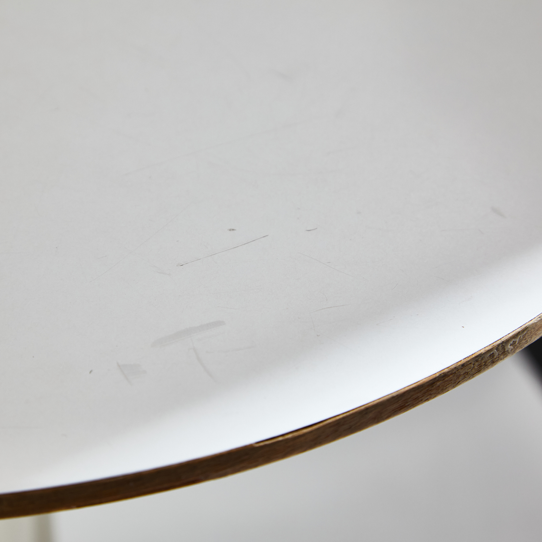 George Nelson által 1954-ben tervezett ikonikus asztal, amit a méltán híres Herman Miller gyártott le. Fehér porszórt alumínium lábbal és laminált tetővel. Az asztal tetején és lábazatán helyenként karcokkal és kopásokkal, némi használatból adódó nyommal.