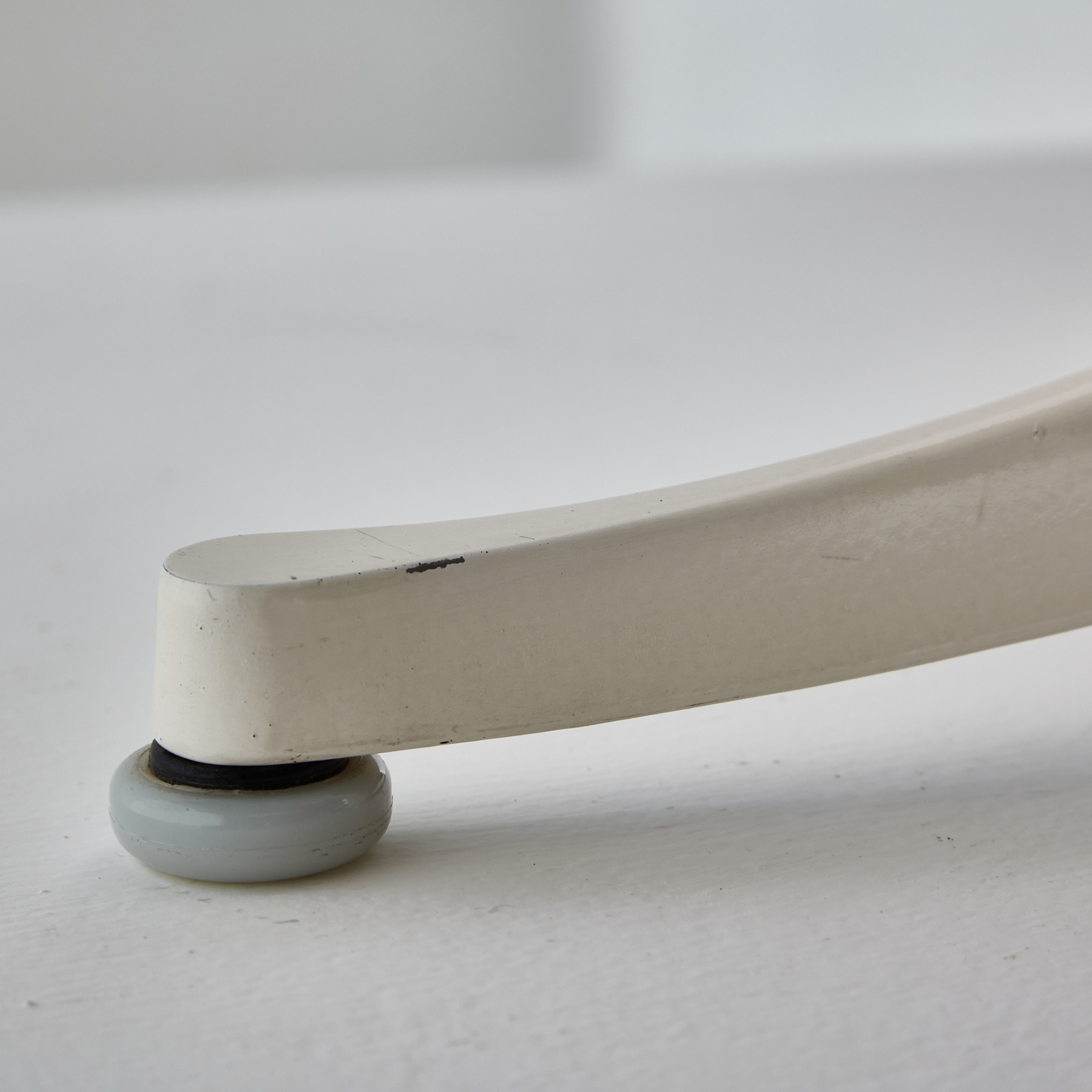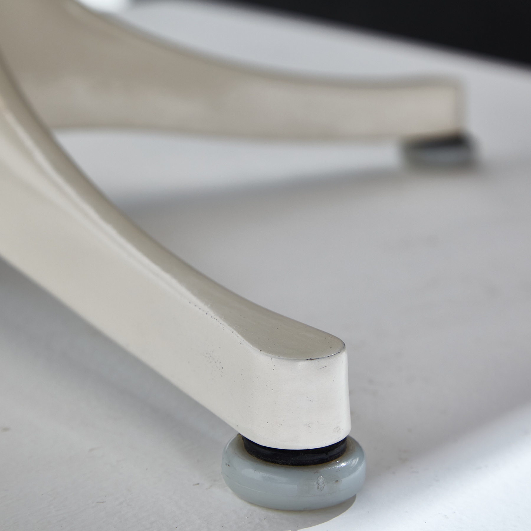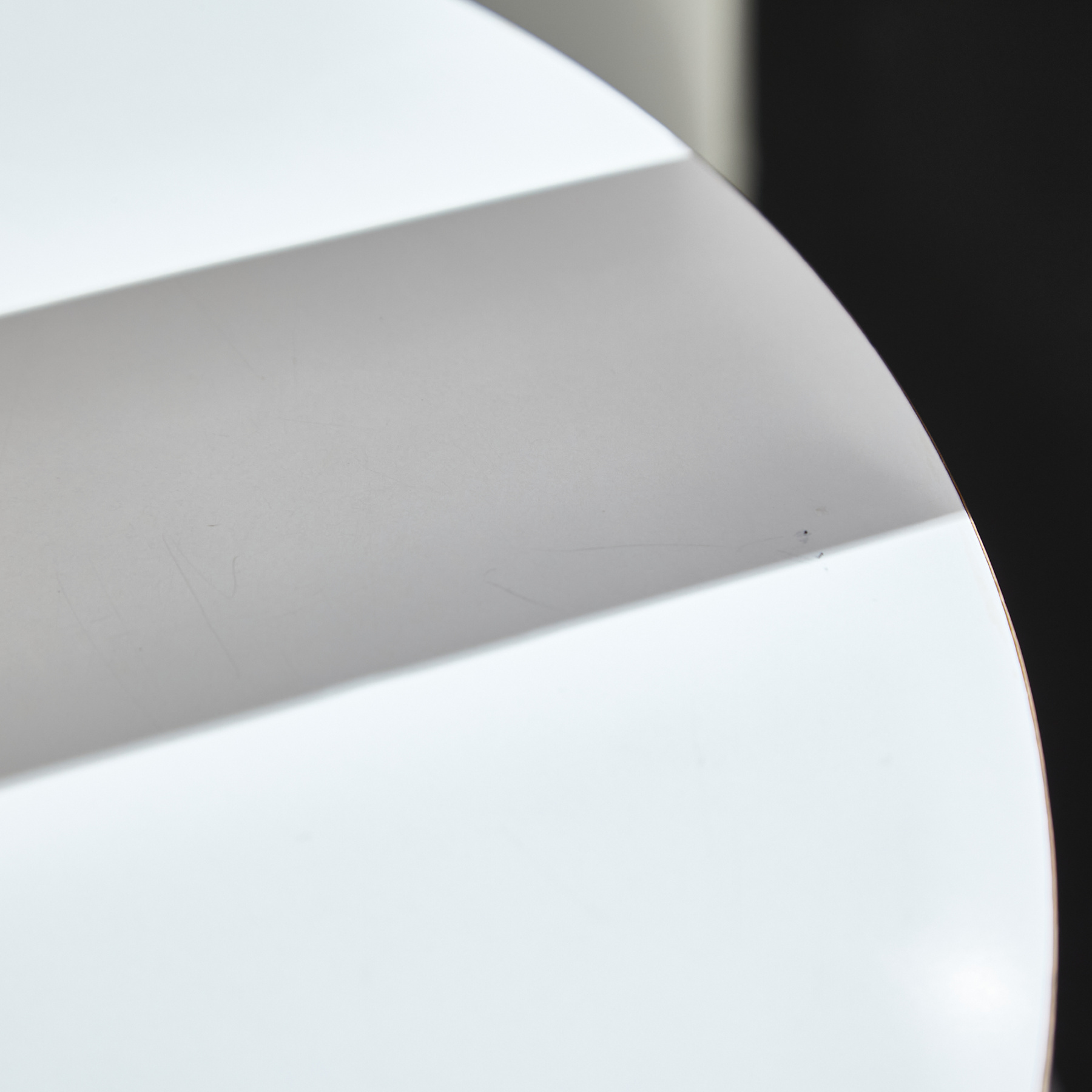 George Nelson által 1954-ben tervezett ikonikus asztal, amit a méltán híres Herman Miller gyártott le. Fehér porszórt alumínium lábbal és laminált tetővel. Az asztal tetején és lábazatán helyenként karcokkal és kopásokkal, némi használatból adódó nyommal.