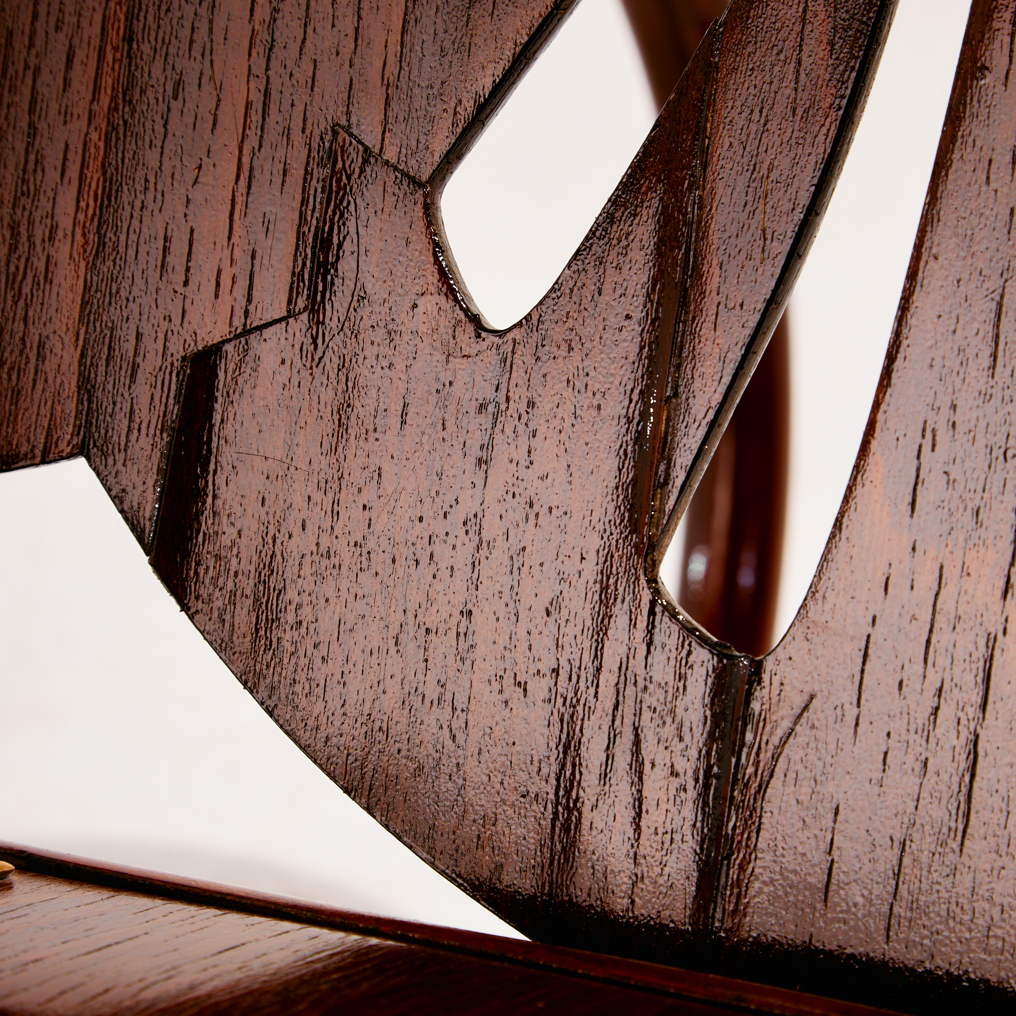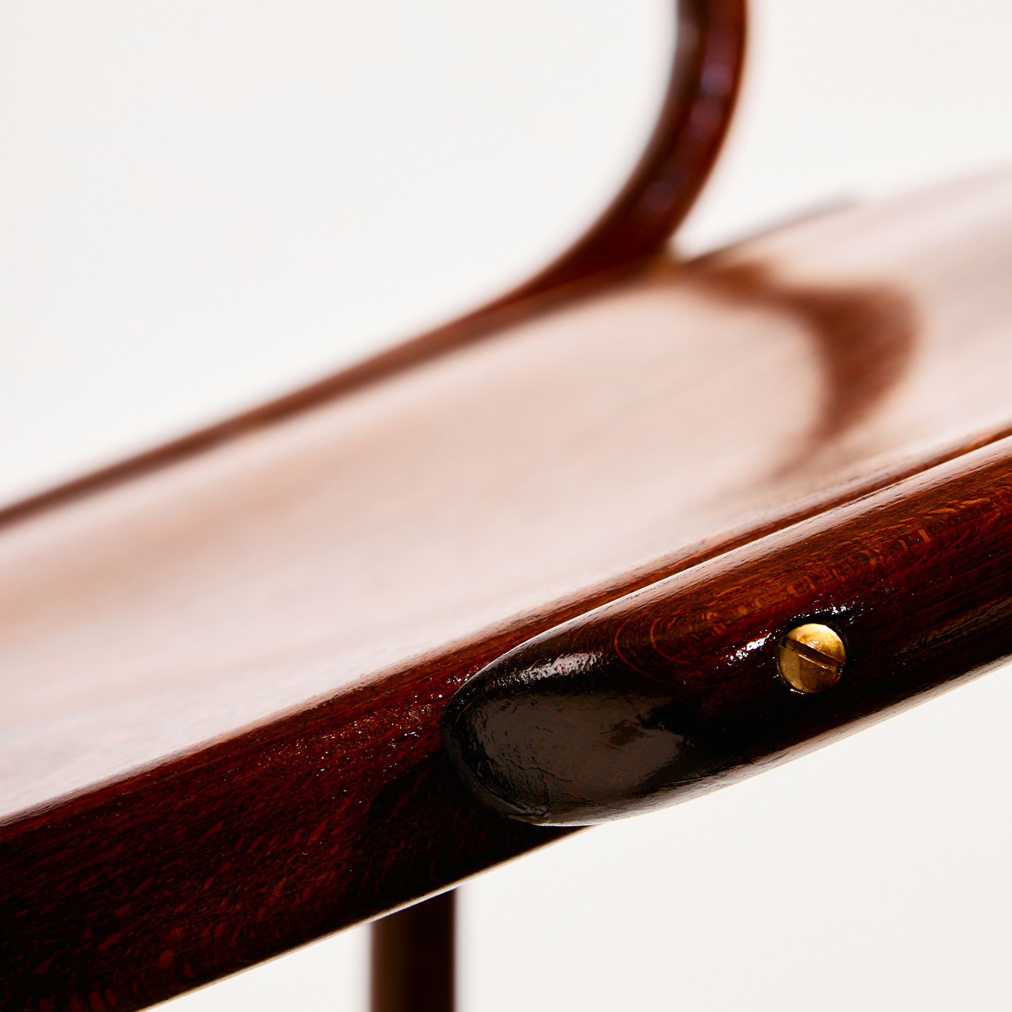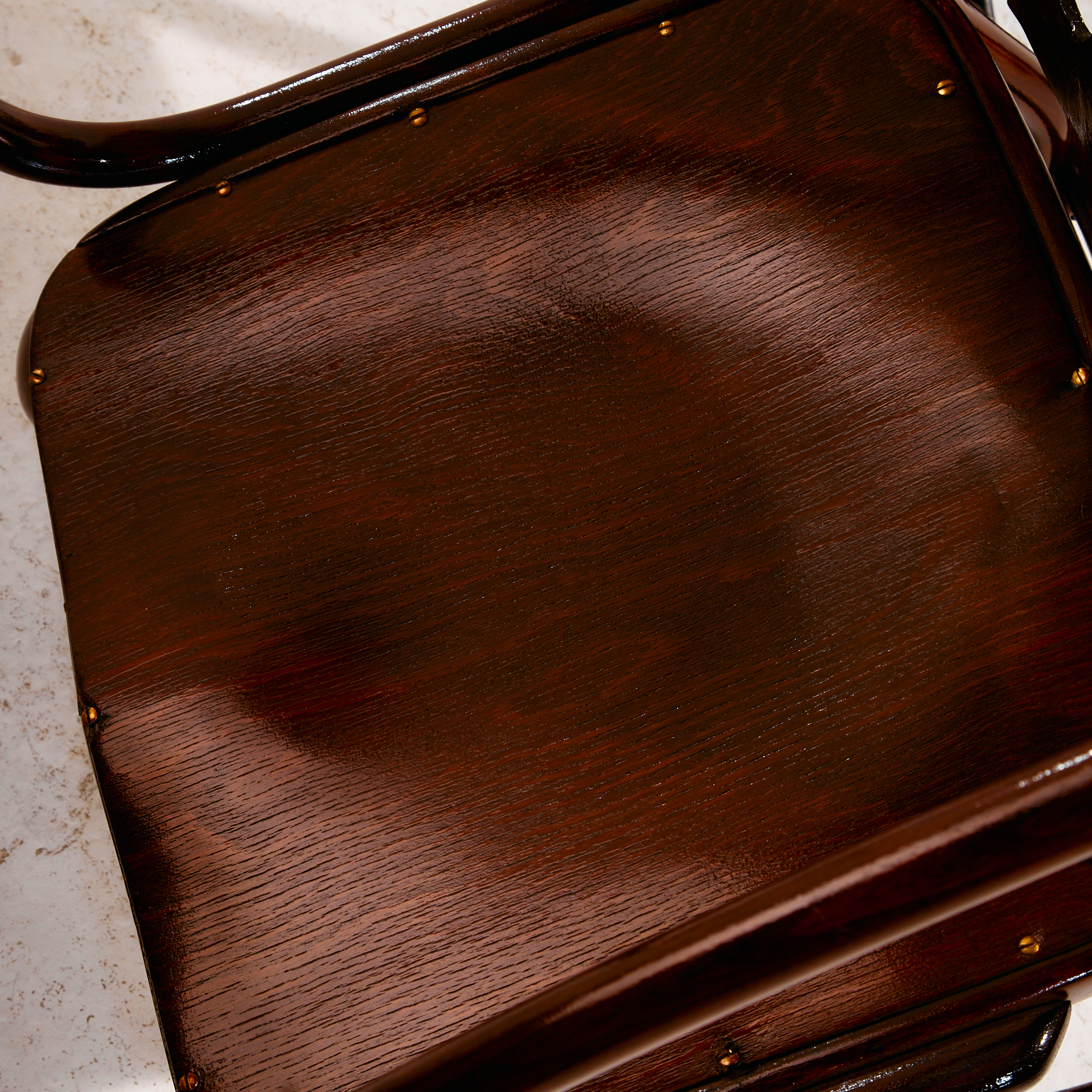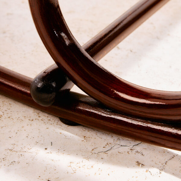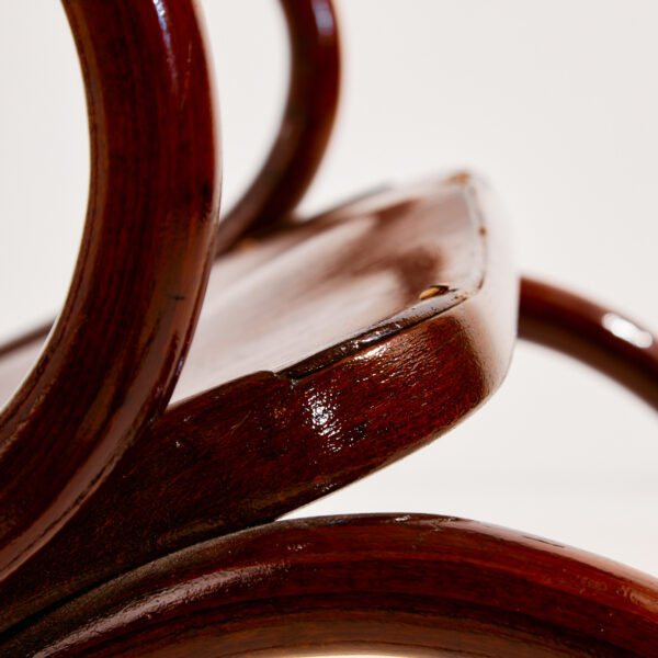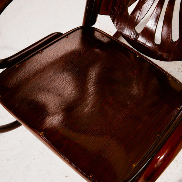 Gustav Siegel által a Jacob & Josef Kohn bútorgyár számára tervezett bükk hintaszék a 1890-es évekből. A bécsi bútorgyár 1868-ban alakult és a századfordulóra vezető szerepet töltött be a gőzhajlított bútorok gyártásában. A hintaszék teljes felújítást kapott, háttámláján több furnérpótlás is található.