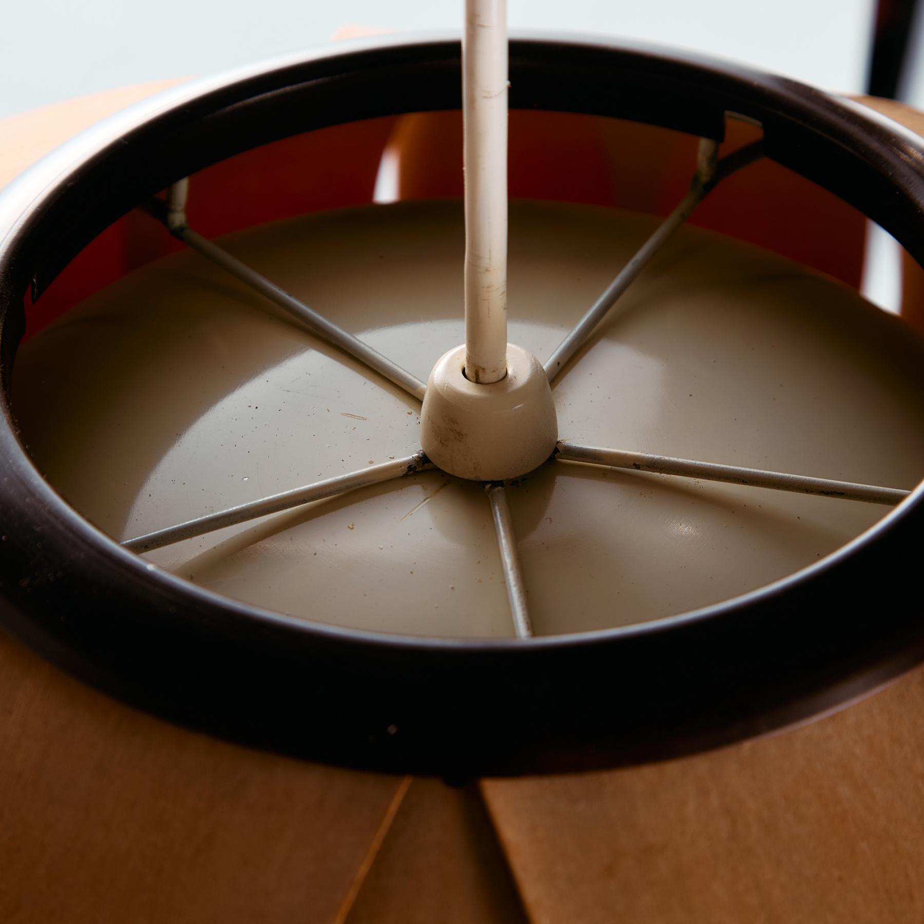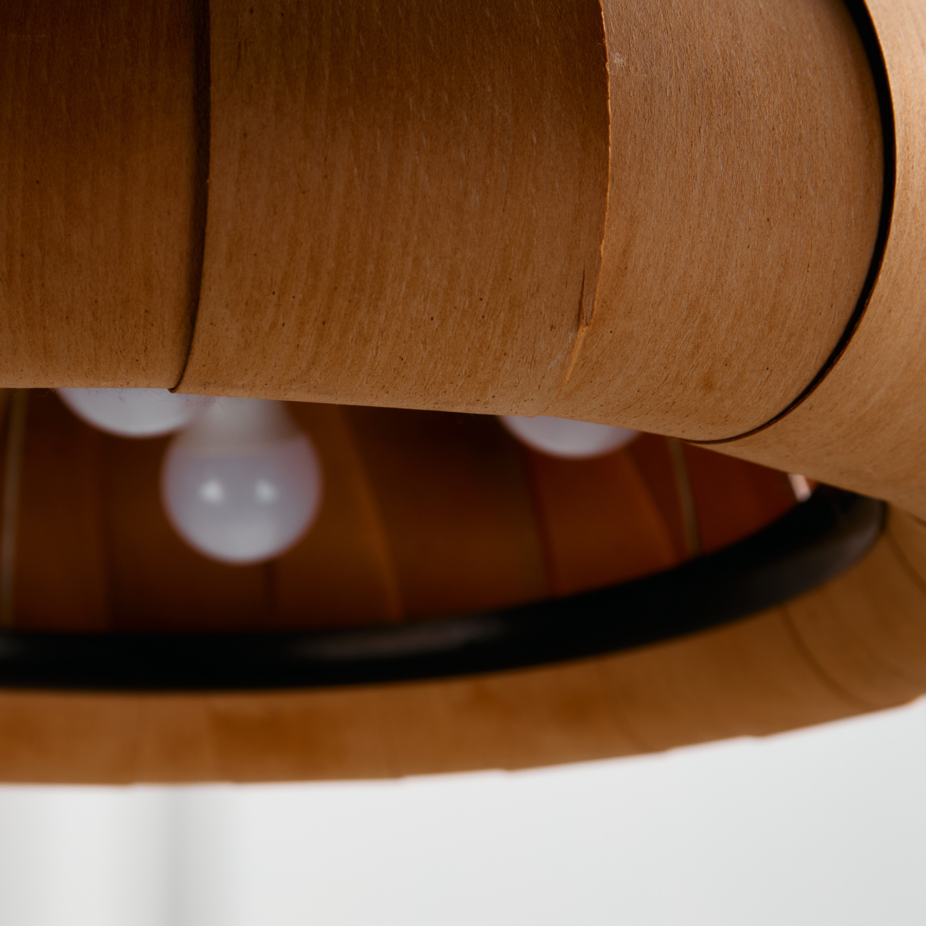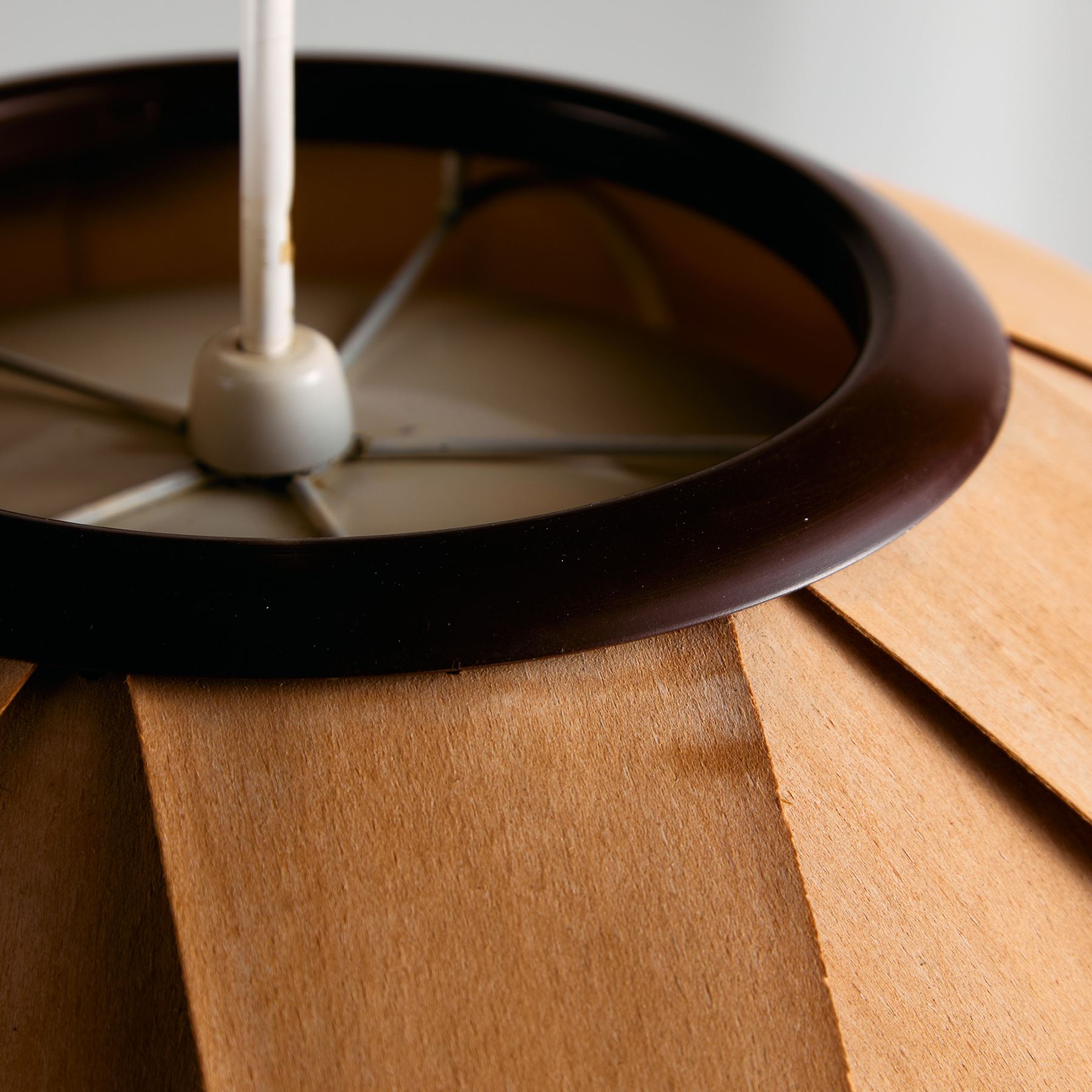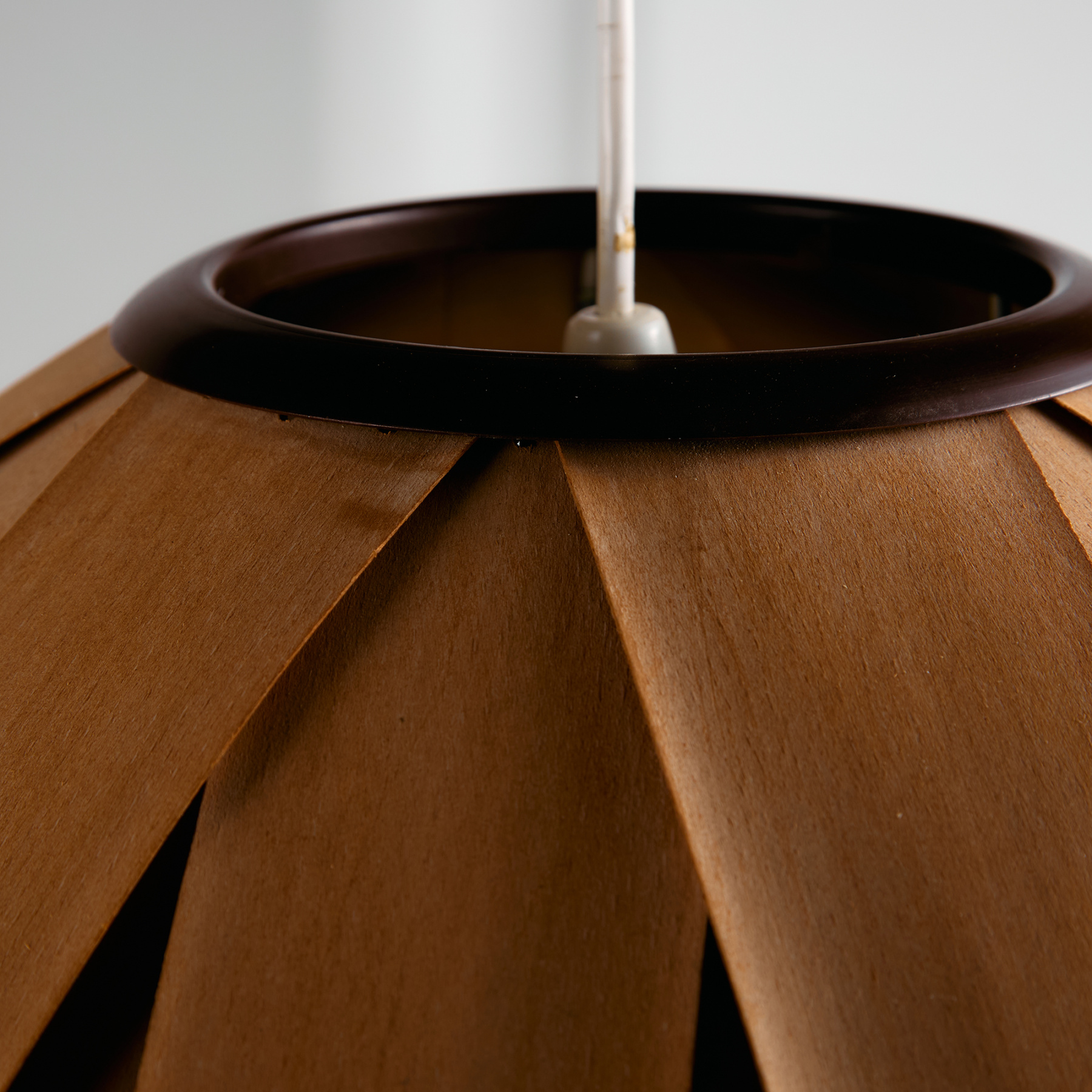 Az IDEA Iparművészeti Vállalat által készített és forgalmazott függeszték az 1980-as évekből. A lámpa búrája furnér szeletekből készült, belsejében hat foglalat található. A függeszték felületén helyenként foltokkal és kisebb repedésekkel.