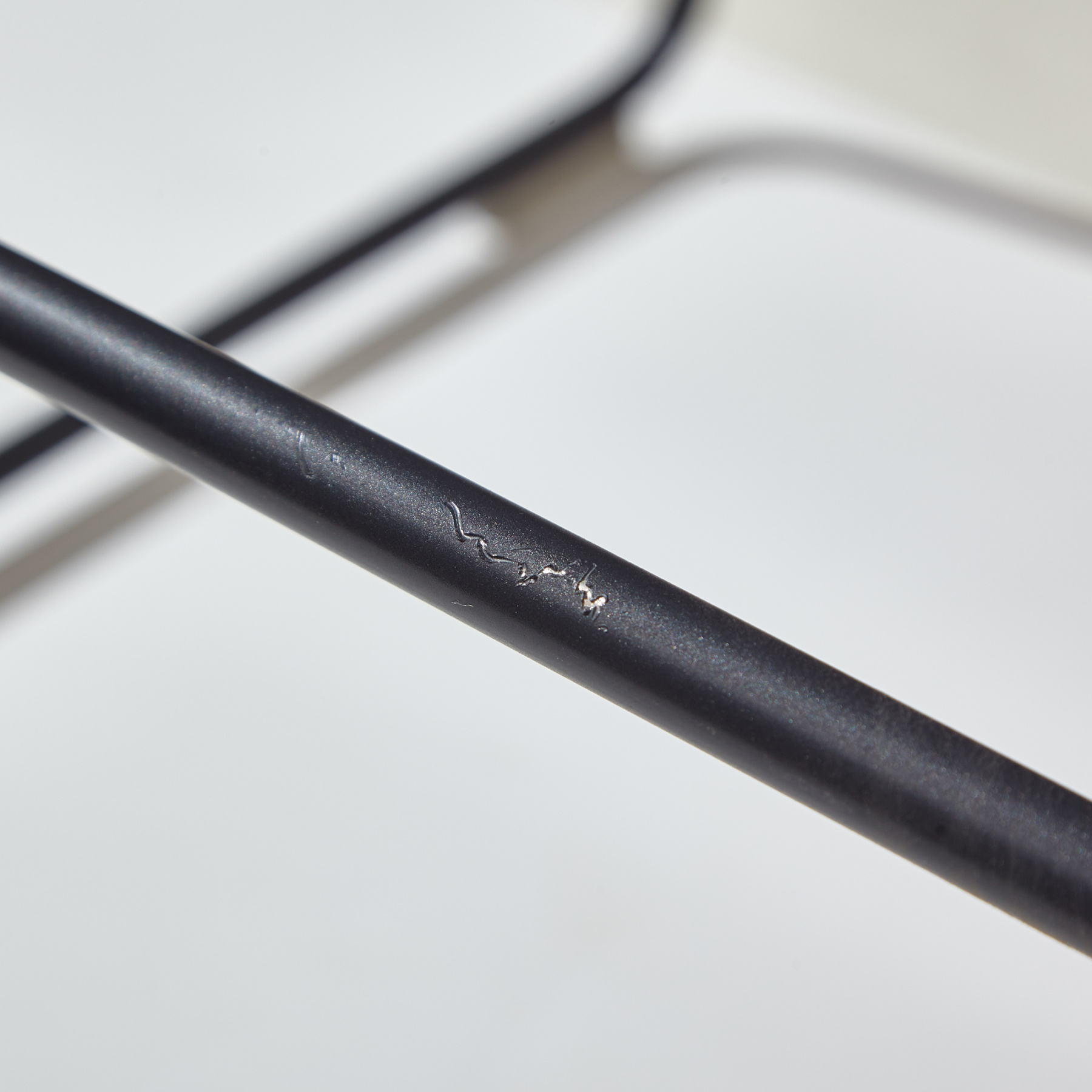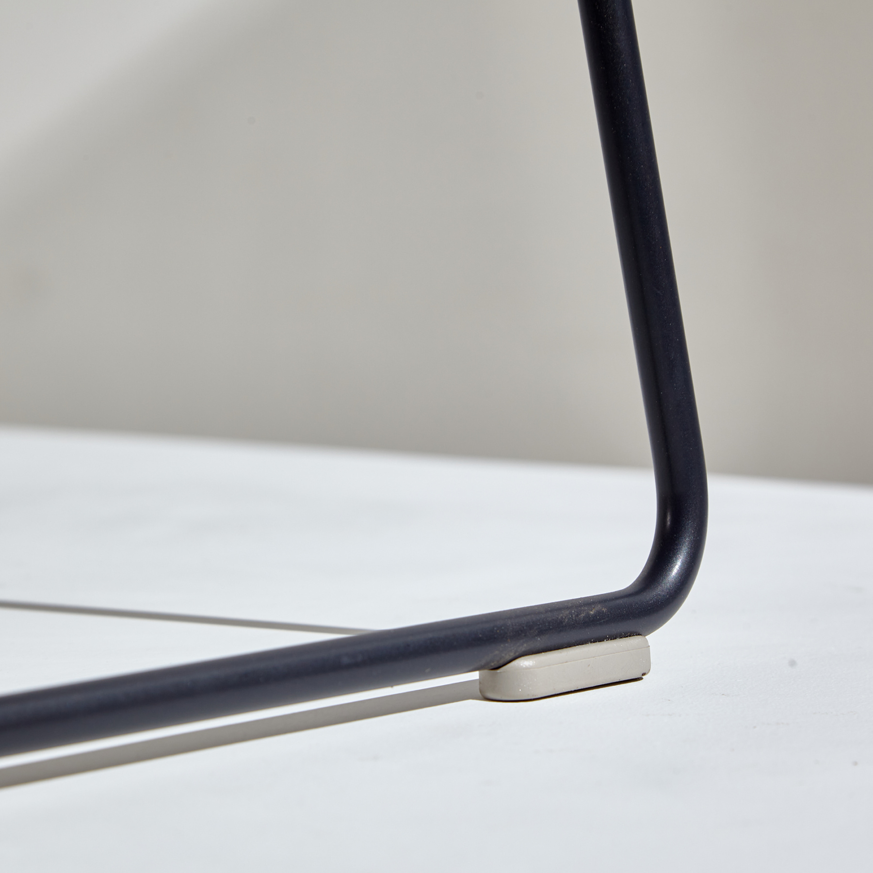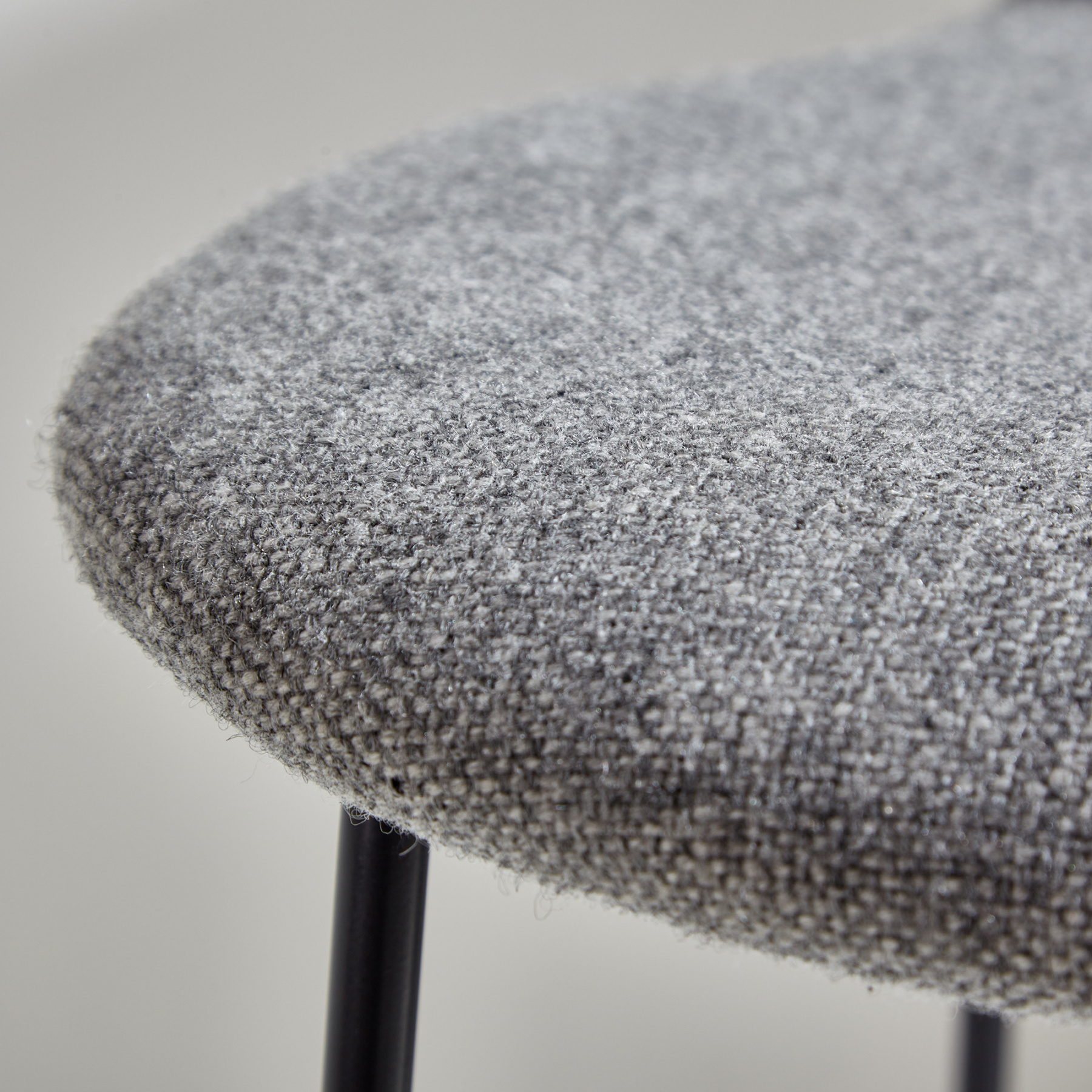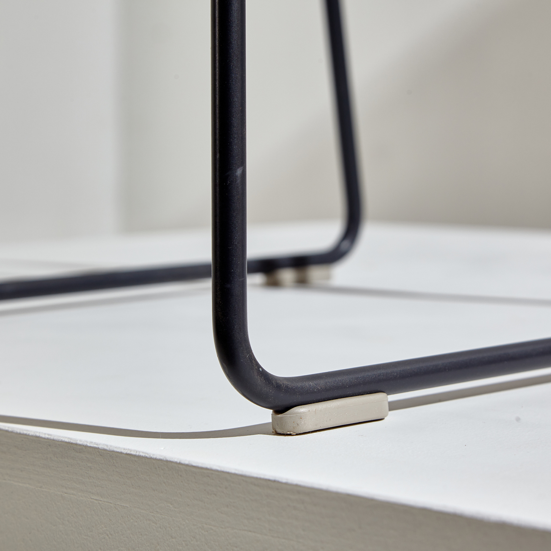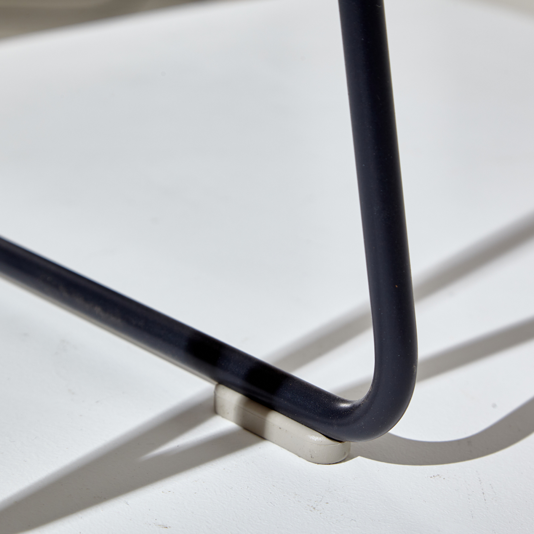 Jasper Morrison által tervezett kárpitozott ‘Tate Soft’ bárszék a Cappellini-től. Az ülőbútor szerkezete lakkozott acélból készült, ülő- és háttámla része textil kárpitozással borított. A bárszék lábazatán helyenként festék kopással, ám korának megfelelő szép állapotban.